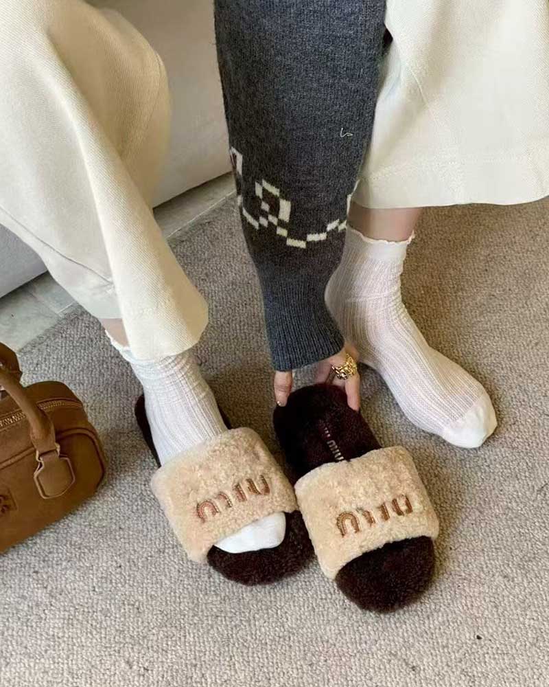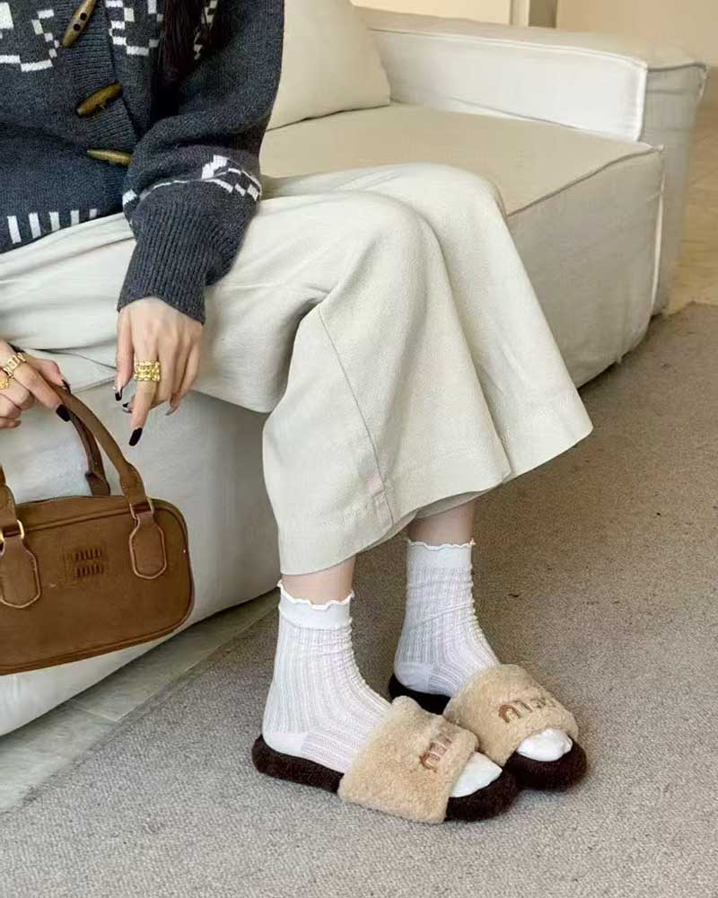 现货 THS-无 缪家 女士 秋冬羊羔毛软糯毛毛拖鞋 4色 BZ1264