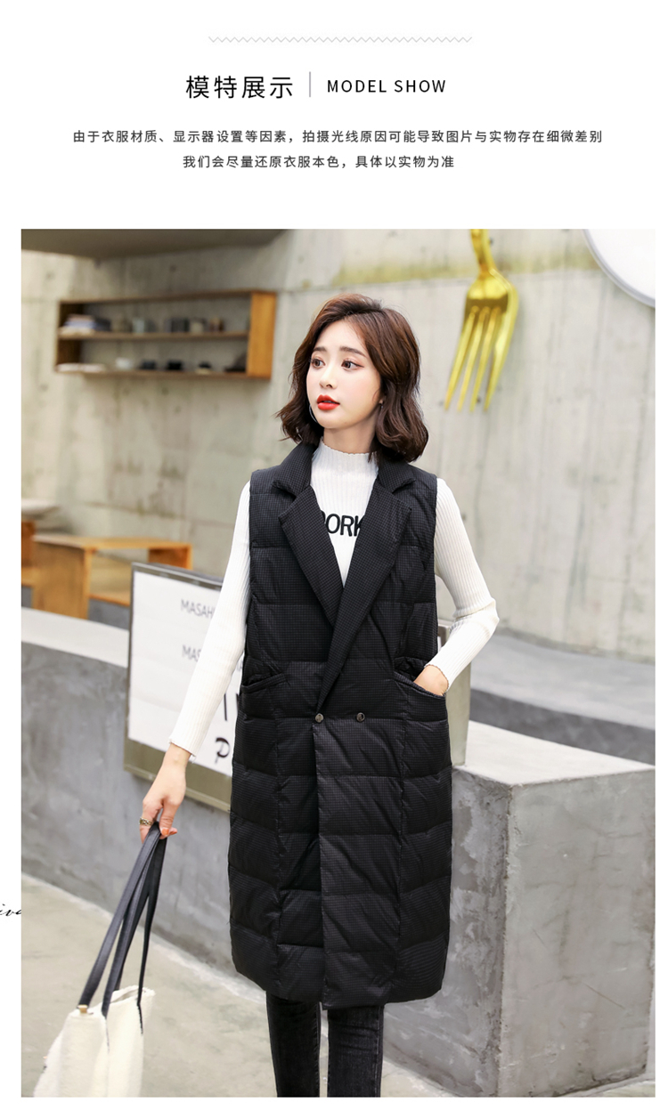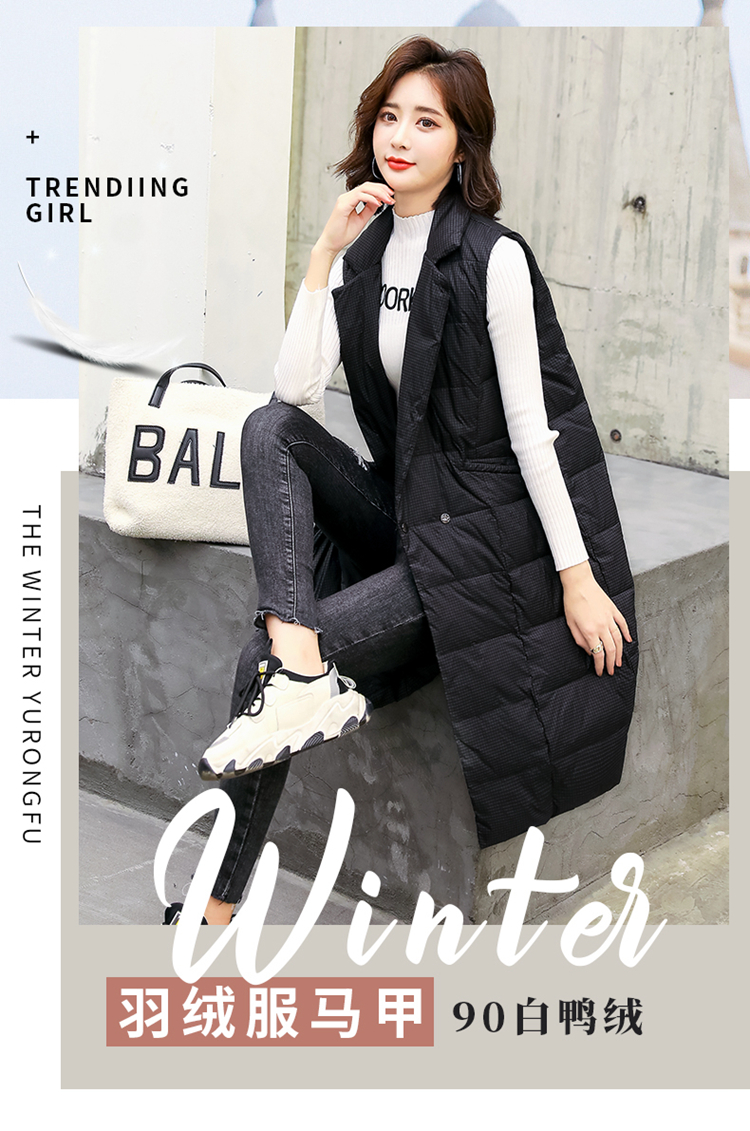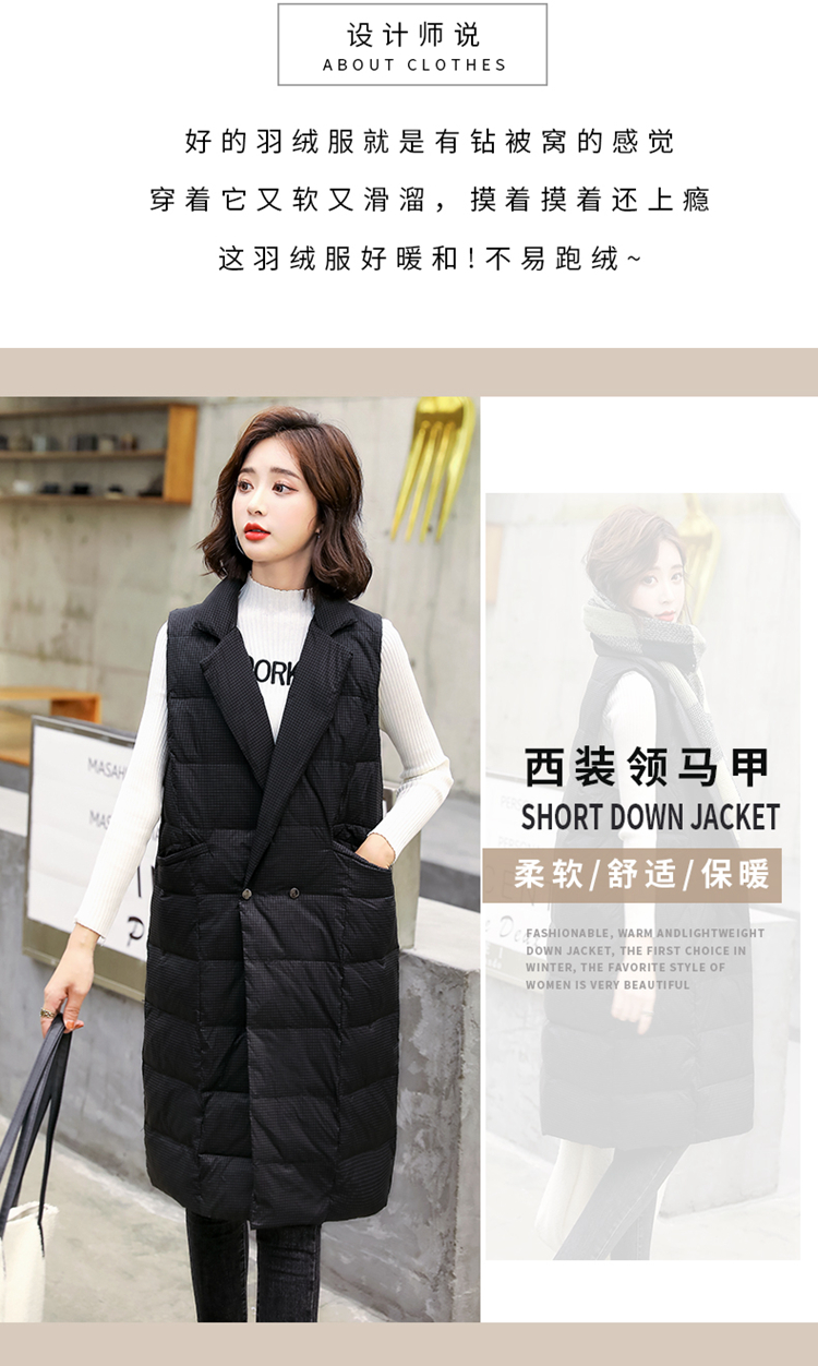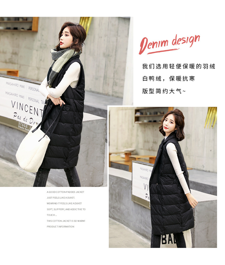 白鸭绒90绒,中长款韩版轻薄无袖坎肩马甲HR-HAYR7259