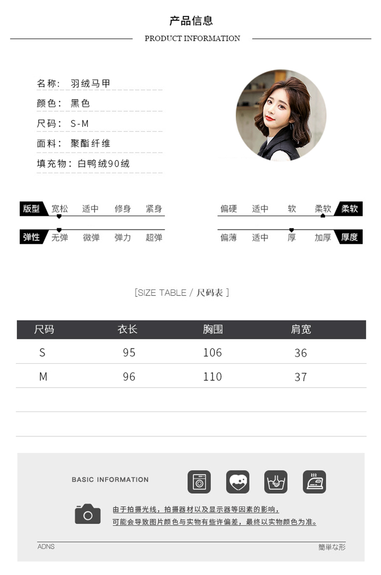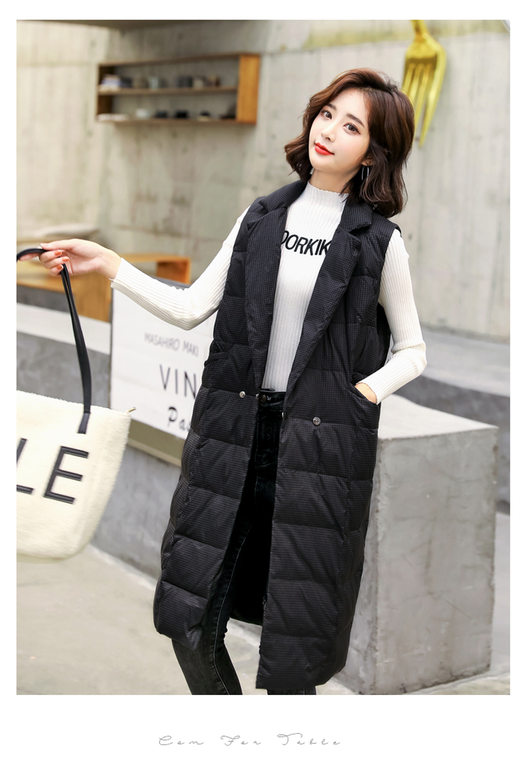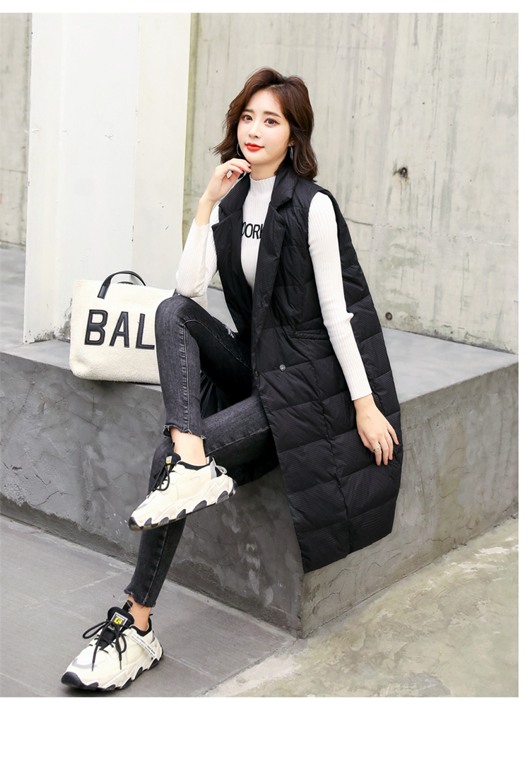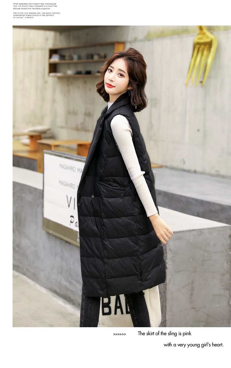 白鸭绒90绒,中长款韩版轻薄无袖坎肩马甲HR-HAYR7259