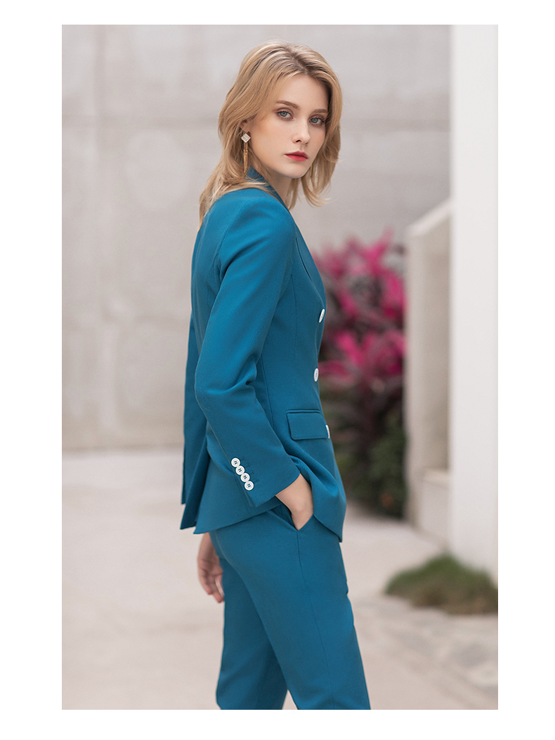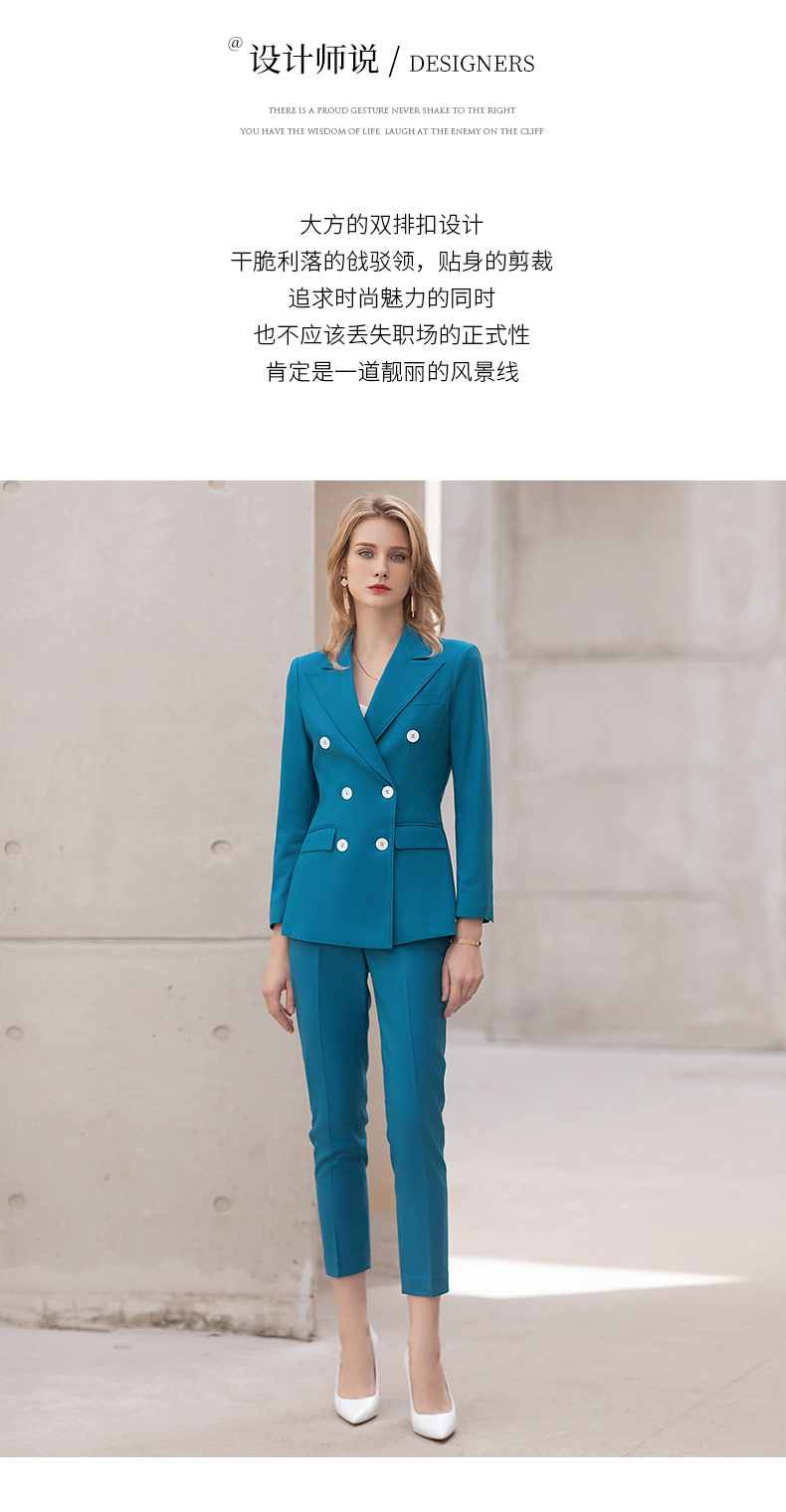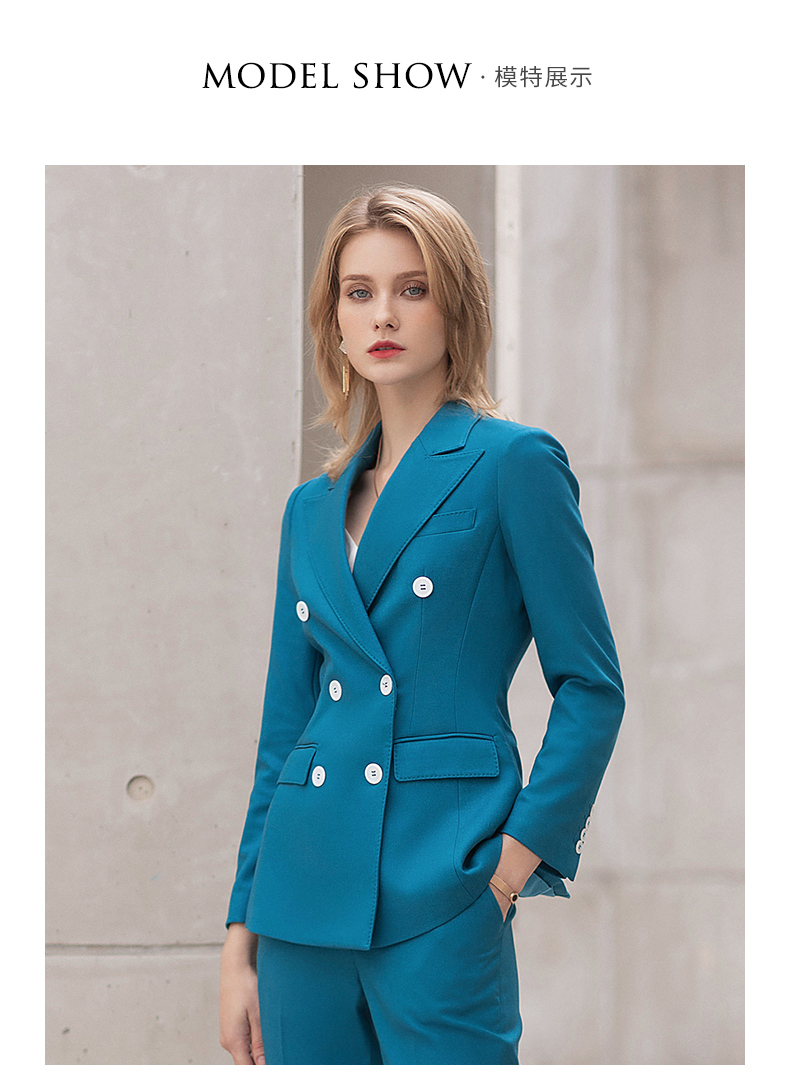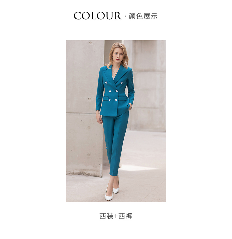 IWY/孔雀蓝西装套装女总裁职业装气质女神范主持人正装售楼部工作服OL CP12115