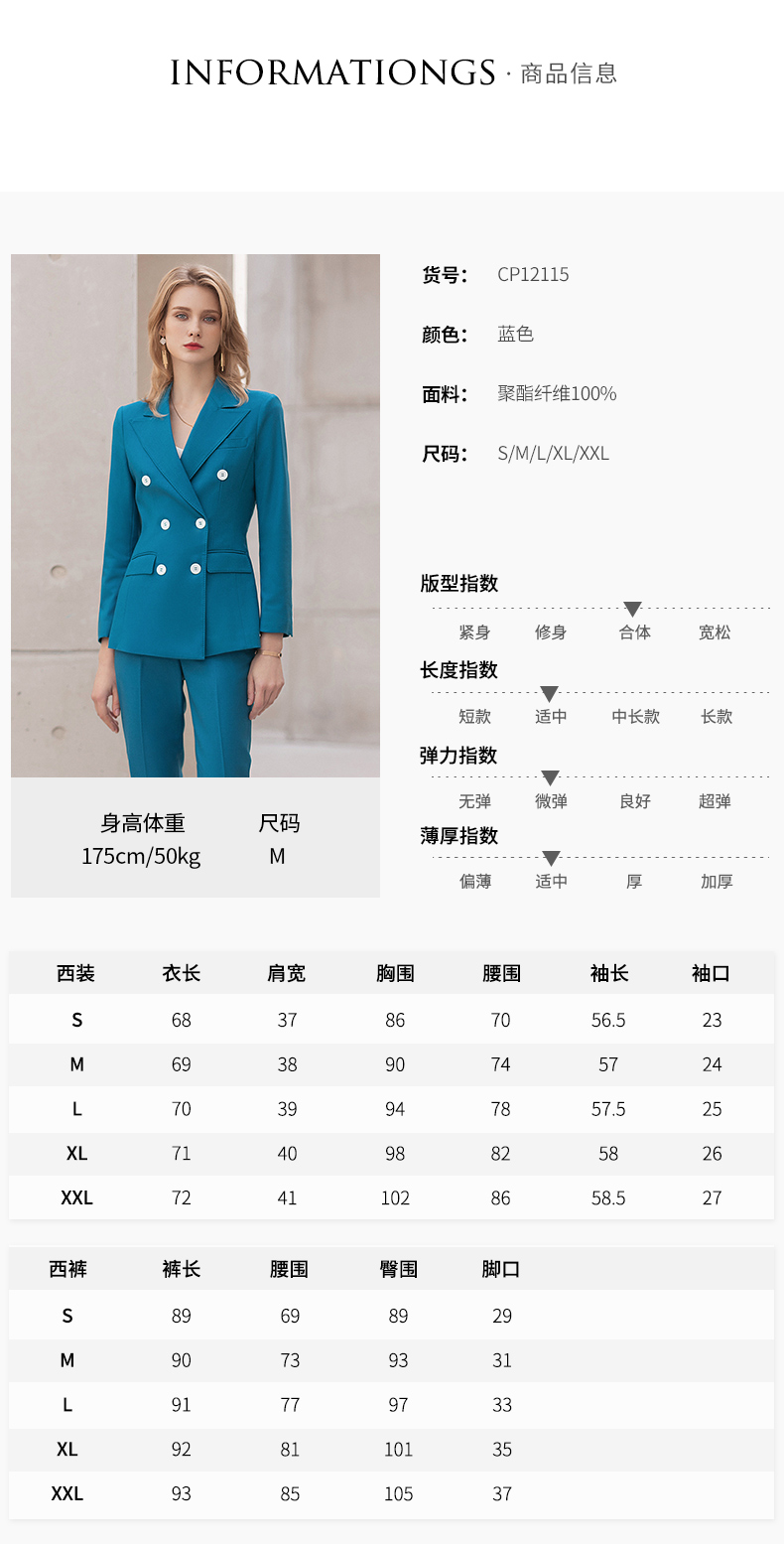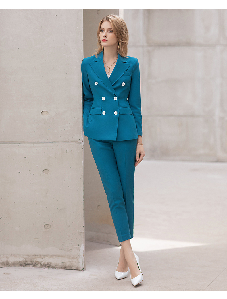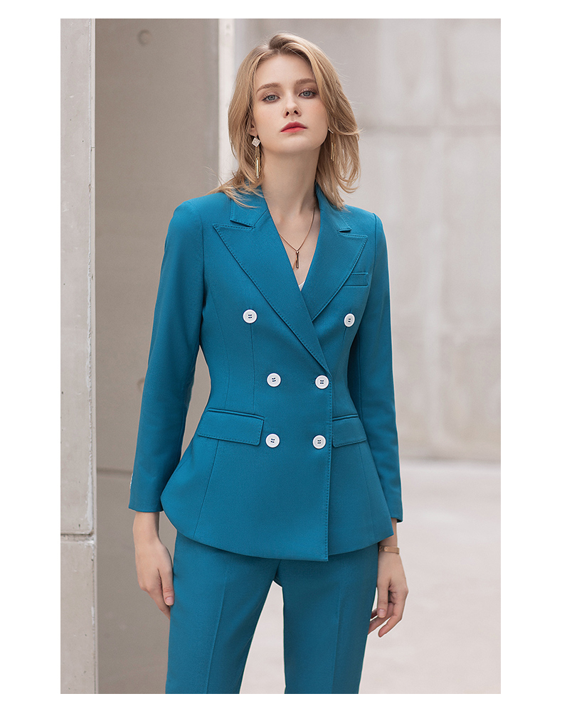 IWY/孔雀蓝西装套装女总裁职业装气质女神范主持人正装售楼部工作服OL CP12115