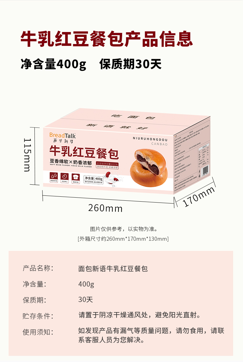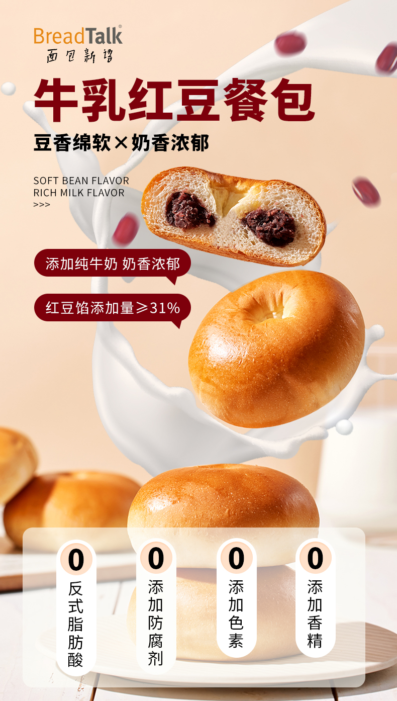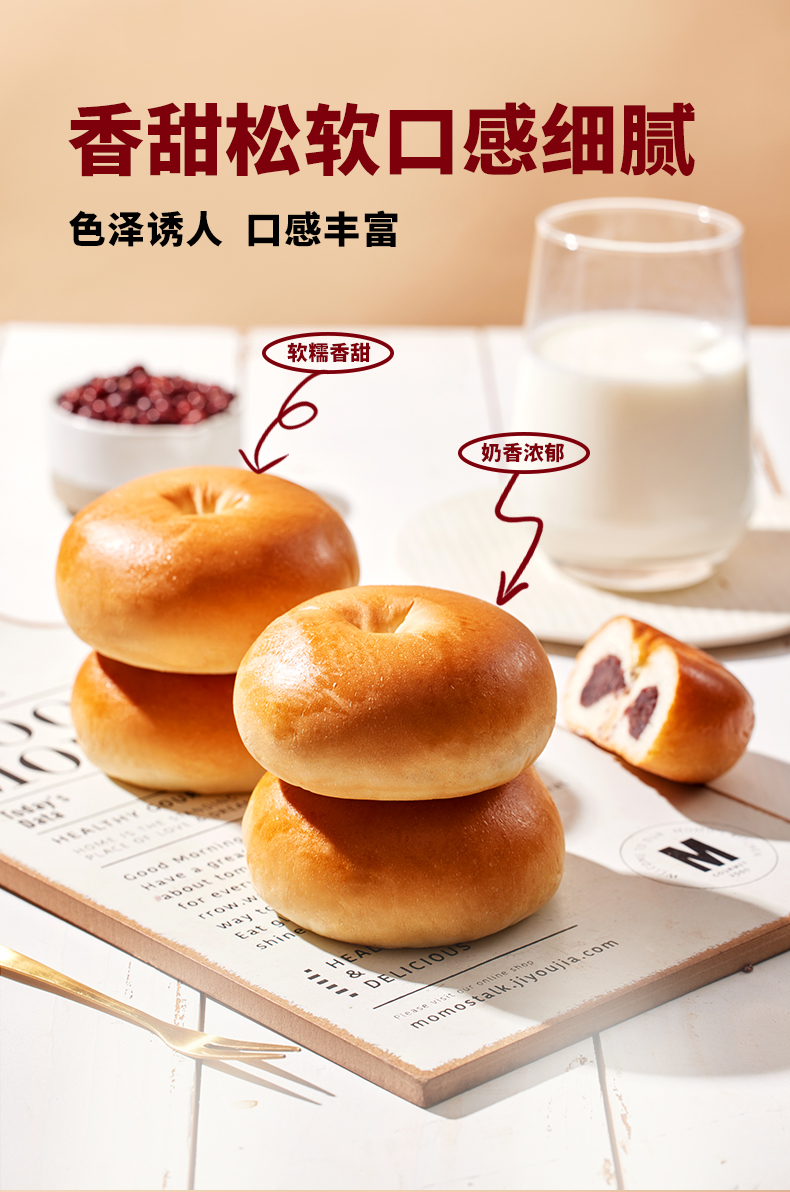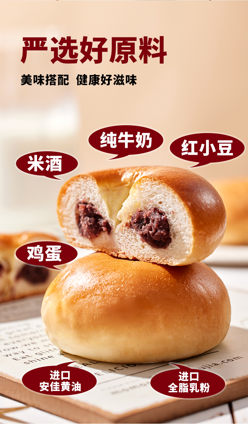 面包新语 牛乳红豆餐包 400g*2