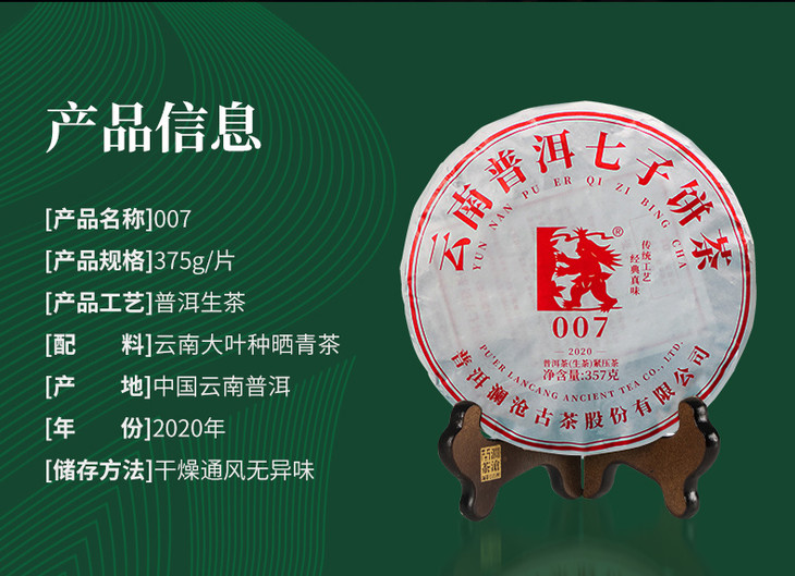澜沧古茶2020年007大饼普洱茶生茶云南茶叶古树老树
