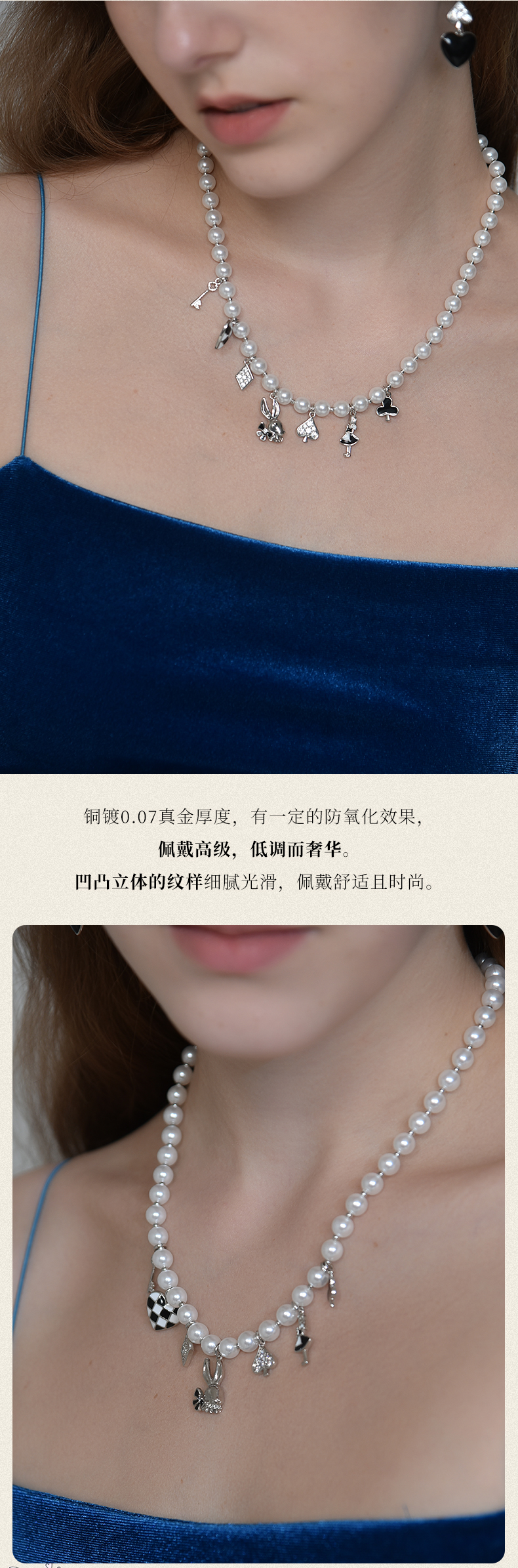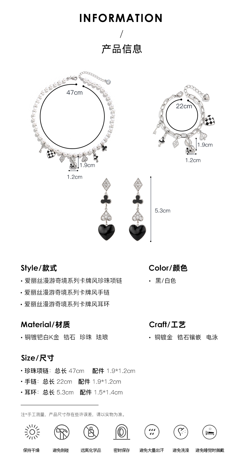 V&A博物馆爱丽丝漫游奇境系列卡牌风珍珠项链手链耳环