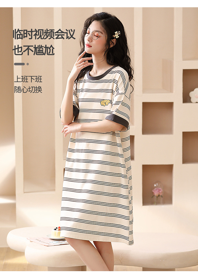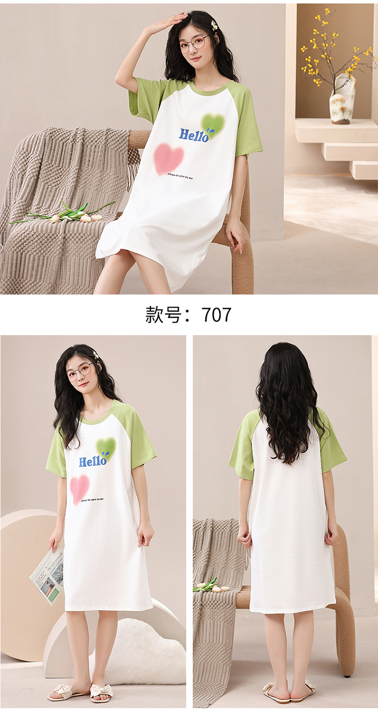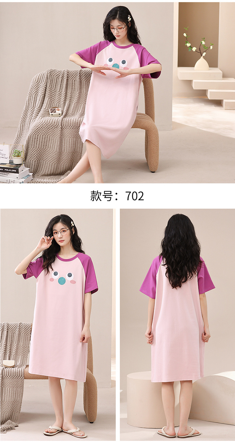 夏季新品纯棉短袖睡裙 女士休闲可外穿家居服睡衣