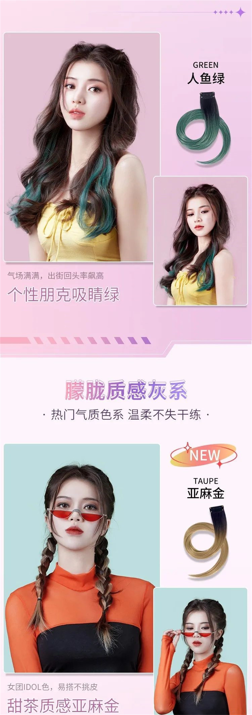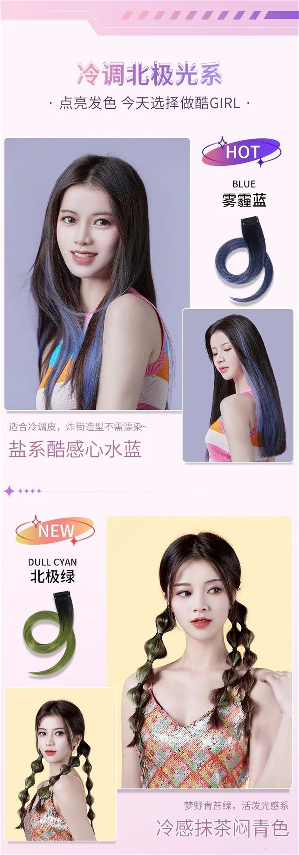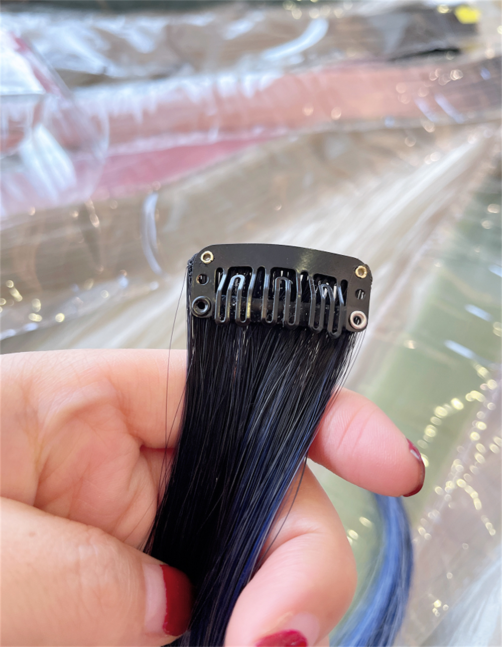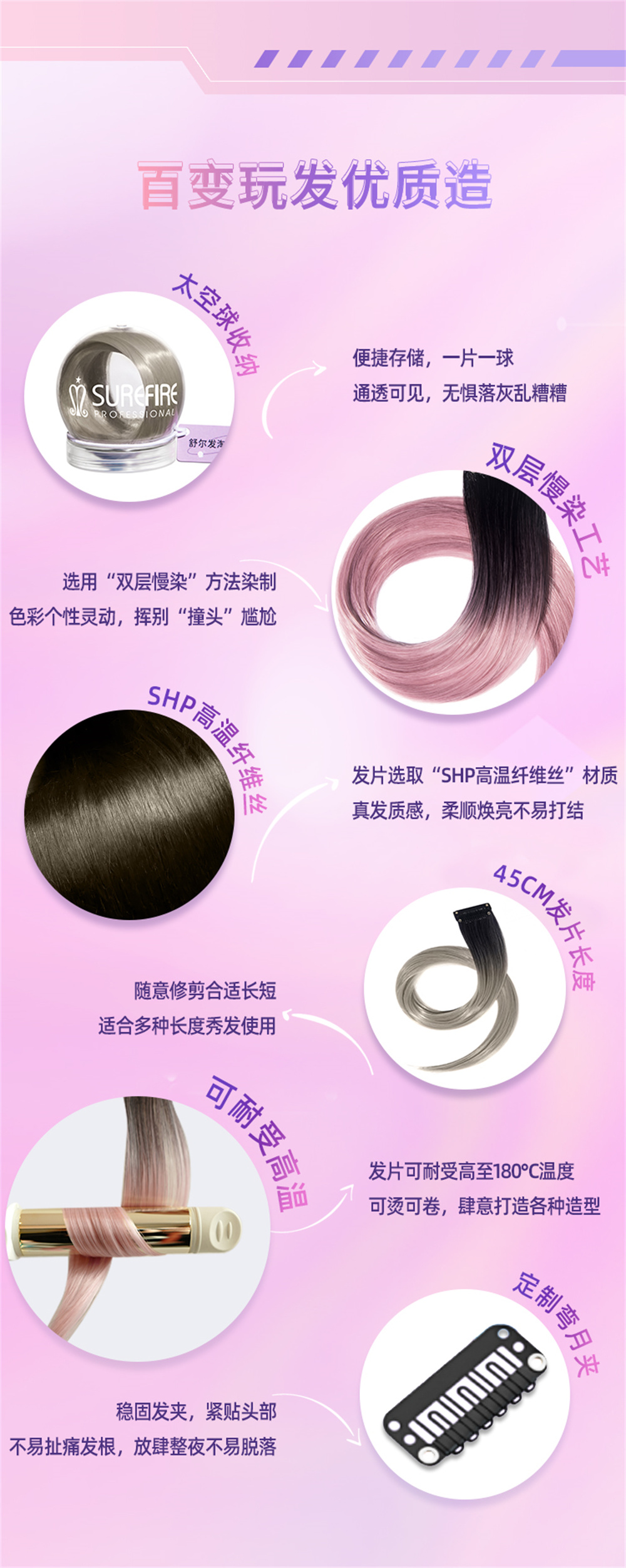 2:每一个发片都有45cm,可以根据自己想要的长度修剪,想要烫个卷发也没关系,耐高温的的材质,可承受180°c