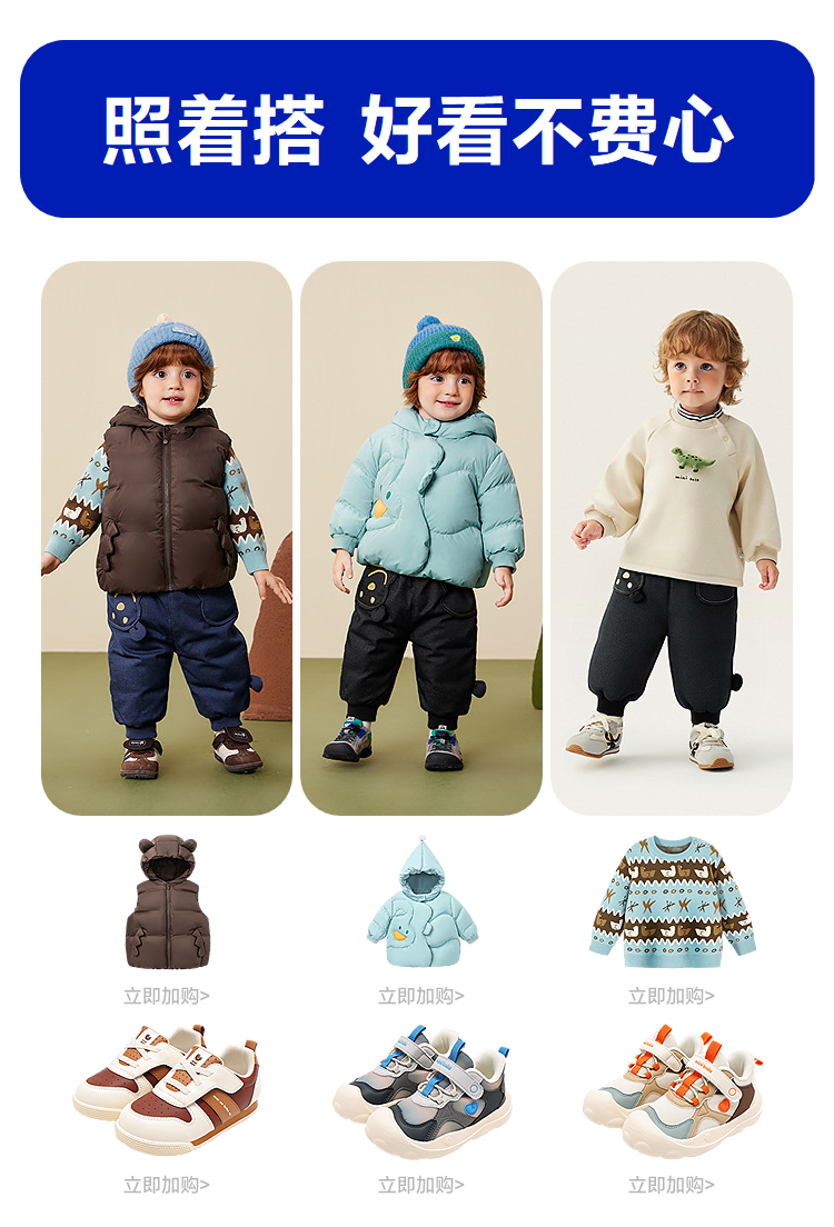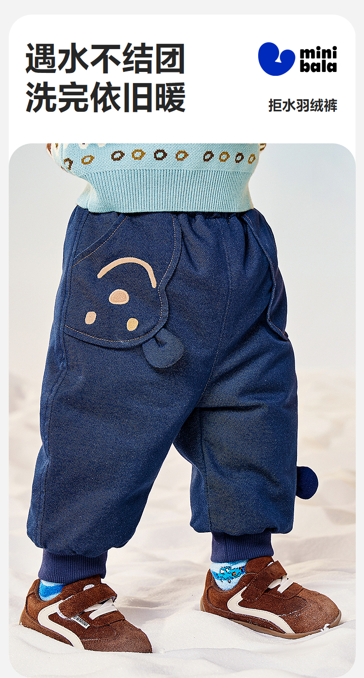 [迷你真心绒]迷你巴拉男女童宝宝拒水羽绒裤2025冬季保暖萌趣裤子