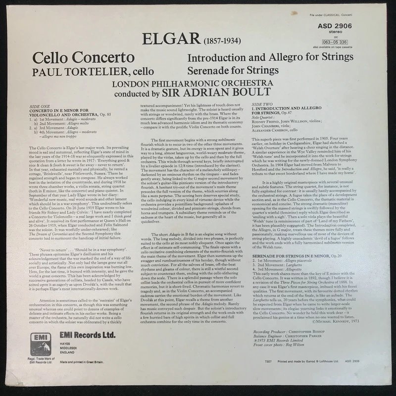 LP黑胶唱片 埃尔加《大提琴协奏曲》 伦敦爱乐乐团 博尔特爵士指挥 大提琴:保罗·托特里埃