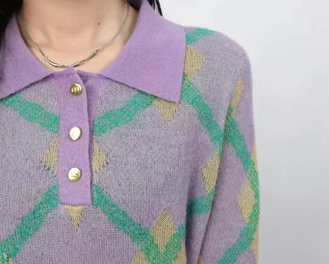 74M20352#超细马海毛POLO领毛织长袖