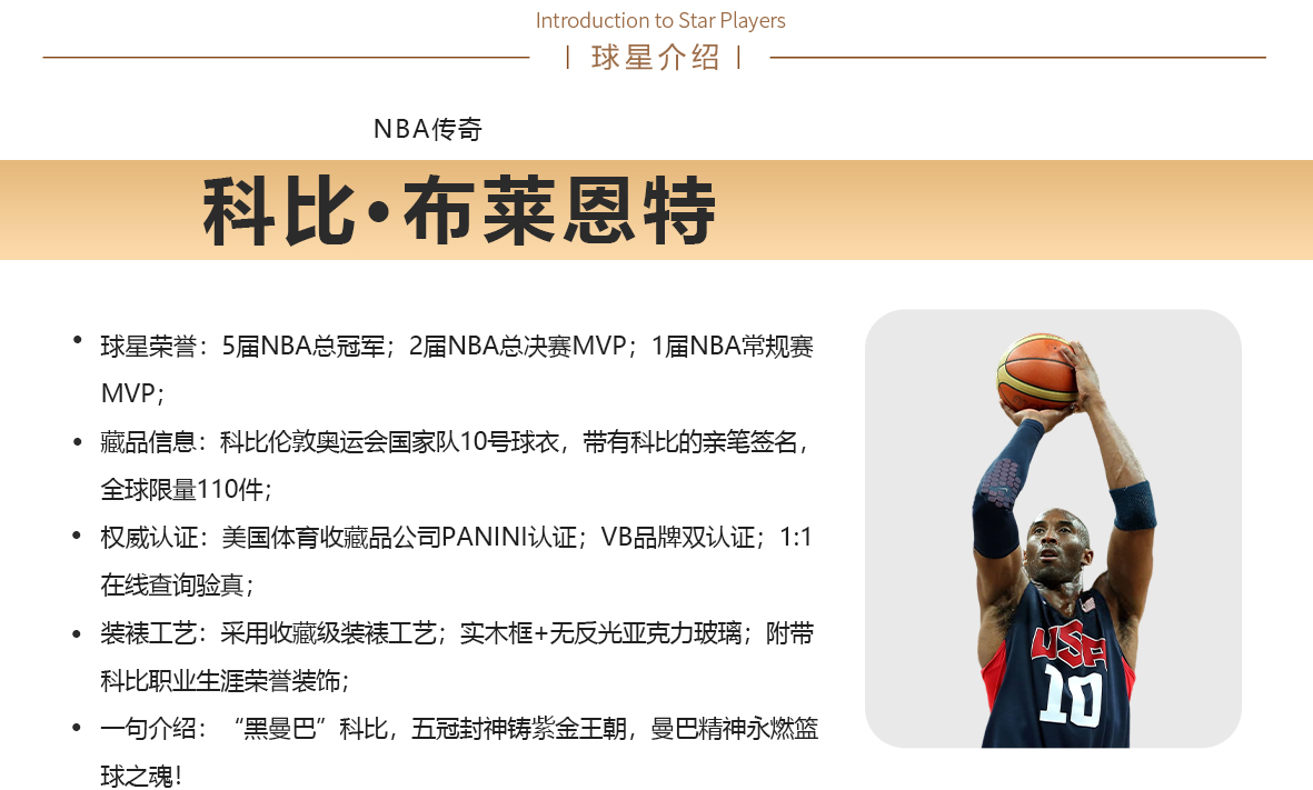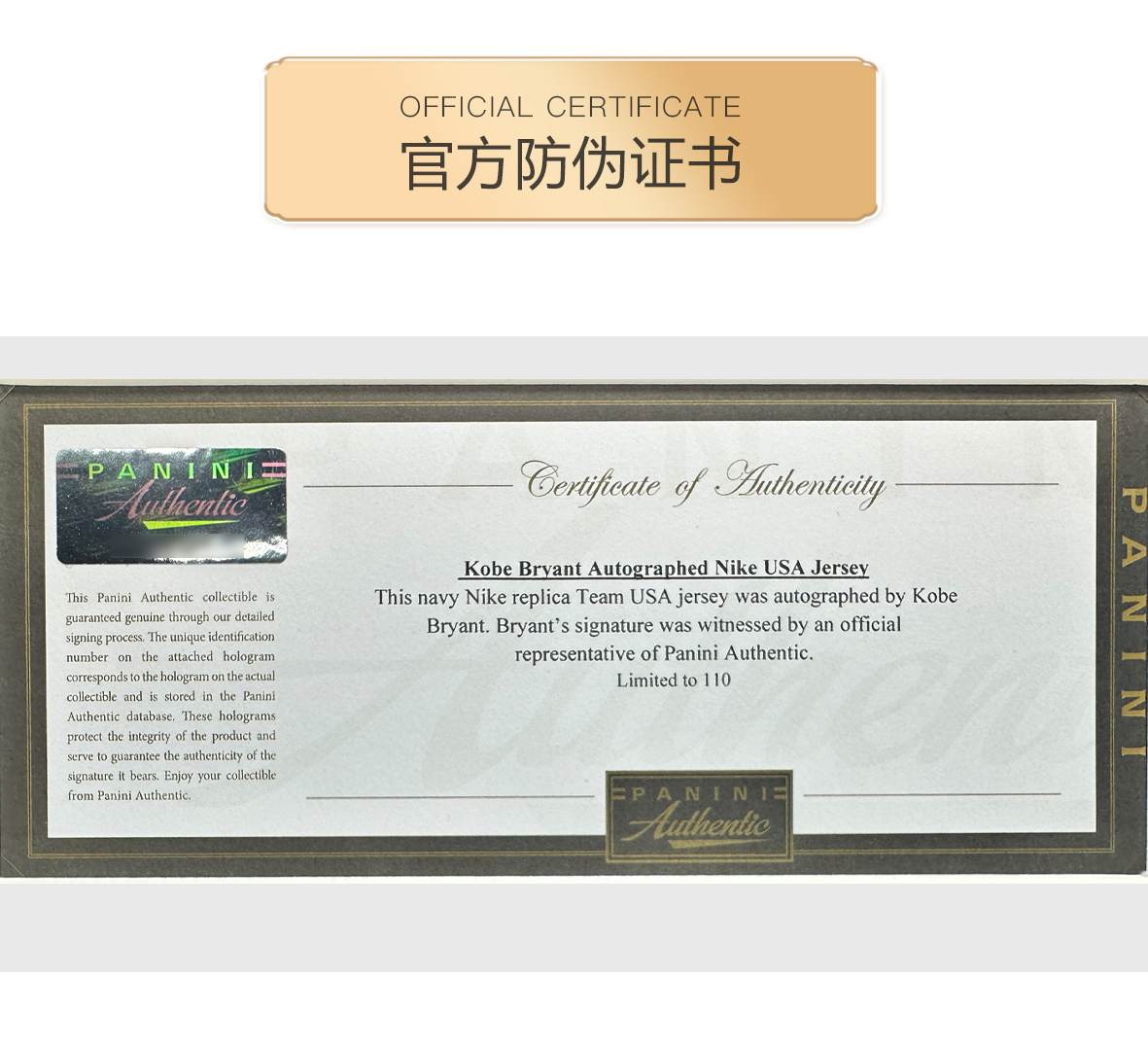 收藏系列 科比 国家队10号蓝色限量版 正面 亲笔签名球衣