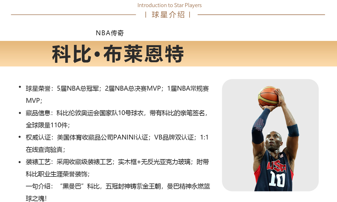 收藏系列 科比 国家队10号蓝色限量版 背面亲笔签名球衣