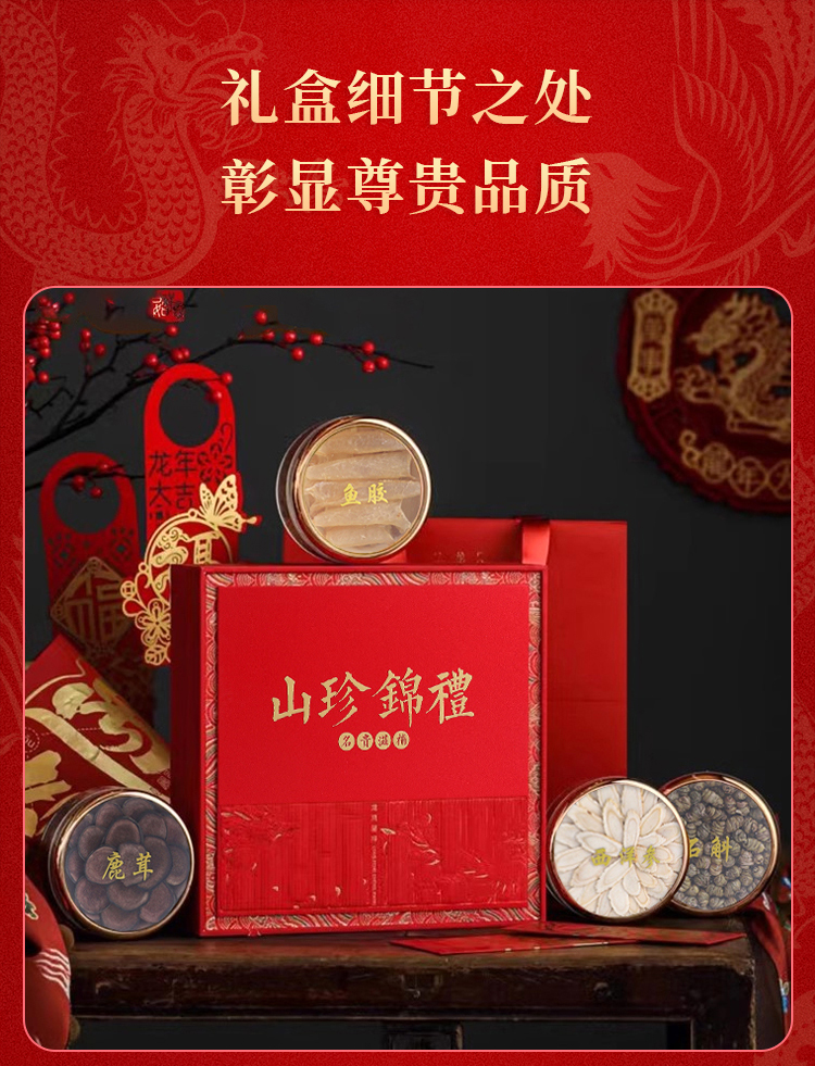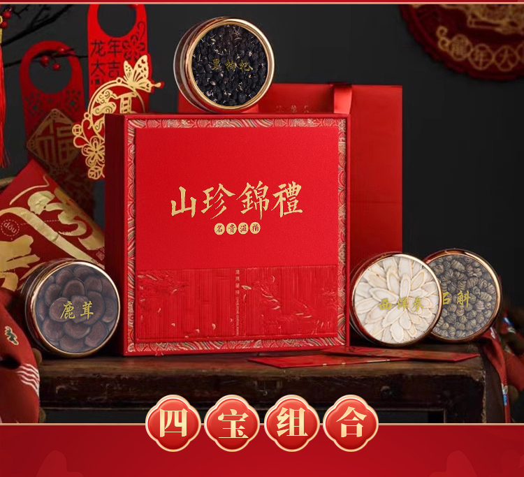 【滋补四宝礼盒】西洋参 高丽参 铁皮石斛 鹿茸 鱼胶等多种组合