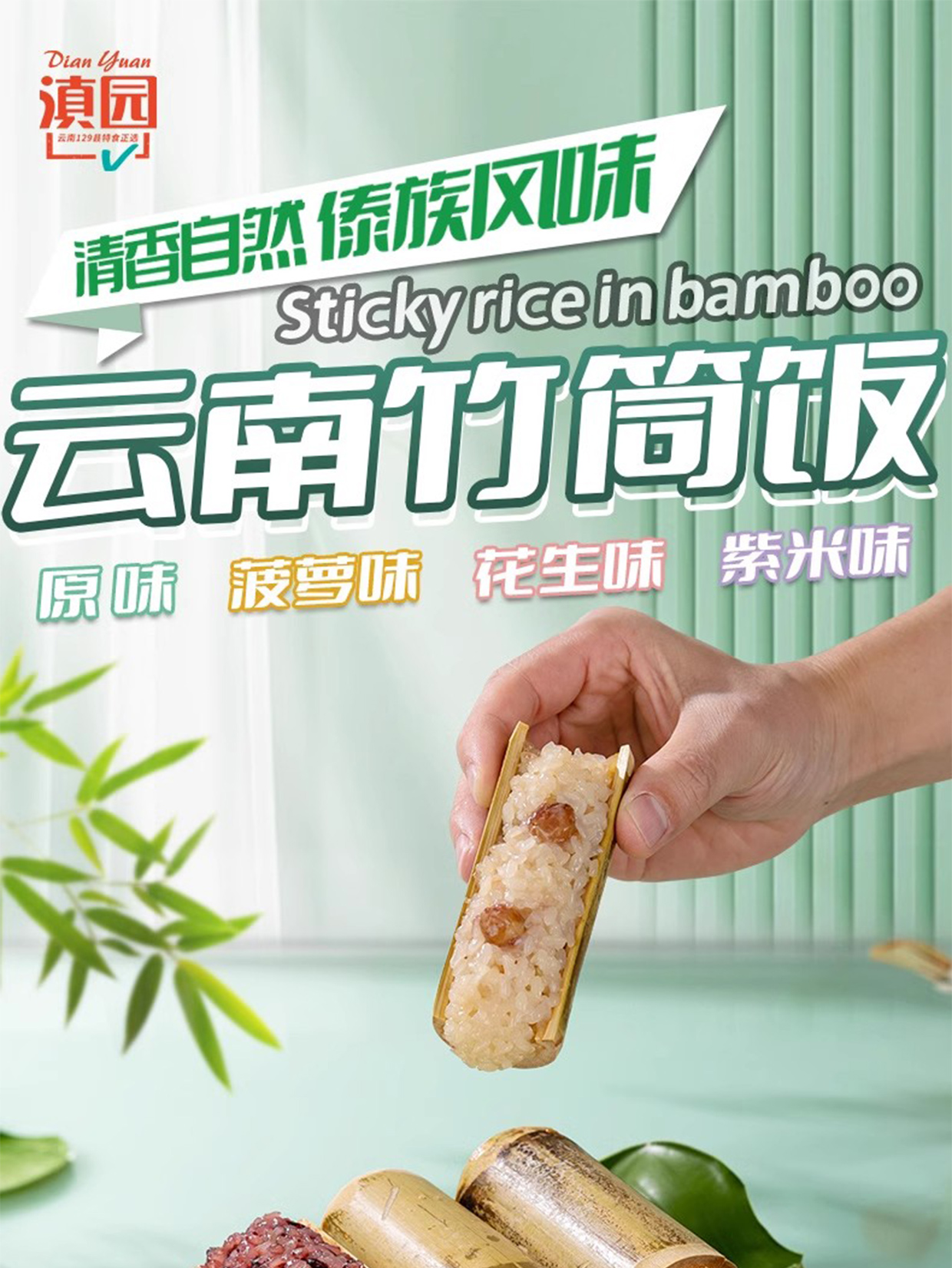 云南特产竹筒饭加热即食口感独特,软糯香甜