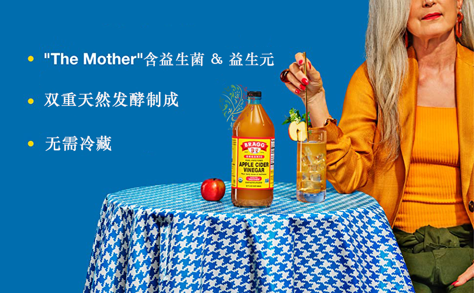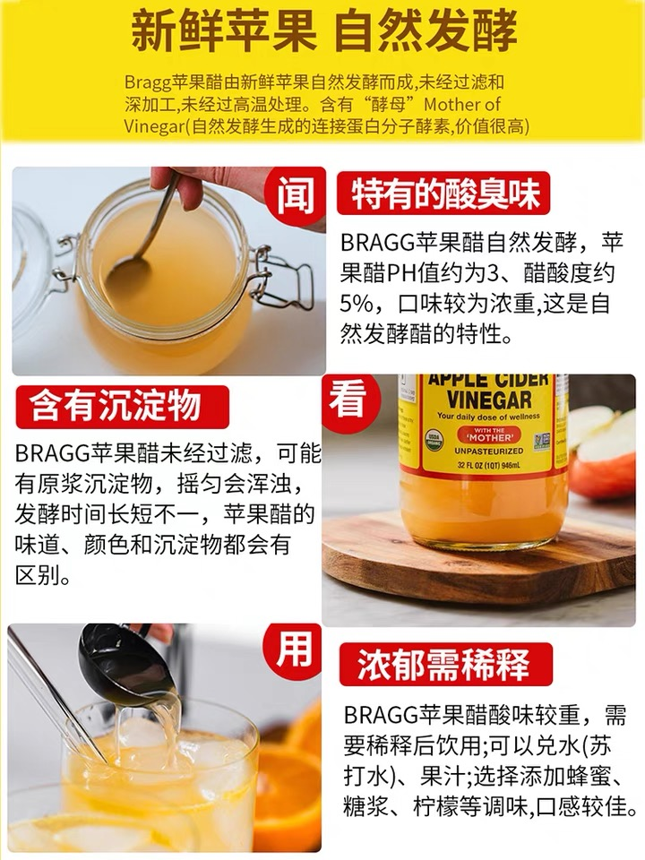 美国Bragg浓缩苹果醋 无糖 添加酵素 原醋清体管身材冲饮