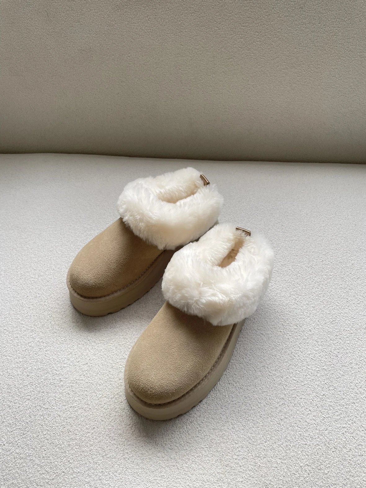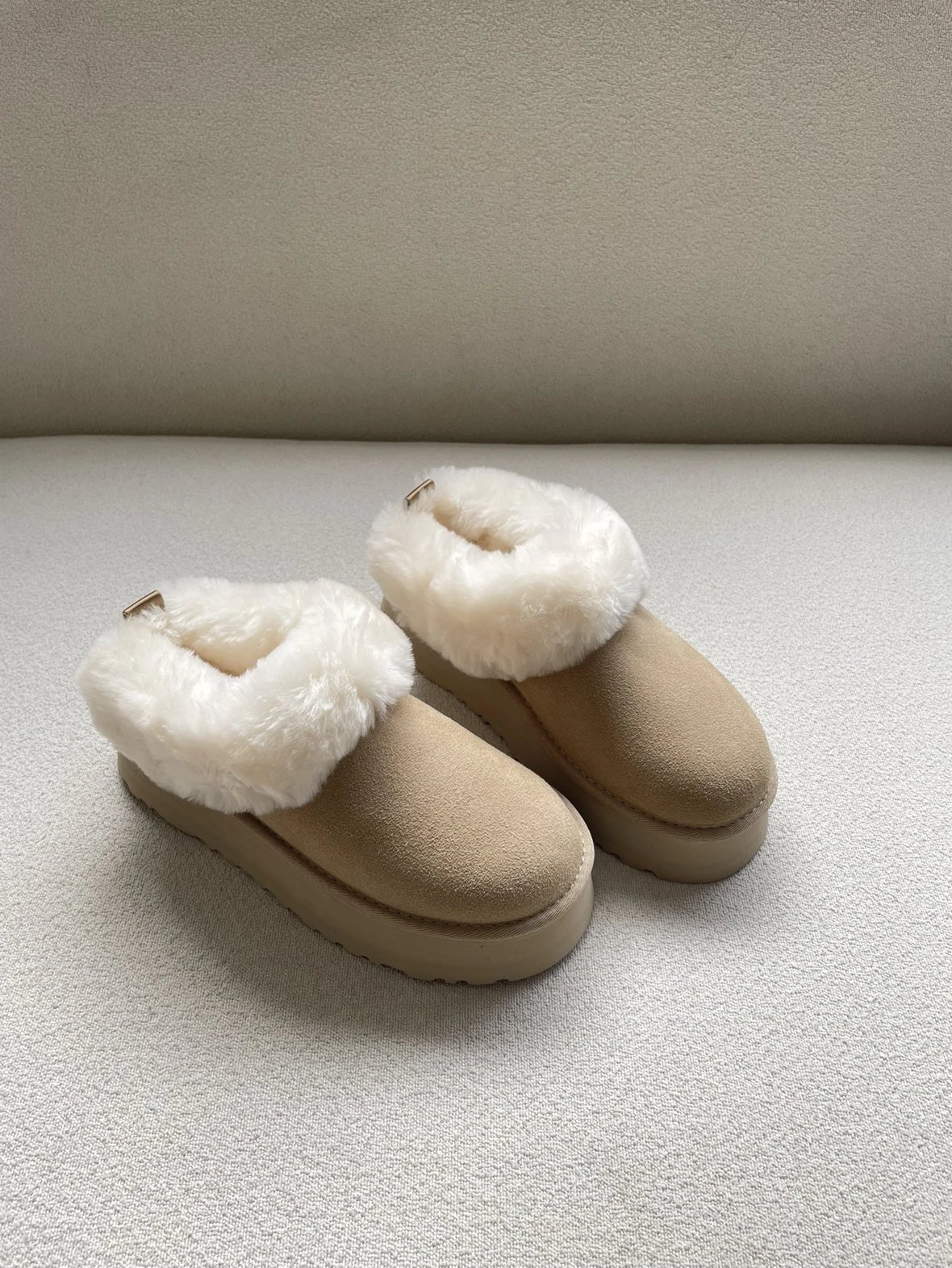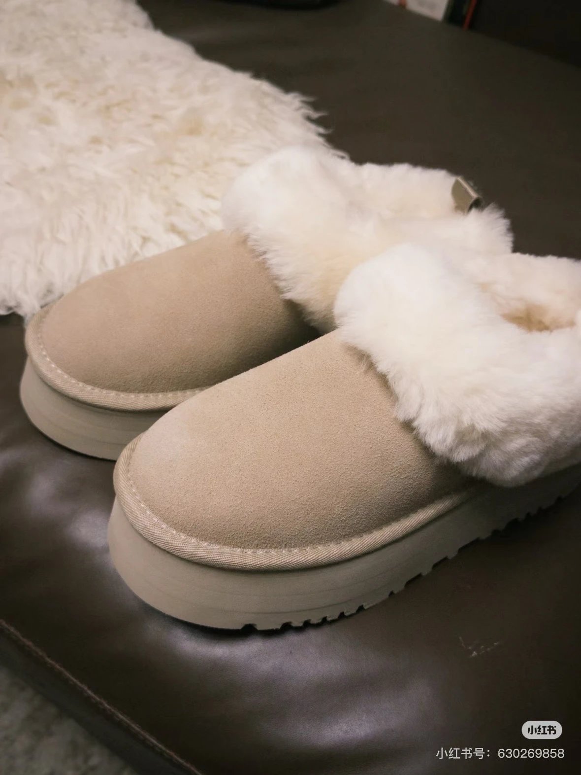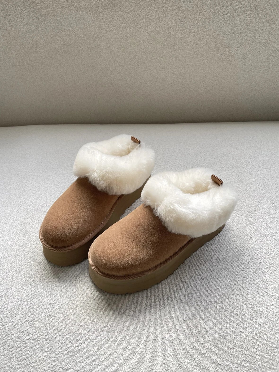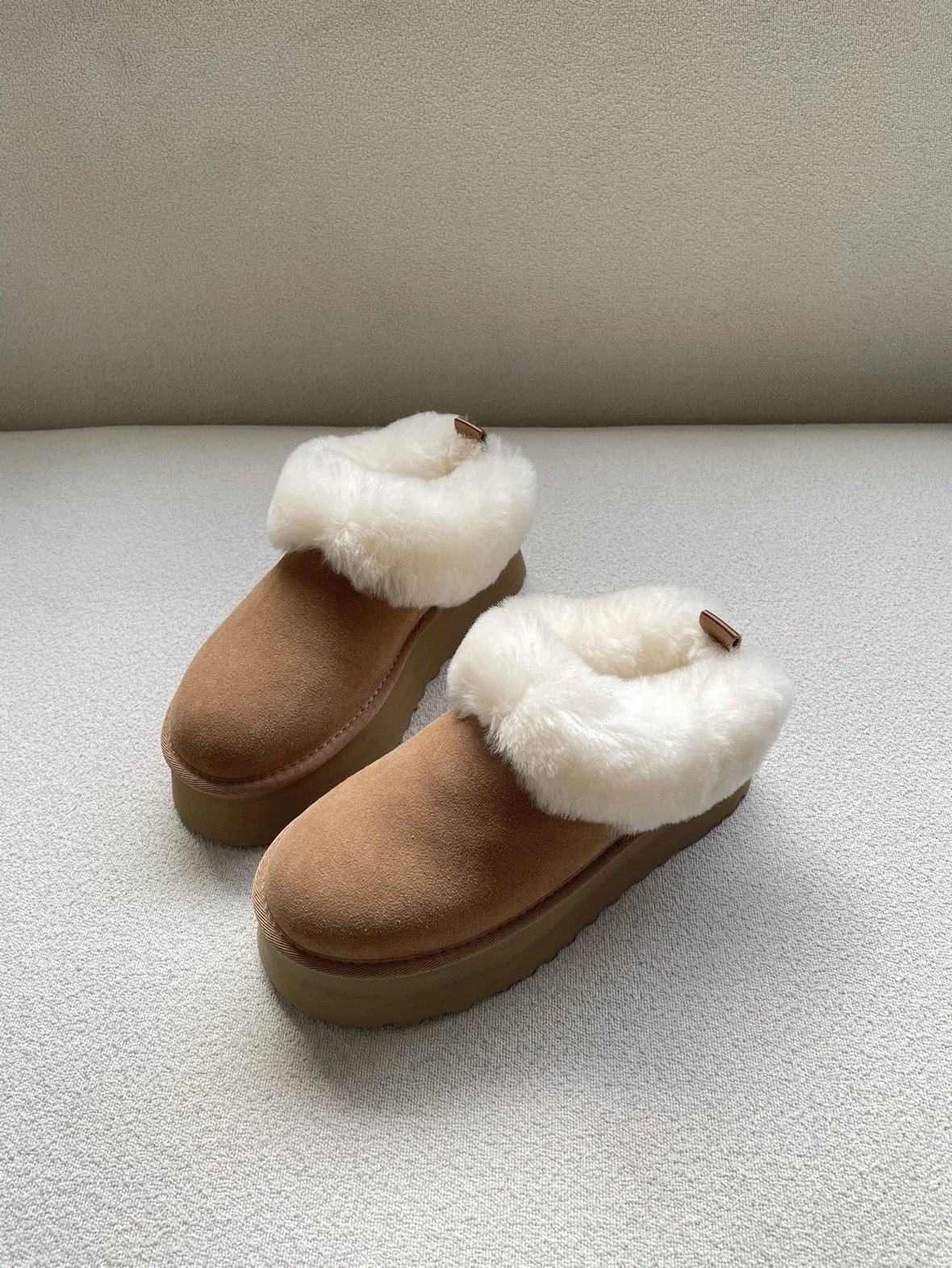 懒人必备 油叽叽系列 塔茨特便鞋 一脚蹬毛毛鞋 厚底拖鞋皮毛一体雪地靴