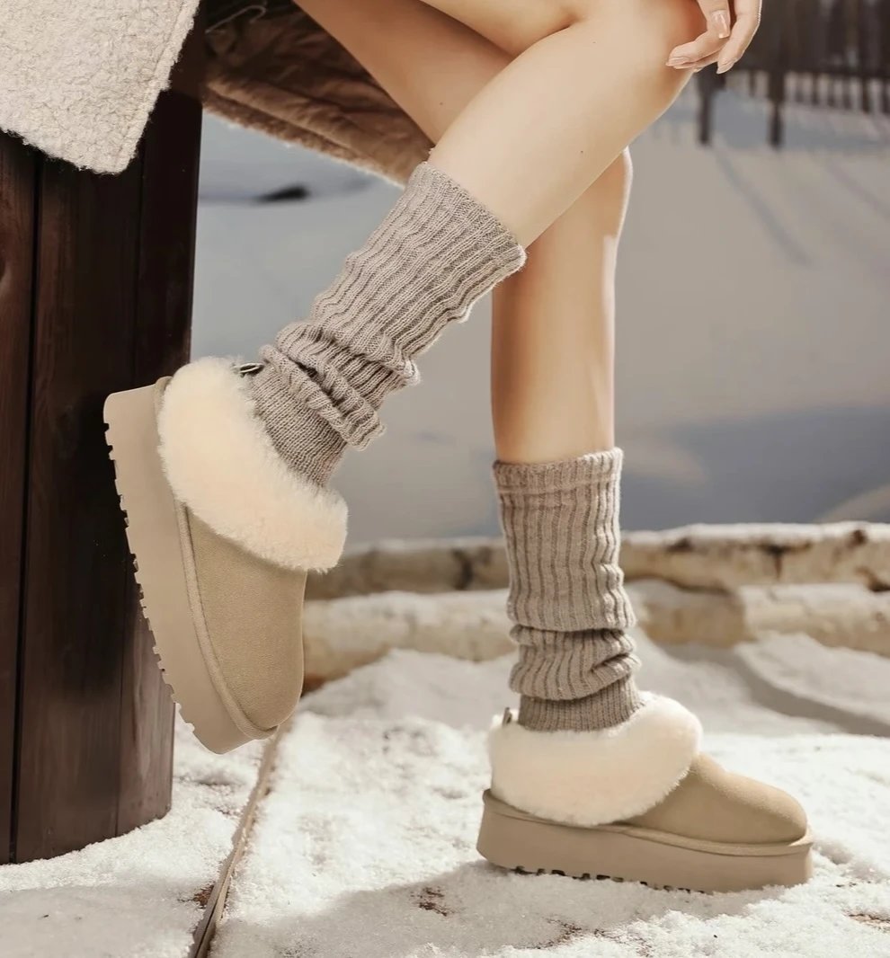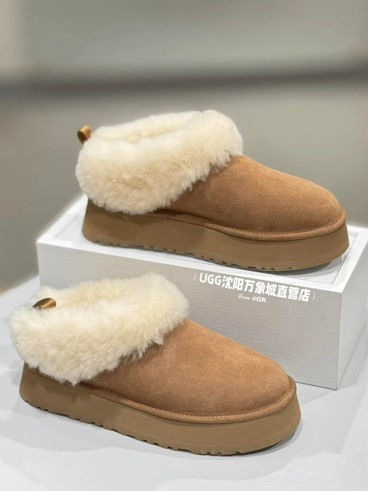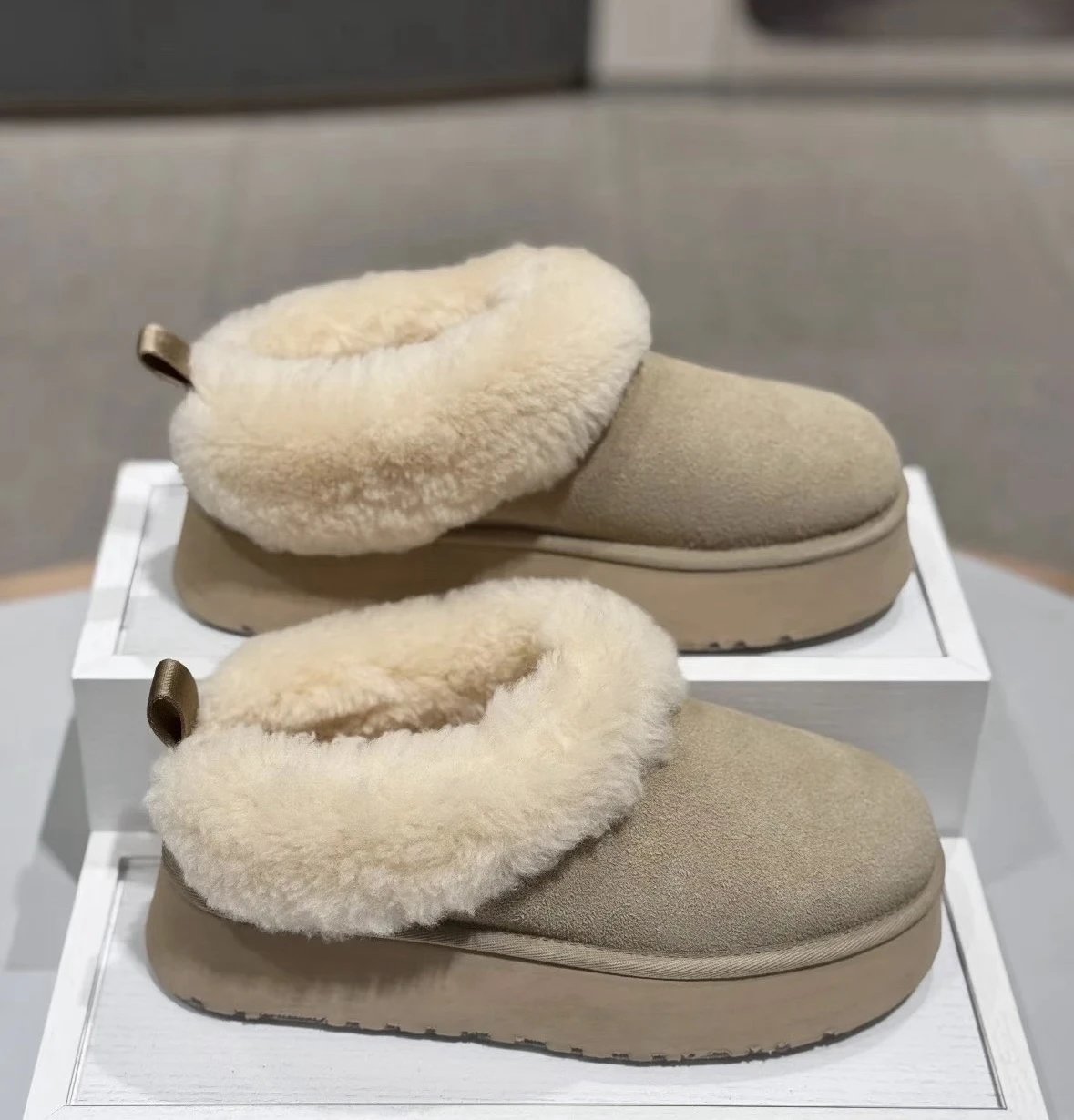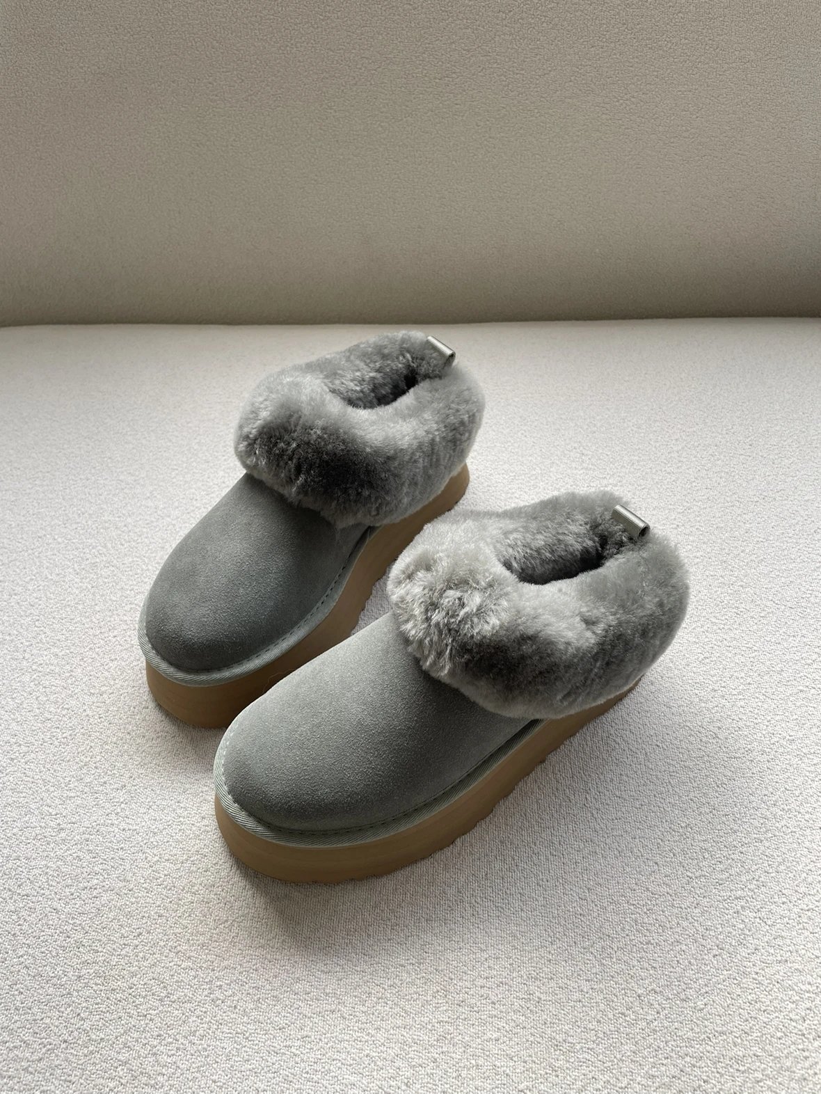 懒人必备 油叽叽系列 塔茨特便鞋 一脚蹬毛毛鞋 厚底拖鞋皮毛一体雪地靴