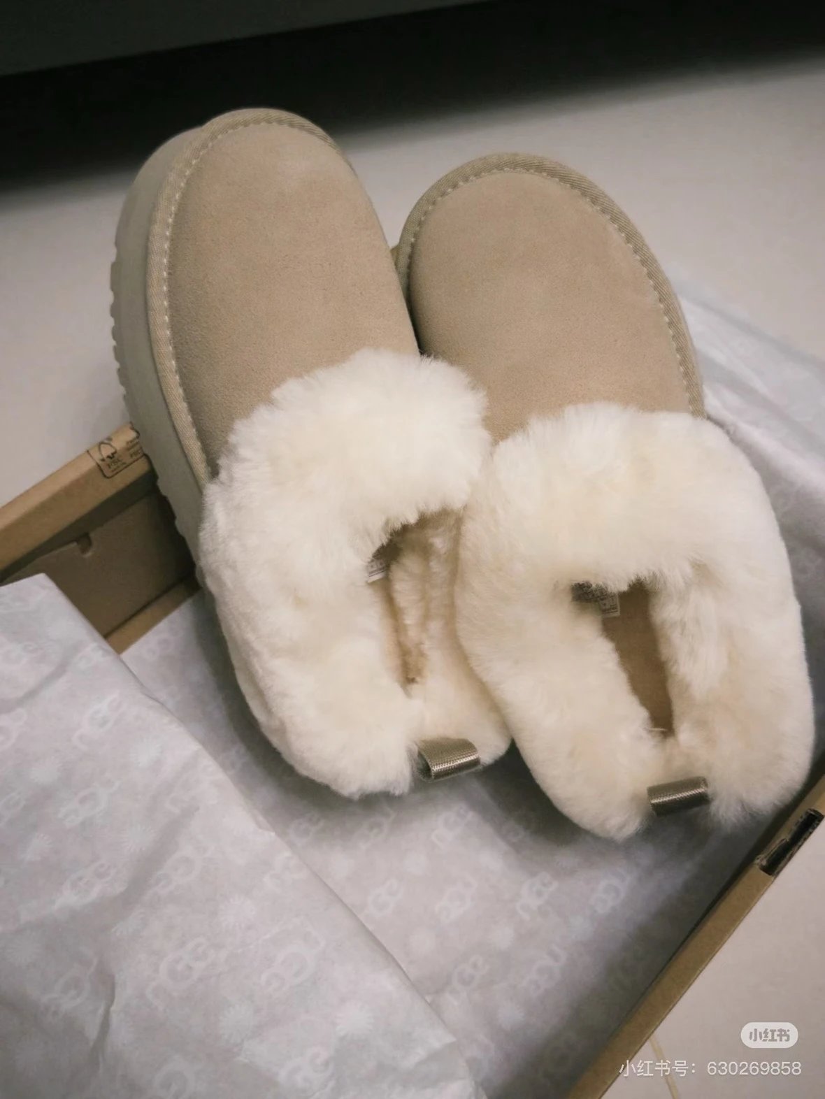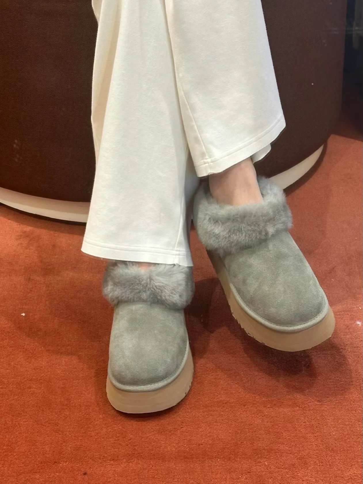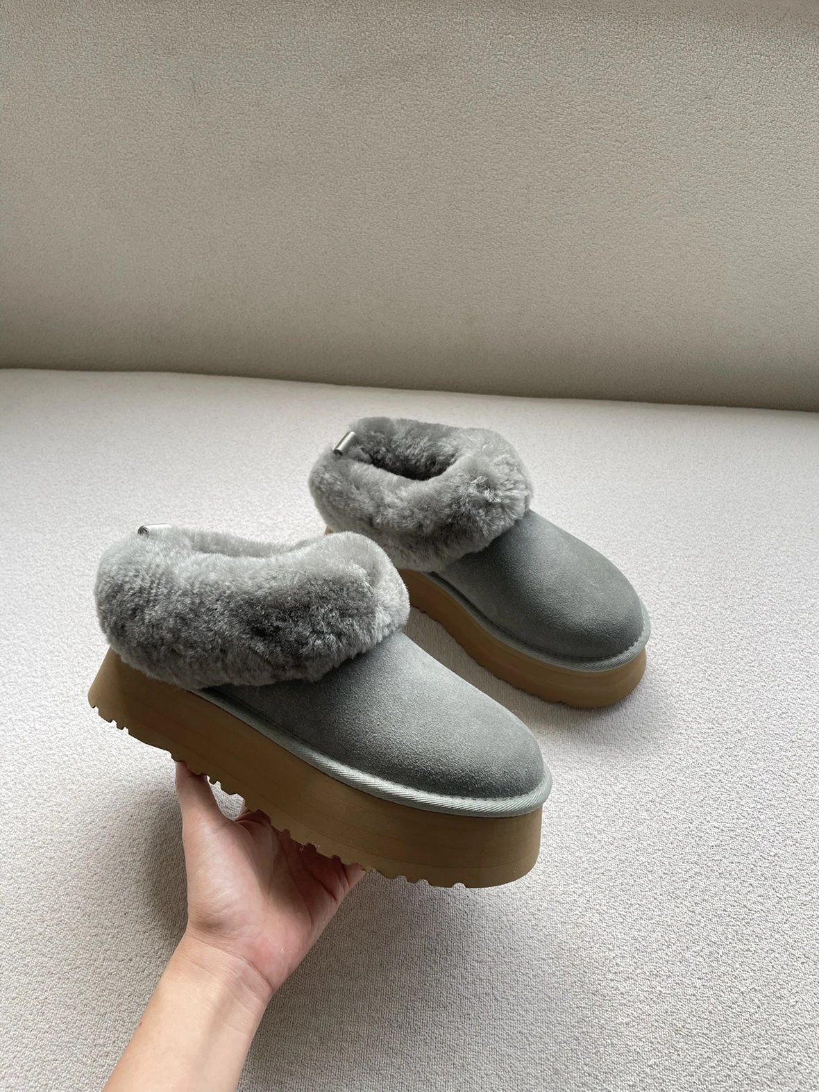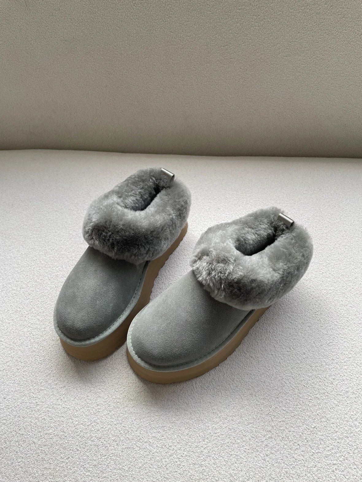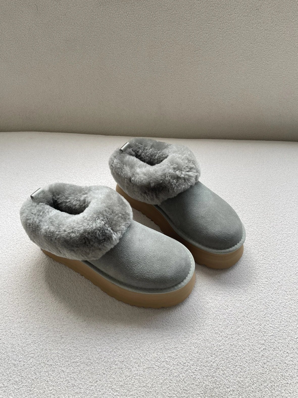懒人必备 油叽叽系列 塔茨特便鞋 一脚蹬毛毛鞋 厚底拖鞋皮毛一体雪地靴