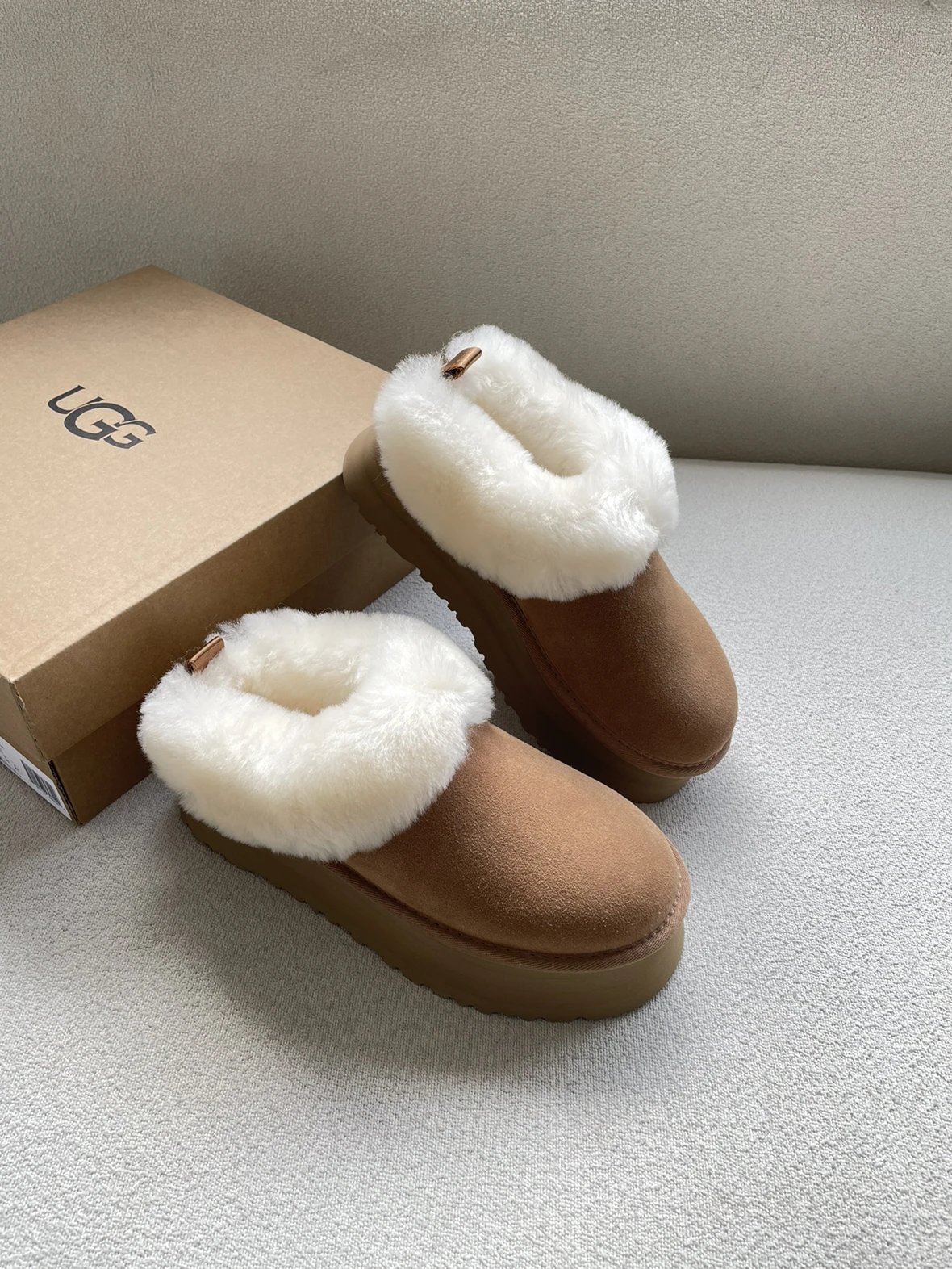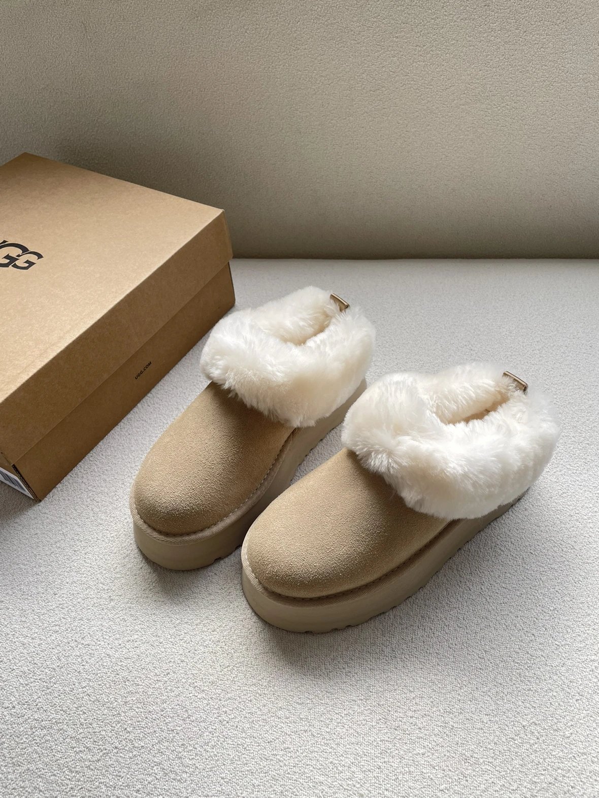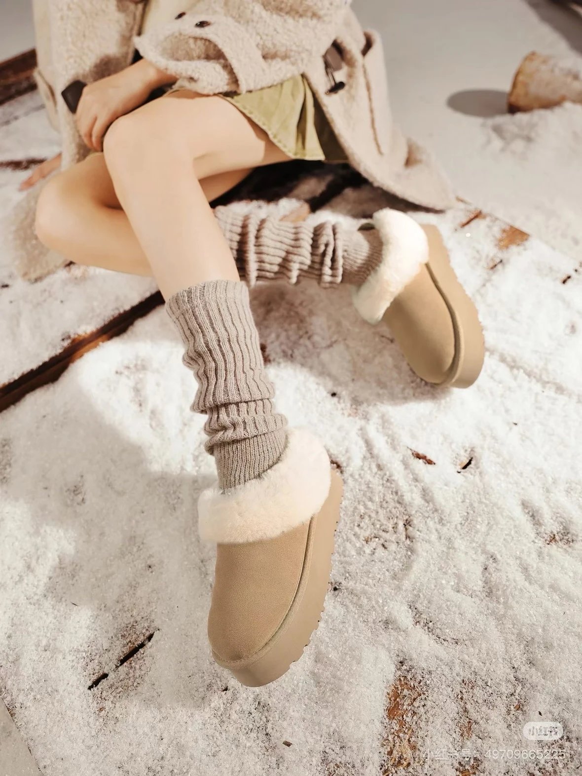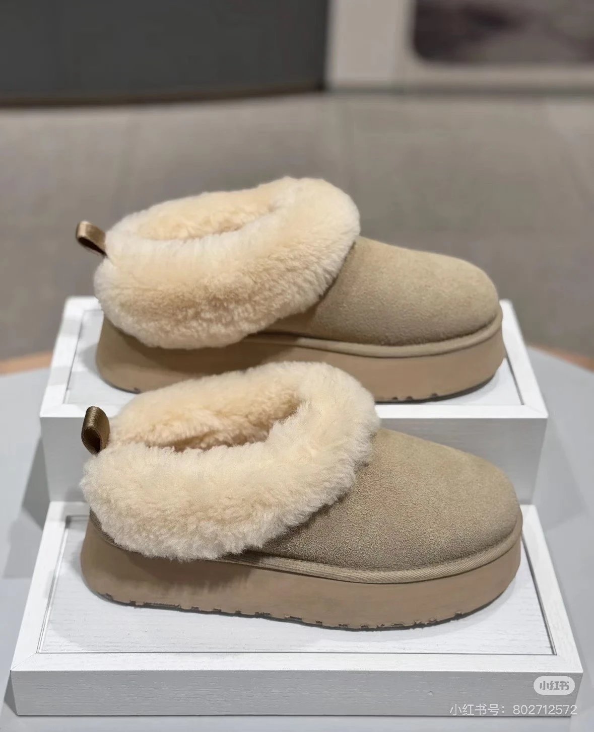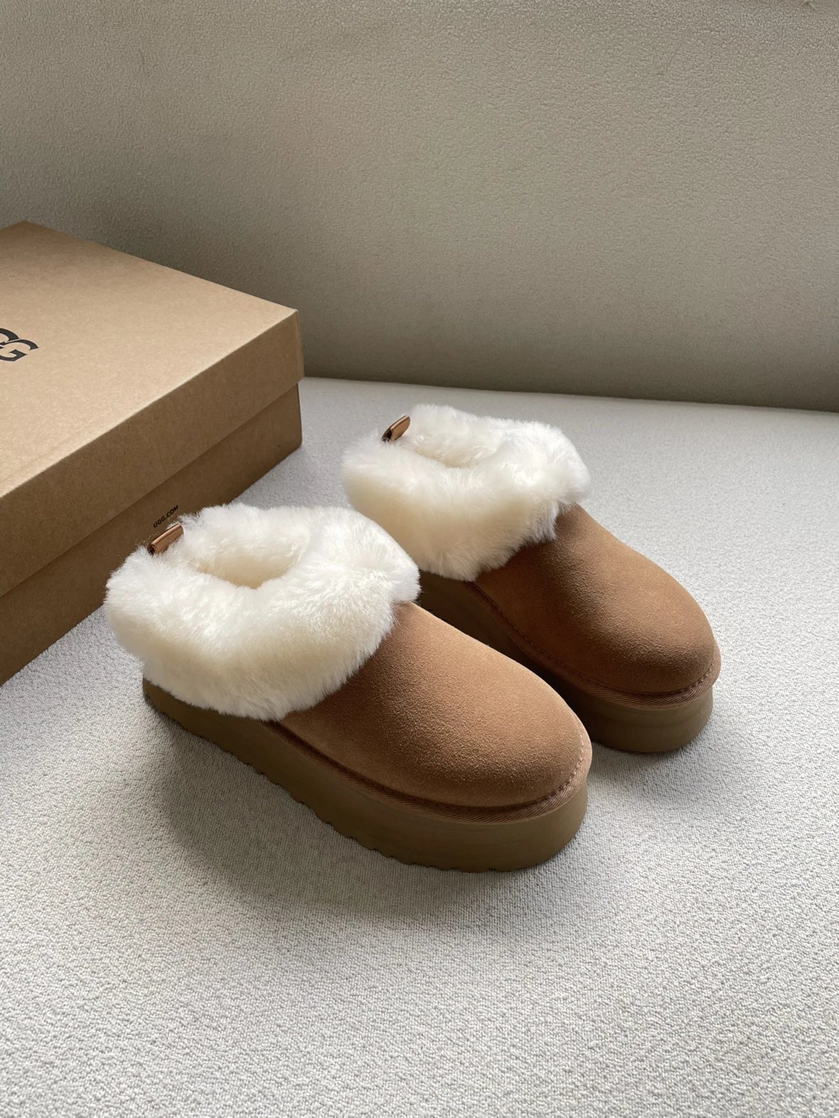 懒人必备 油叽叽系列 塔茨特便鞋 一脚蹬毛毛鞋 厚底拖鞋皮毛一体雪地靴