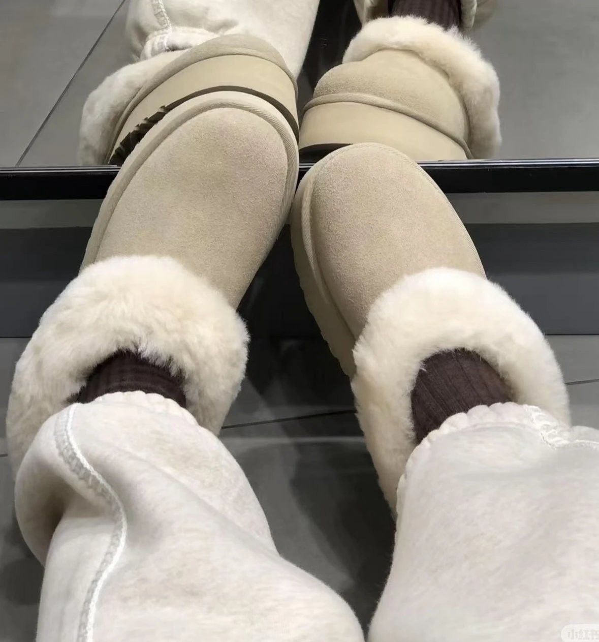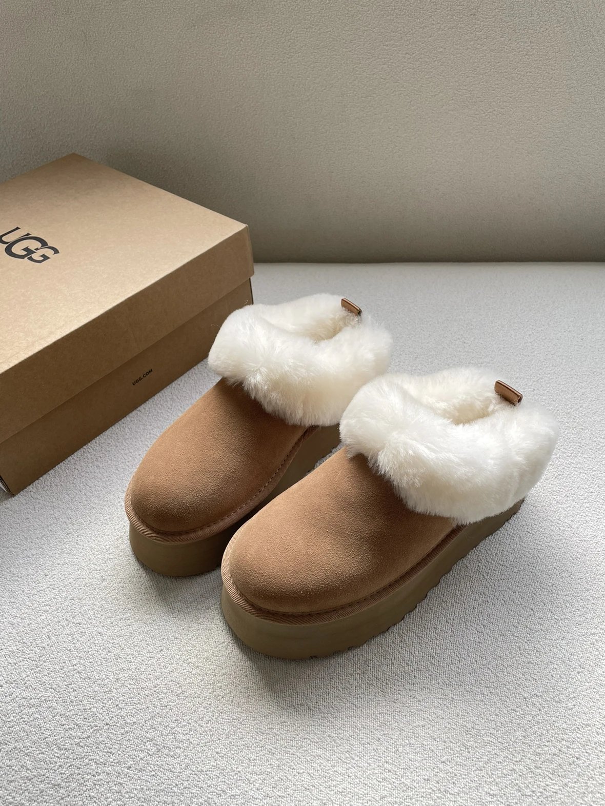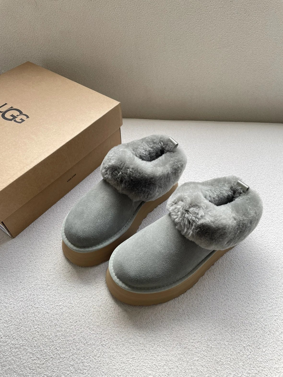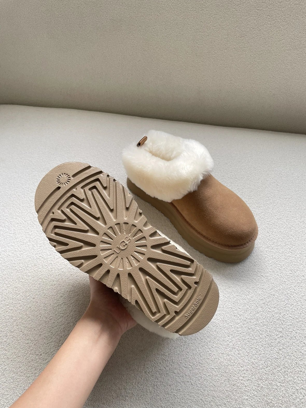 懒人必备 油叽叽系列 塔茨特便鞋 一脚蹬毛毛鞋 厚底拖鞋皮毛一体雪地靴