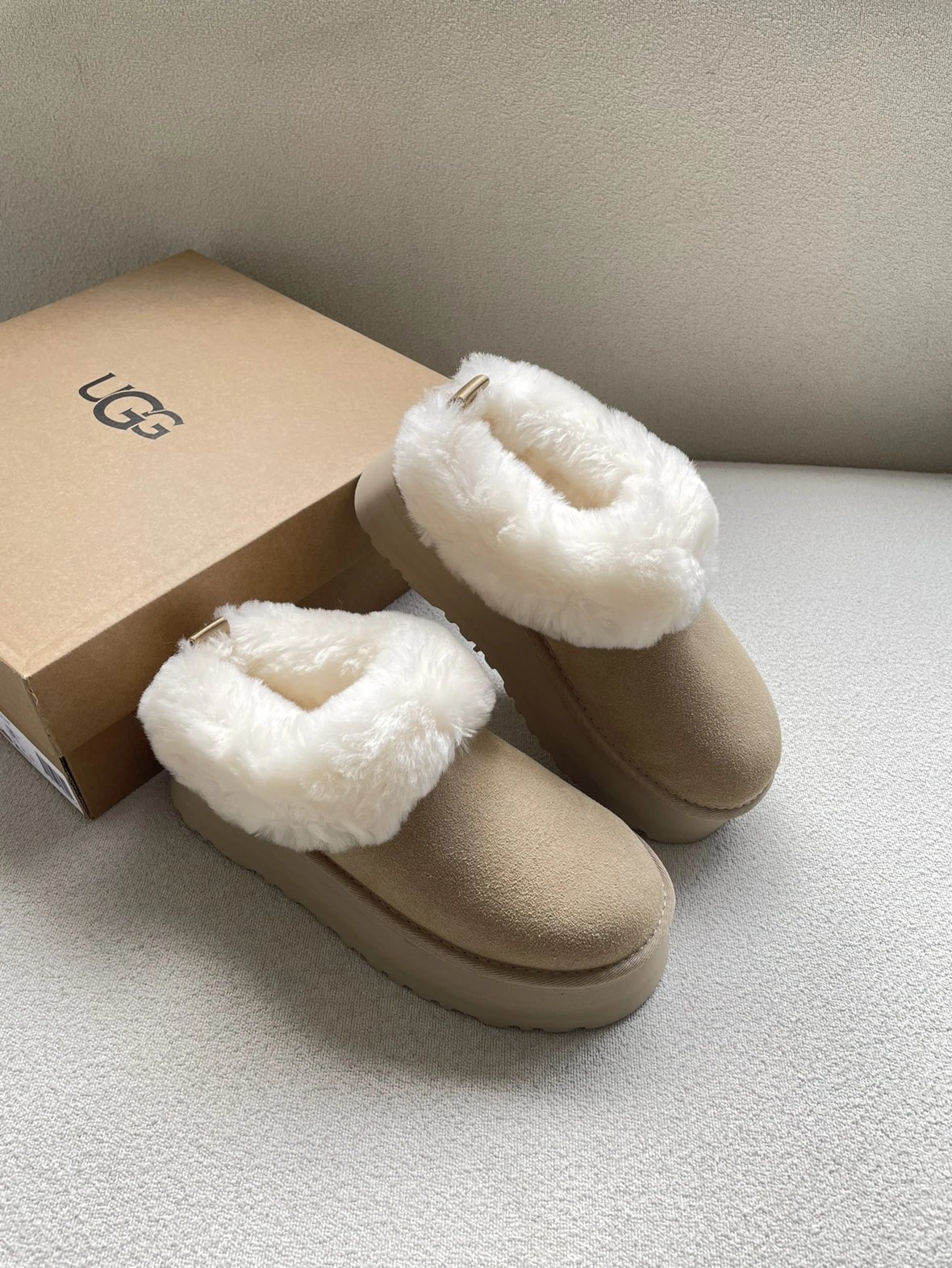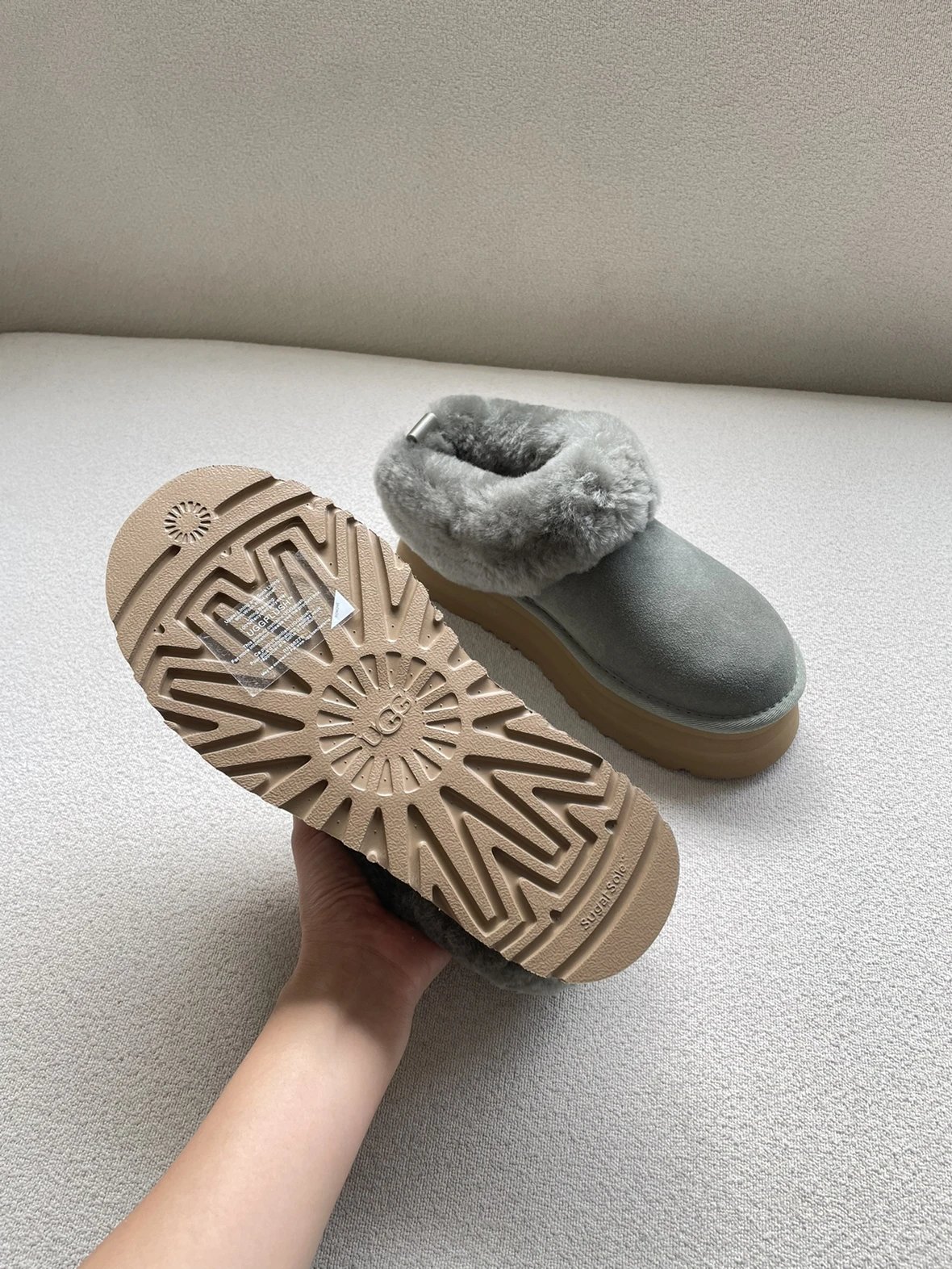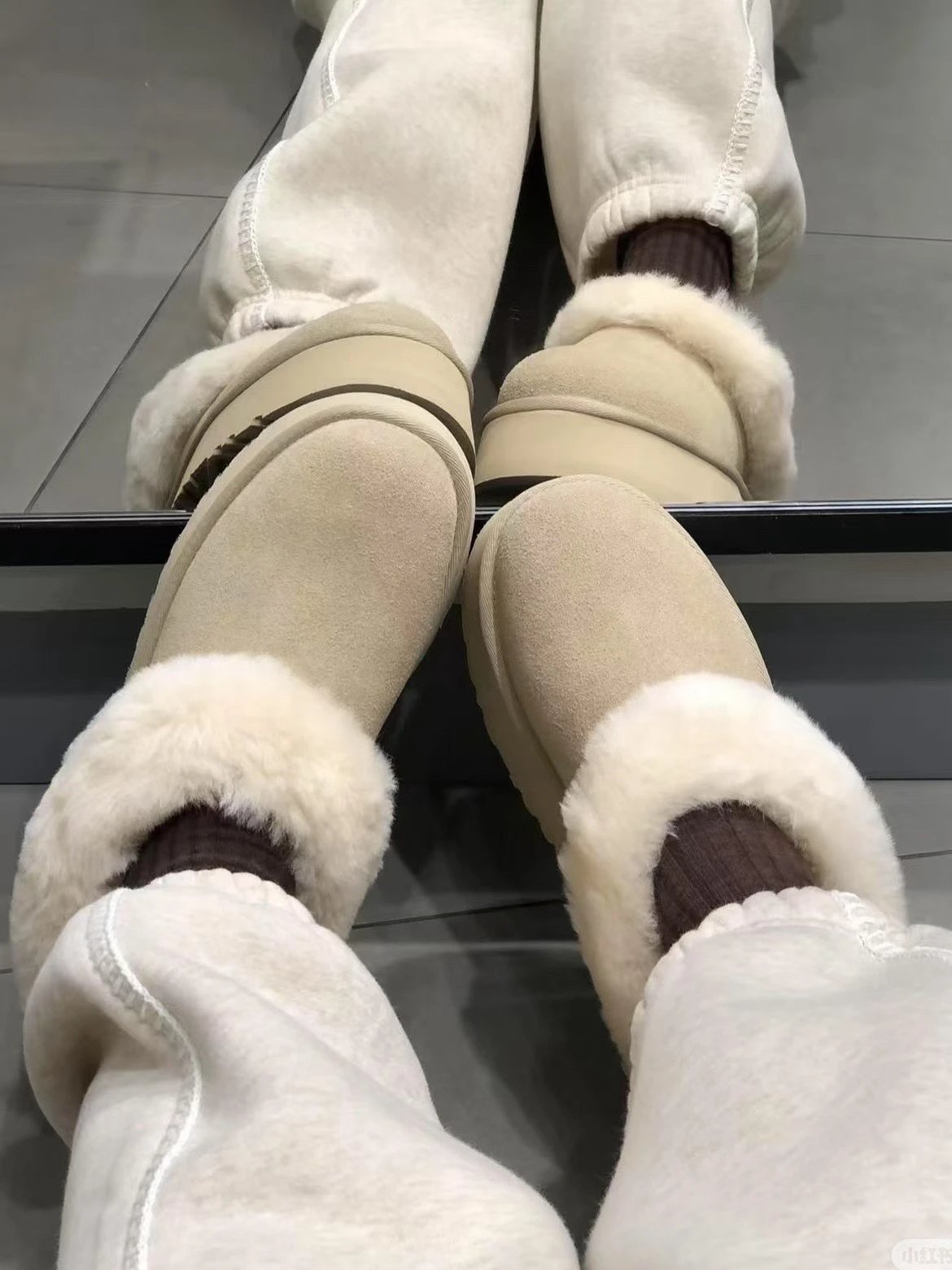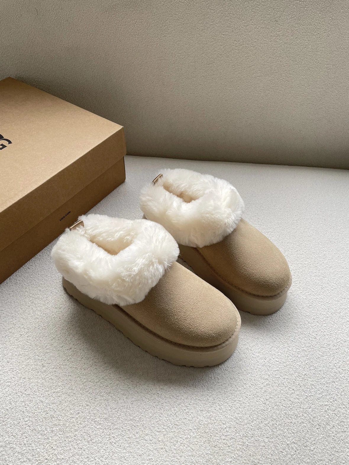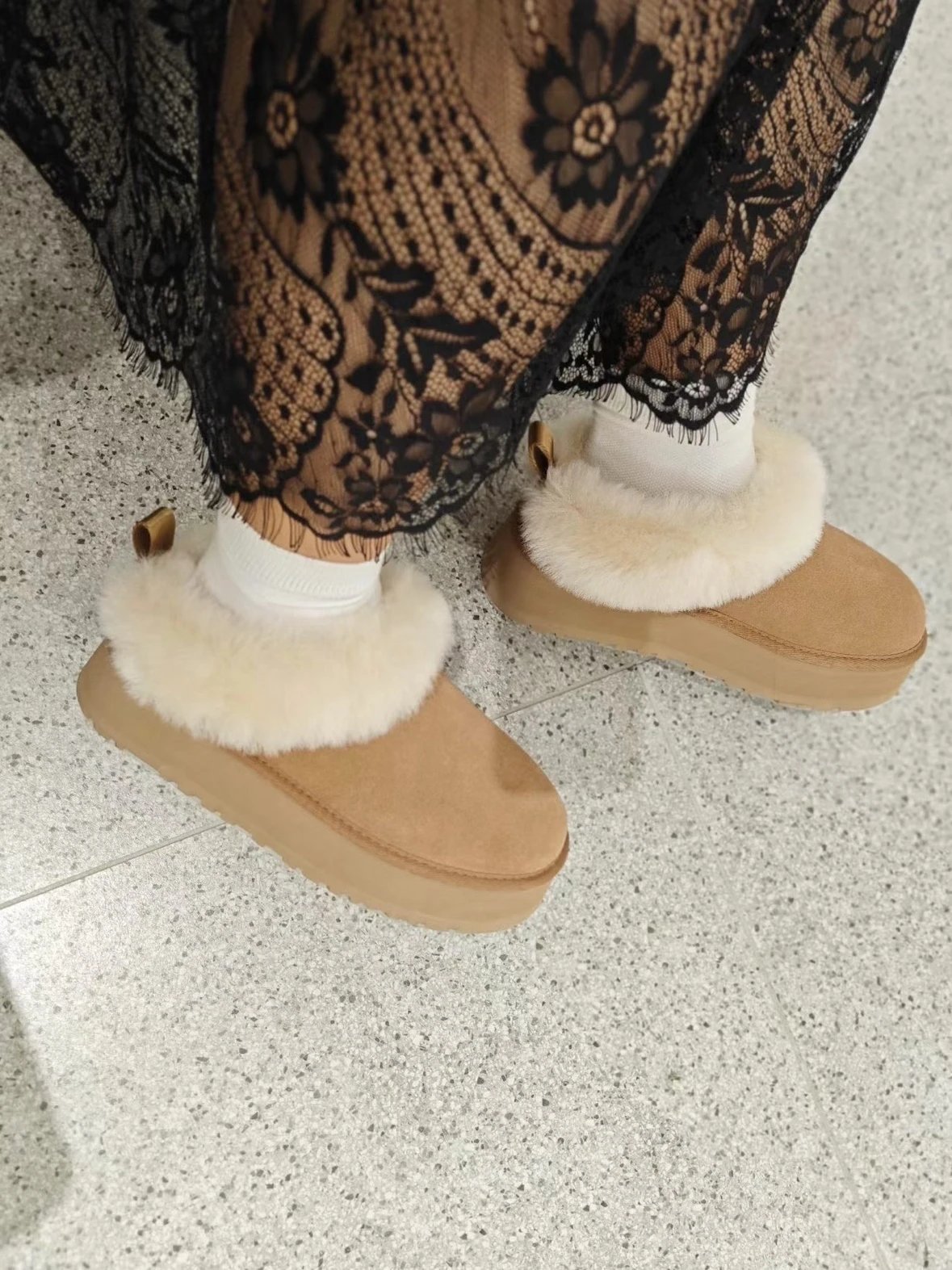 懒人必备 油叽叽系列 塔茨特便鞋 一脚蹬毛毛鞋 厚底拖鞋皮毛一体雪地靴