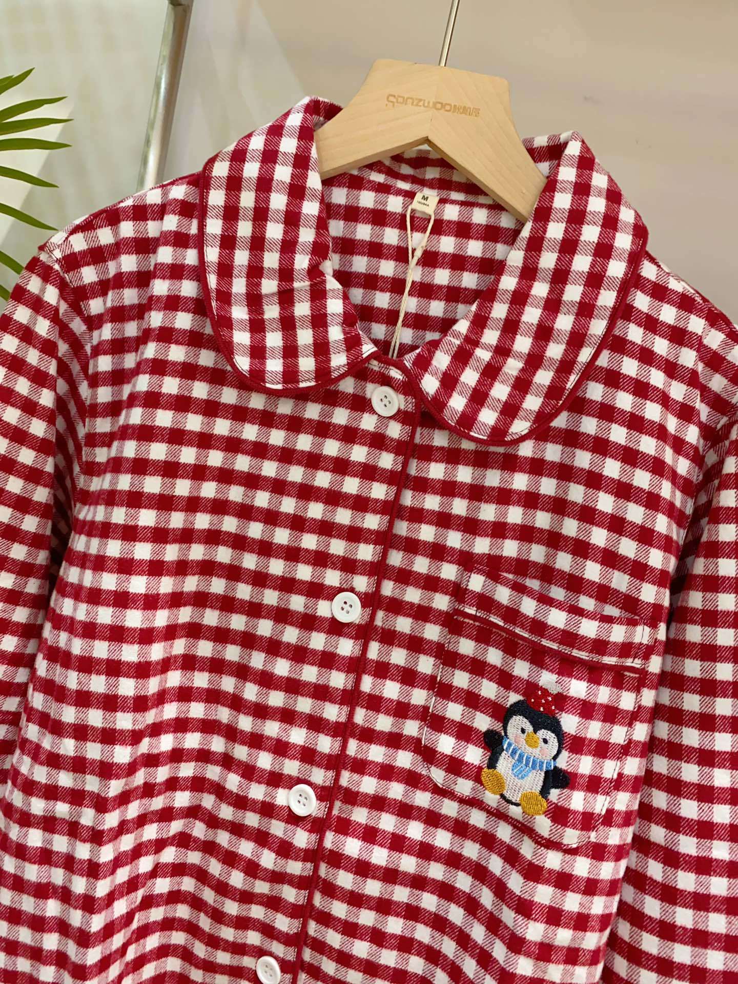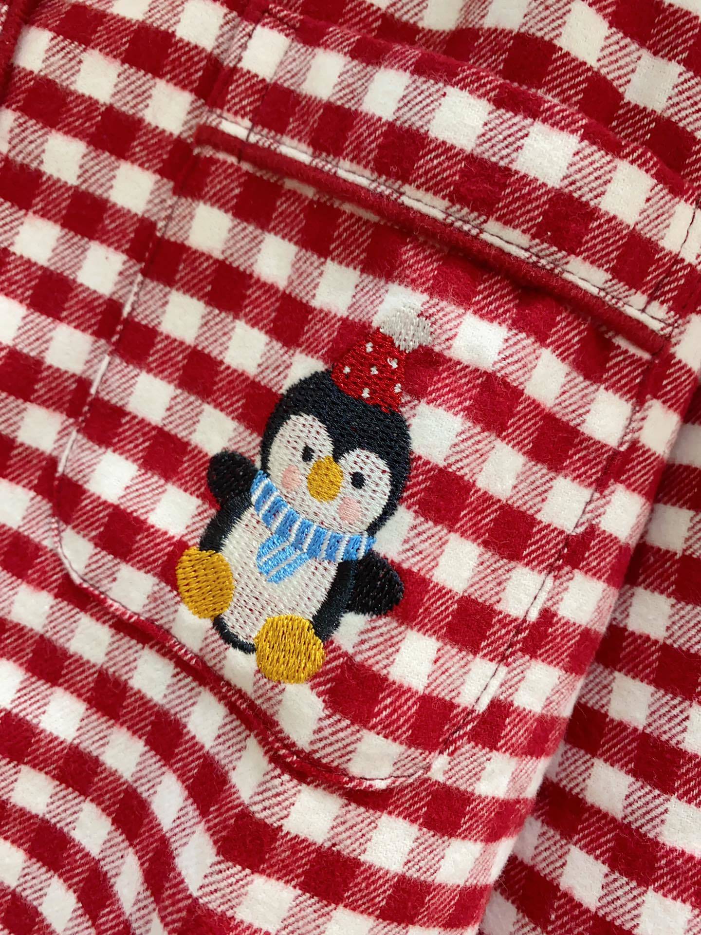 「磨毛亲肤保暖」 格纹+企鹅,可爱到想抱着睡 经典蓝白/红白格纹自带松弛感,口袋上的小企鹅刺绣软萌又治愈~