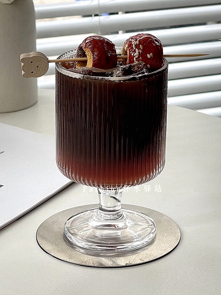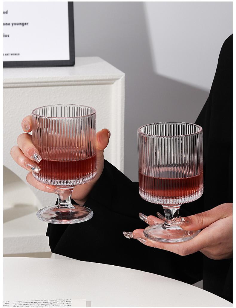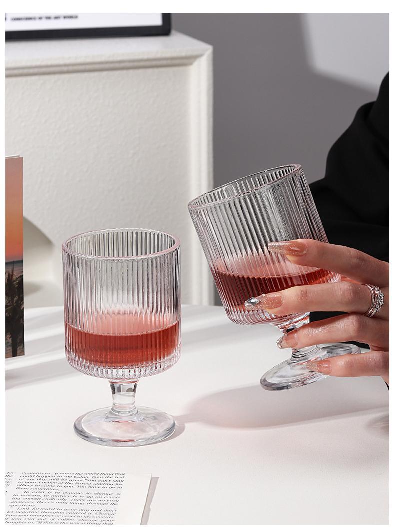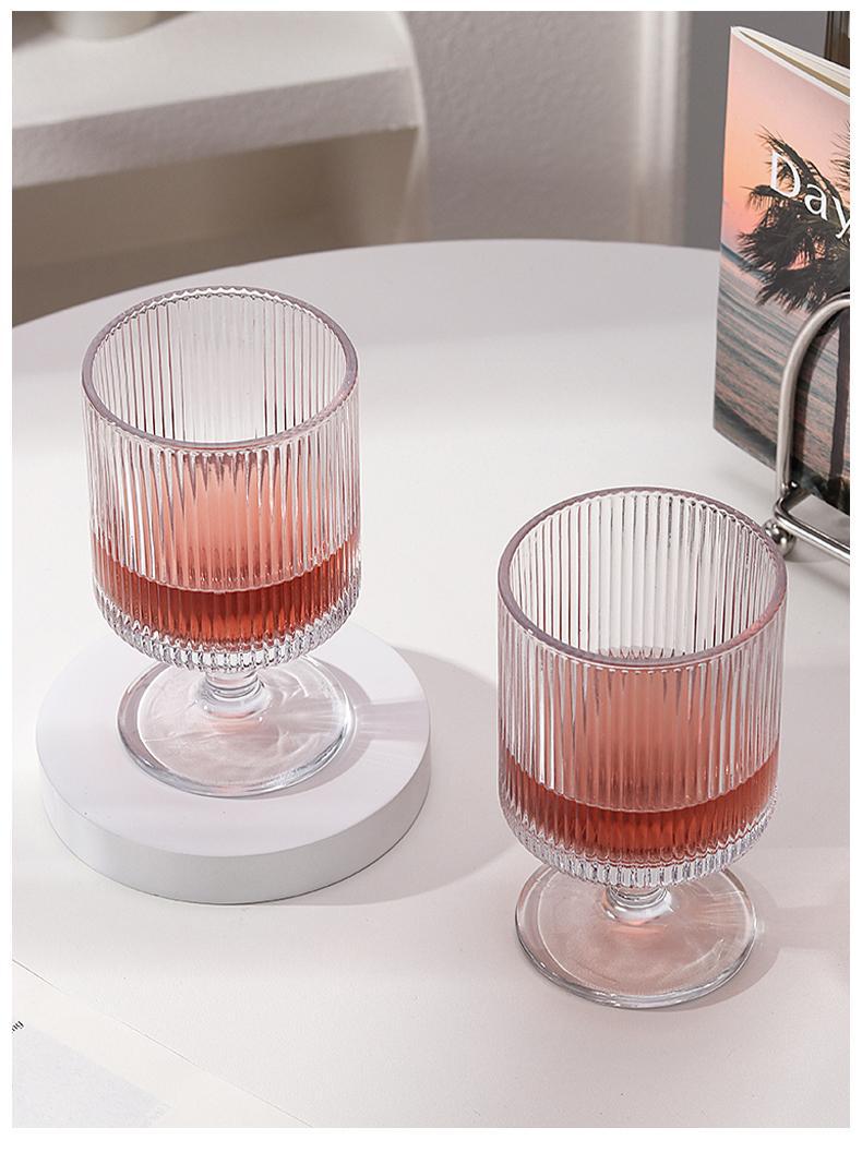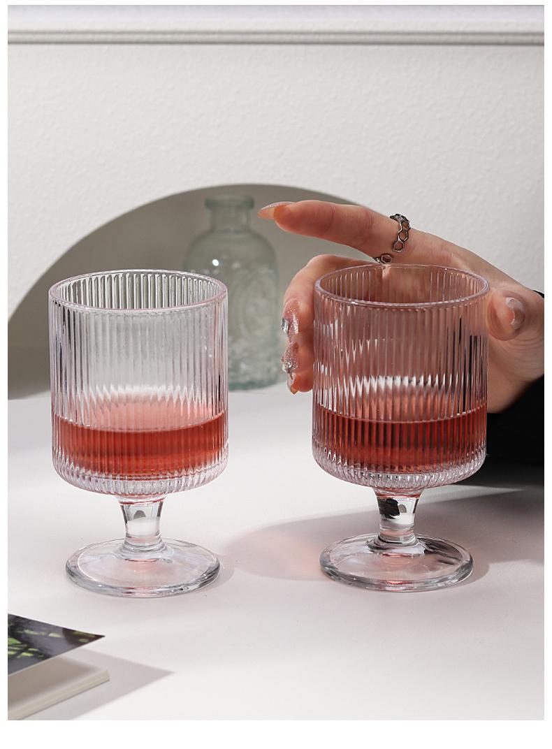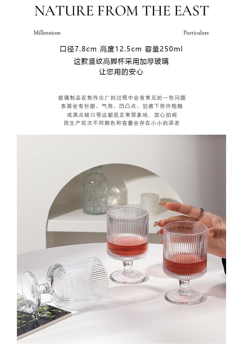 「19.9到手3支!ins欧式杯」高颜值加厚竖条纹玻璃杯 果汁杯甜品高脚杯红酒杯洋酒餐饮用具