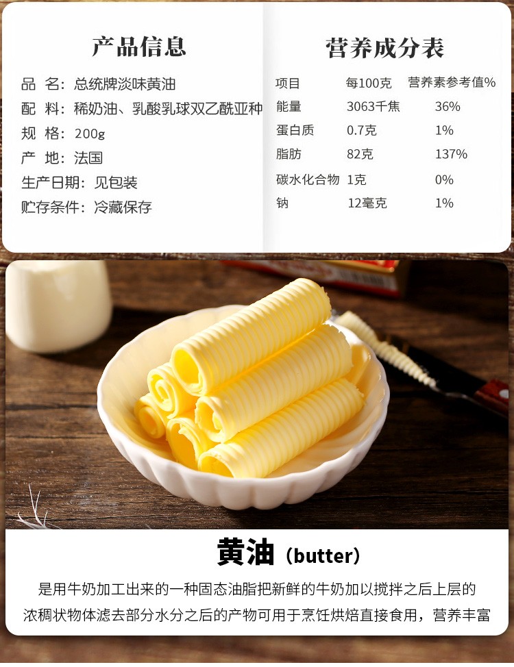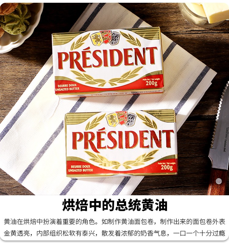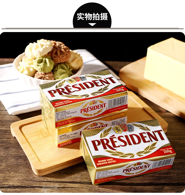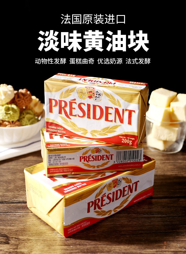 【200g】 总统黄油块 法国淡味发酵黄油块 动物性面包蛋糕饼干 烘焙原料
