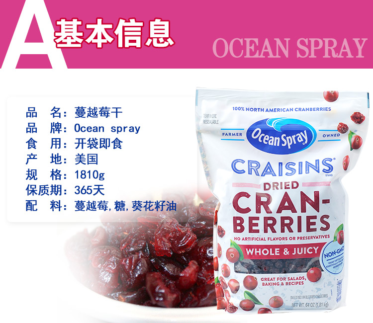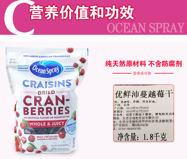 Ocean Spray优鲜沛蔓越莓干1.8kg #天津仓