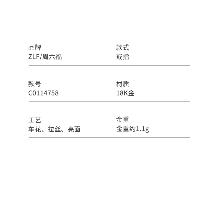 周六福黄18K金戒指女Au750指环手饰多彩金送女友礼物