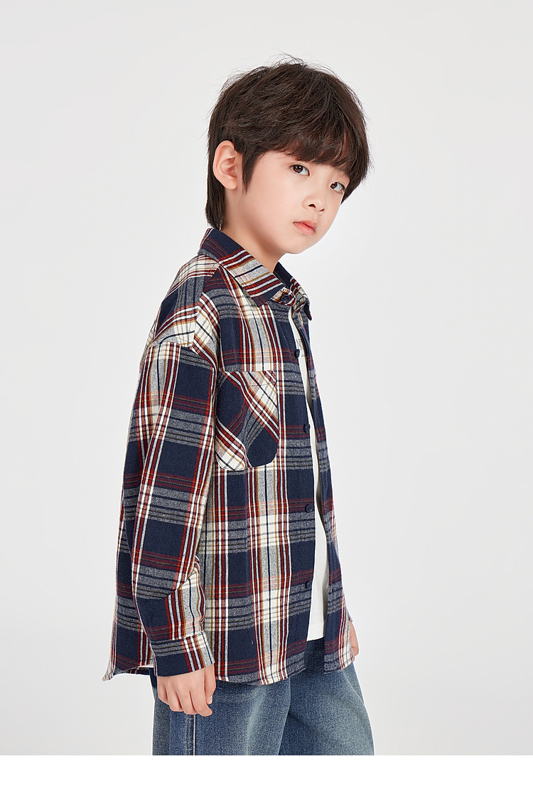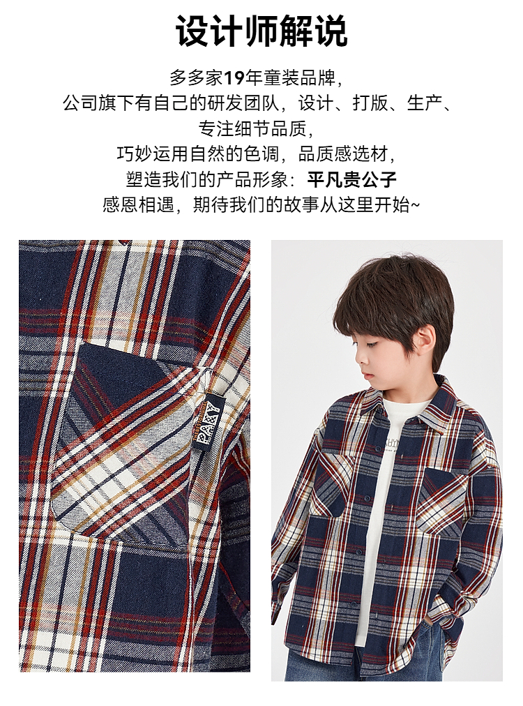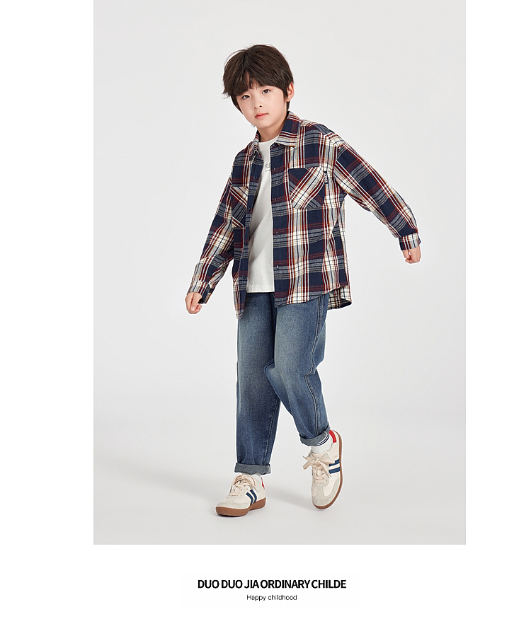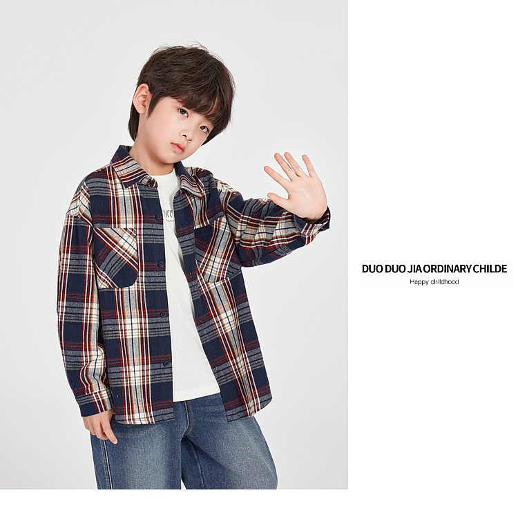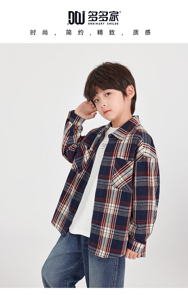 【团购价69.9】多多家男童衬衫纯棉2025新款春秋款儿童中大童外套洋气格纹衬衣潮10267