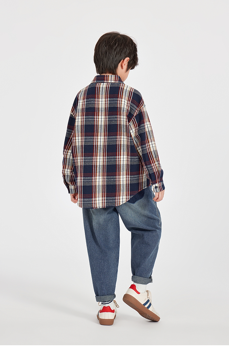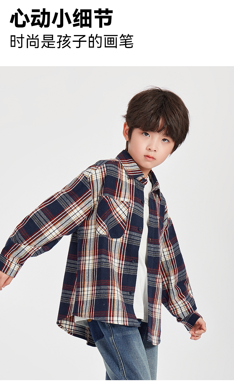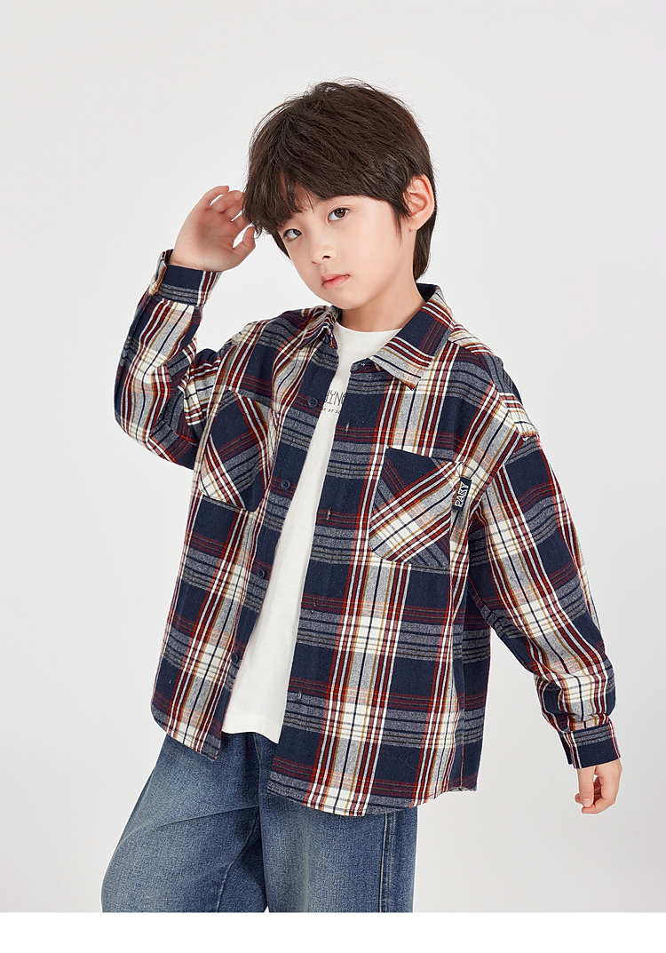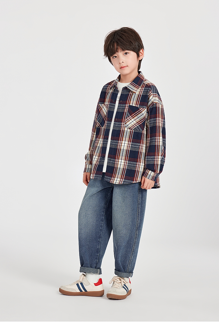 【团购价69.9】多多家男童衬衫纯棉2025新款春秋款儿童中大童外套洋气格纹衬衣潮10267