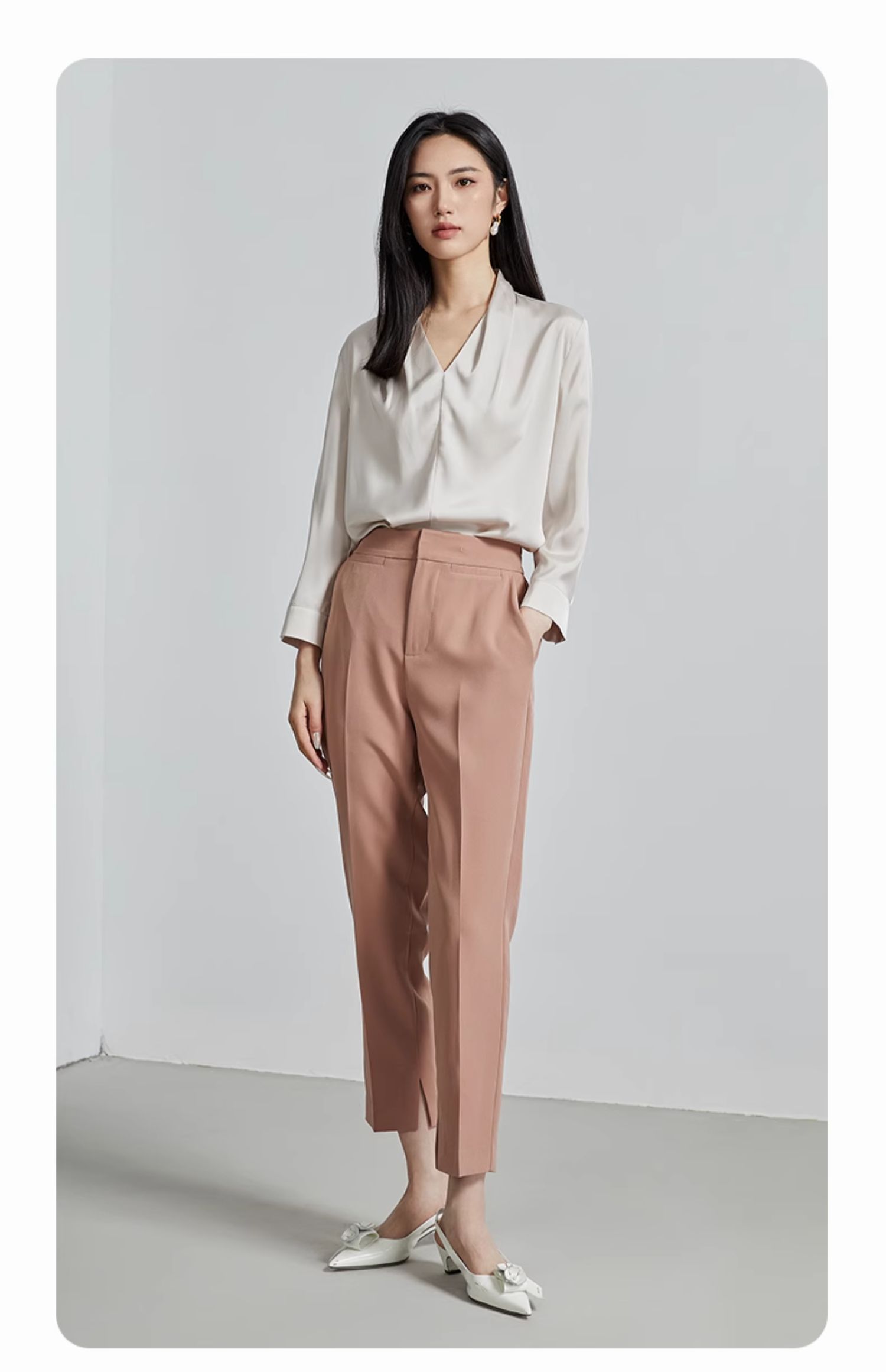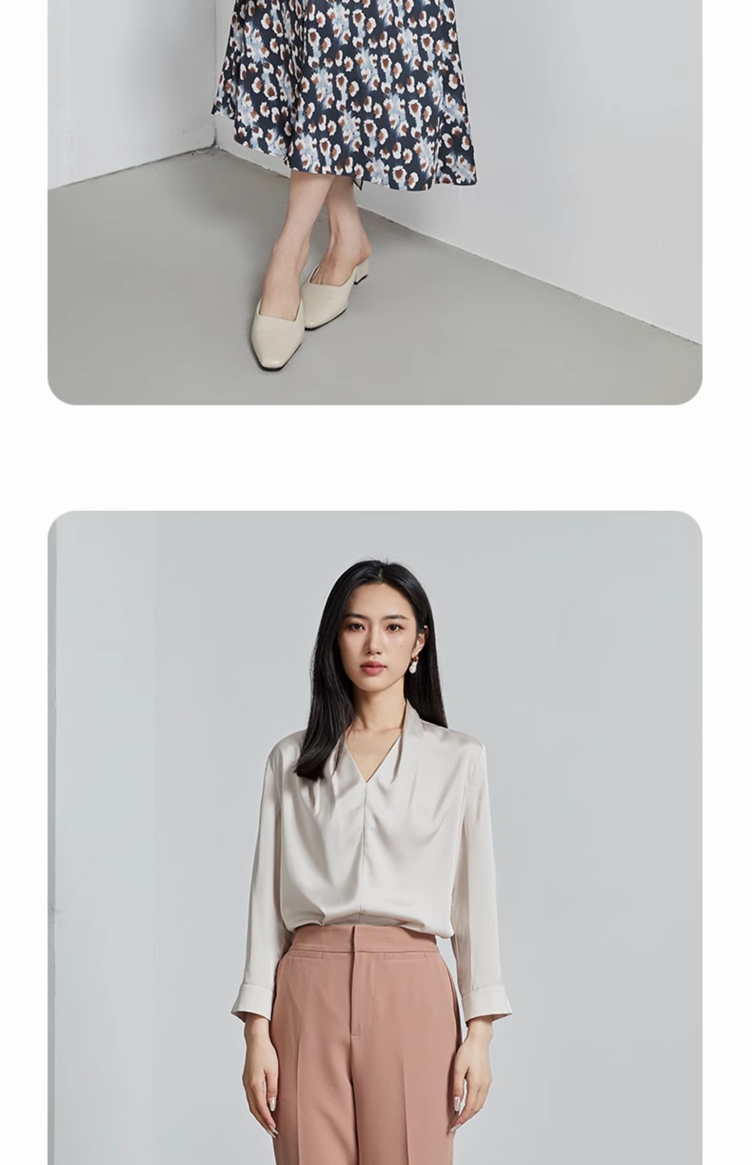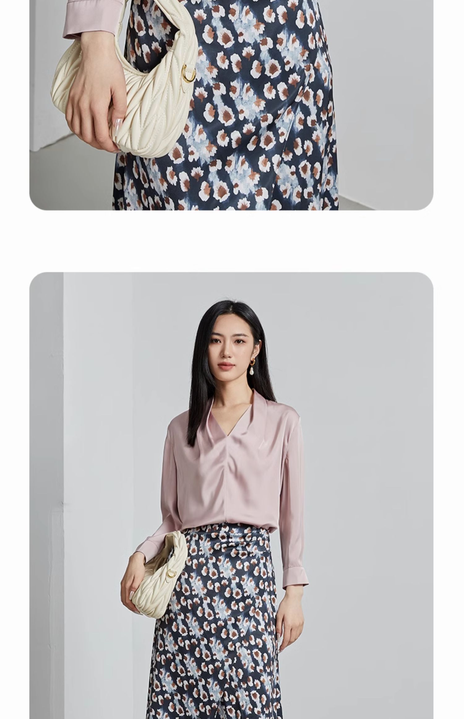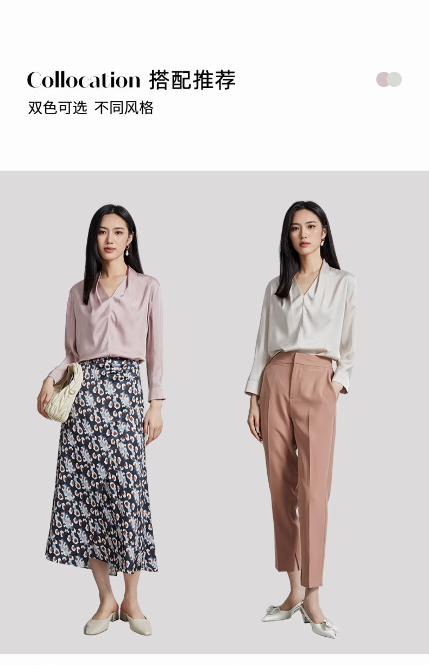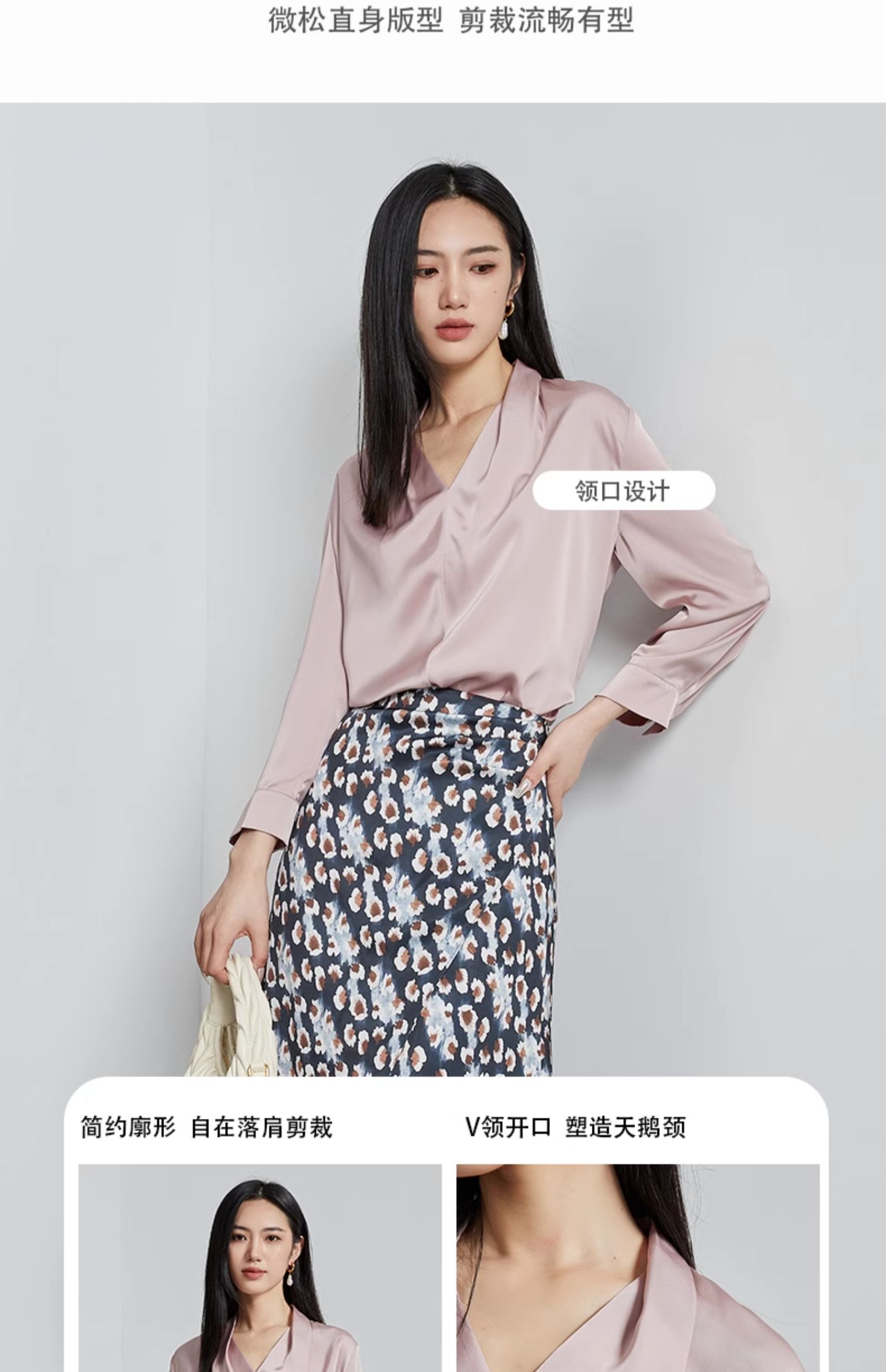oldcolour秋季新款轻熟风职场V领长袖衬衫打底衬衫女P320105A1