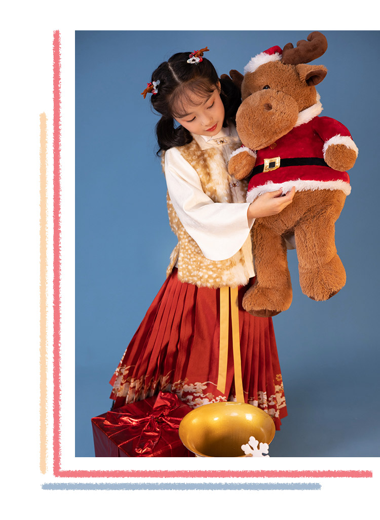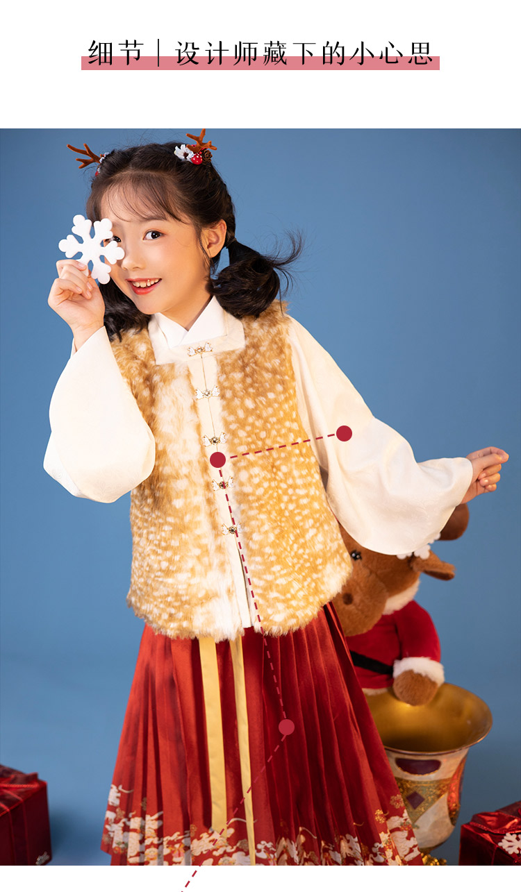 重回汉唐鹿绒绒原创明制儿童汉服女童改良短比甲秋冬季