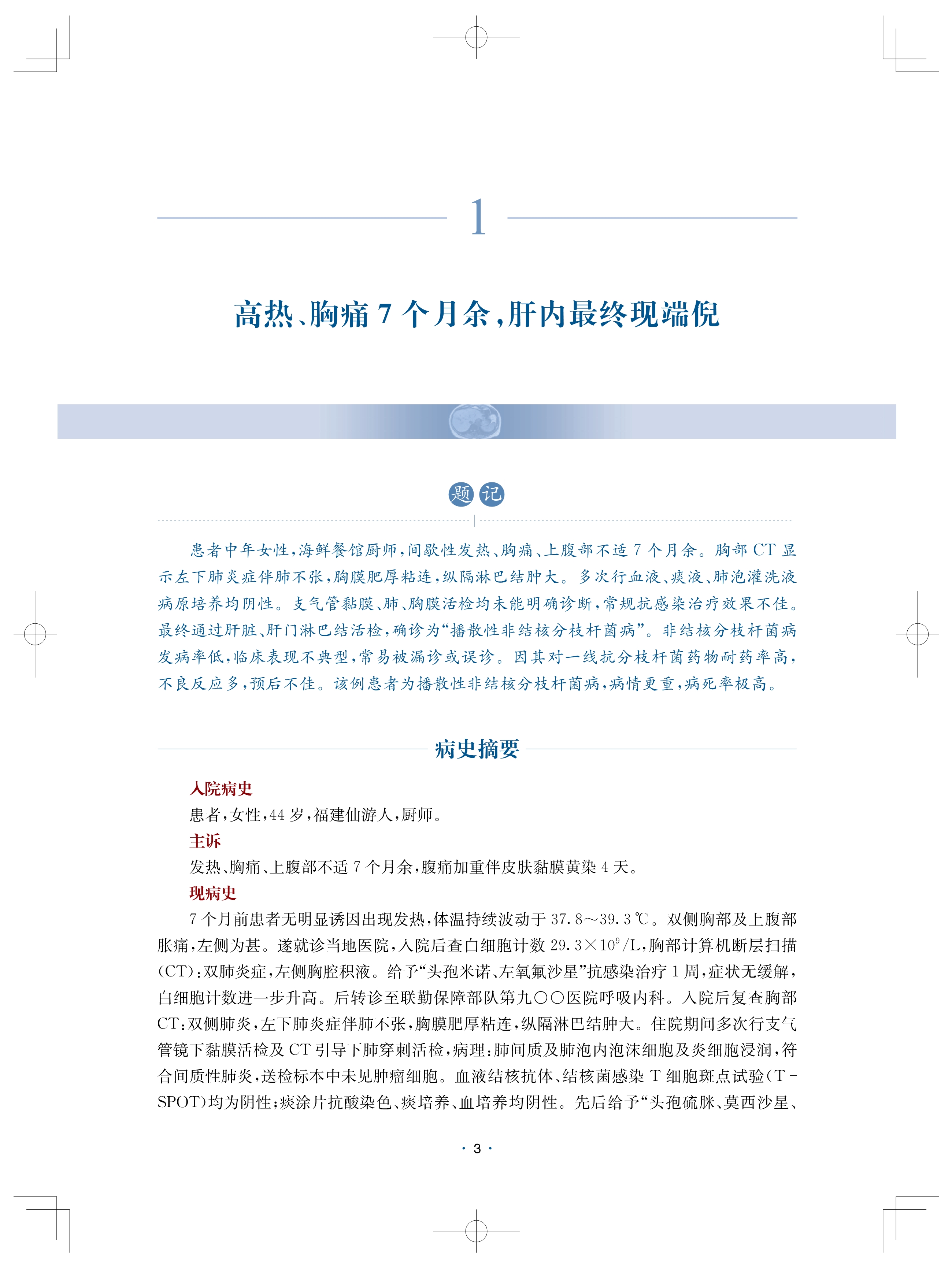 本书收集了2019—2021年海疑难肝病俱乐部菁英论坛的29个精彩案例,由海疑难肝病俱乐部专家委员会评议,并按照感染、自身免疫、遗传代谢、肿瘤、血管等病因进行分类。书中收录了许多临床非常罕见的疾病,如肝移植后新发IgG4相关自身免疫性肝炎、多种酰基辅酶A脱氢酶缺乏症、巴尔通体肝脓肿、肝脏黑色素瘤、肝淀粉样变性、肝豆状核变性相关肝衰竭、POEMS综合征等。通过编者细致的病史整理,展现了诊治过程中柳暗花明、峰回路转的曲折经历,也体现了严谨的临床分析推理和先进的诊疗技术手段。
