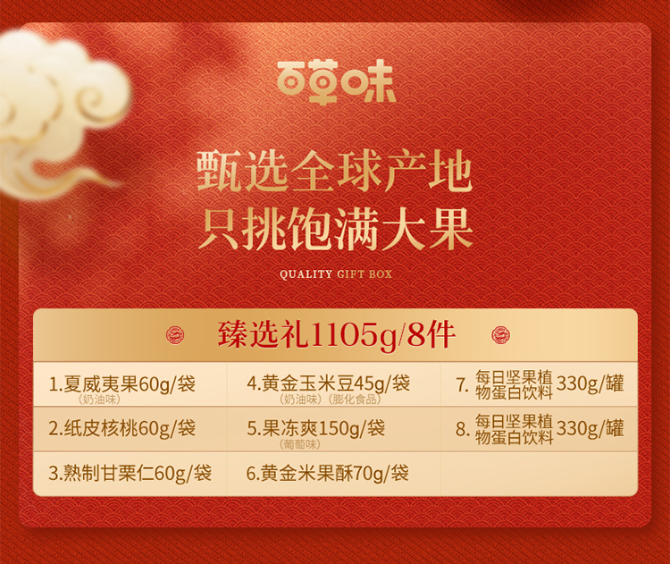 【百草味】坚果零食礼盒A9-1105g(坚果有礼-臻选礼)zbsc