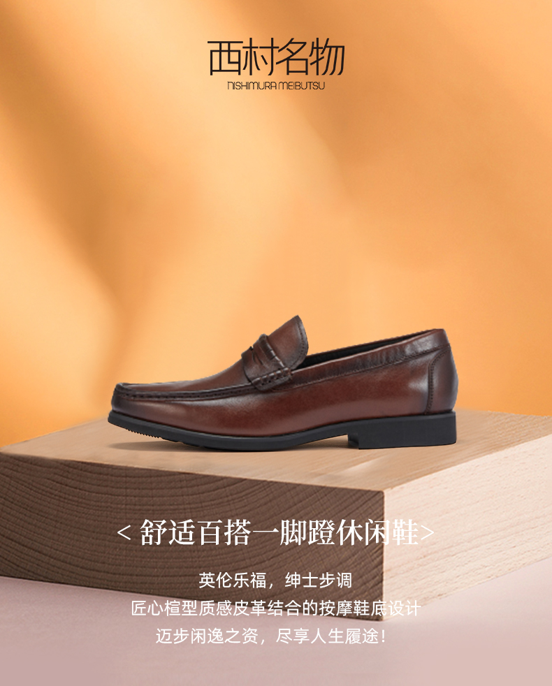西村名物2023秋季新品舒适百搭一脚蹬休闲鞋真皮透气英伦风34601