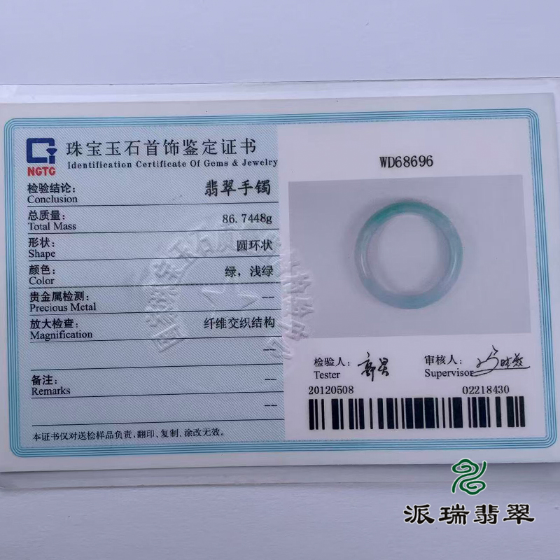 派瑞翡翠 翡翠手镯 糯种 浅绿