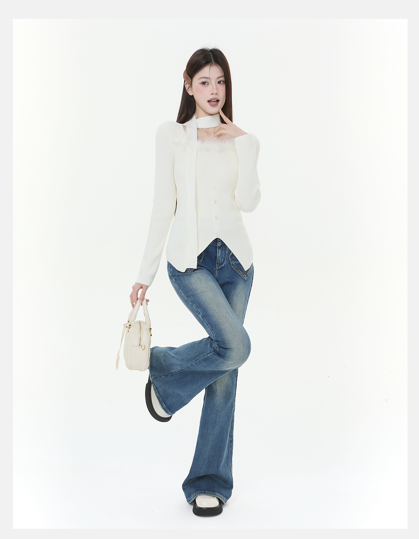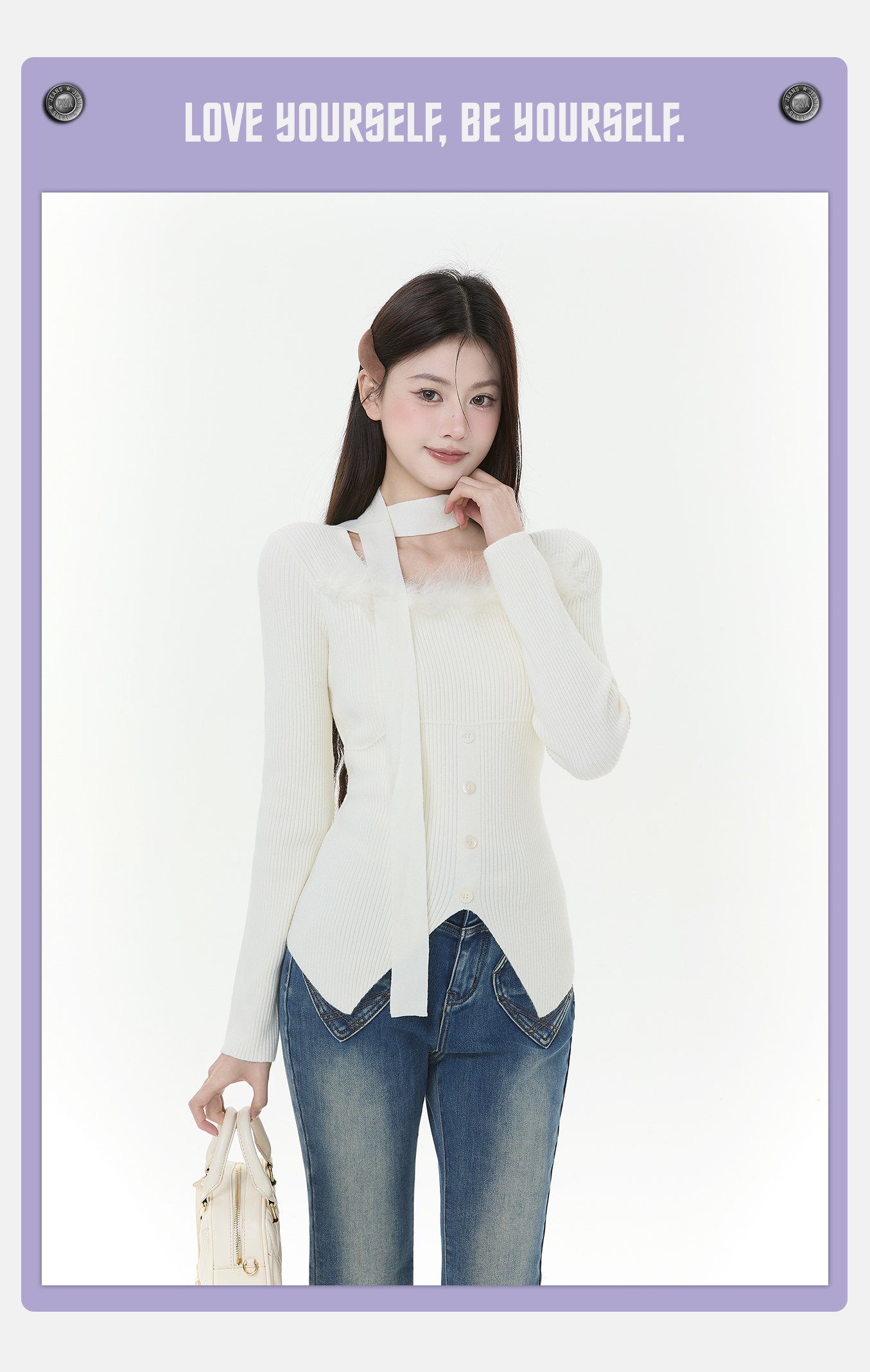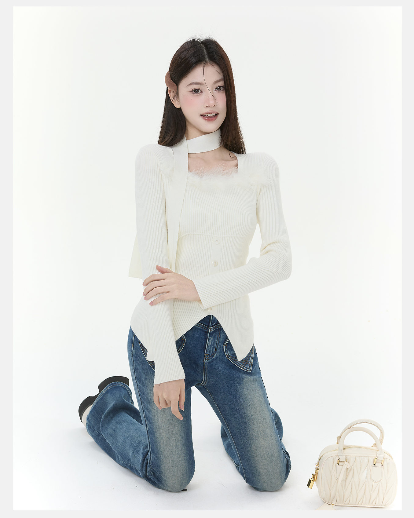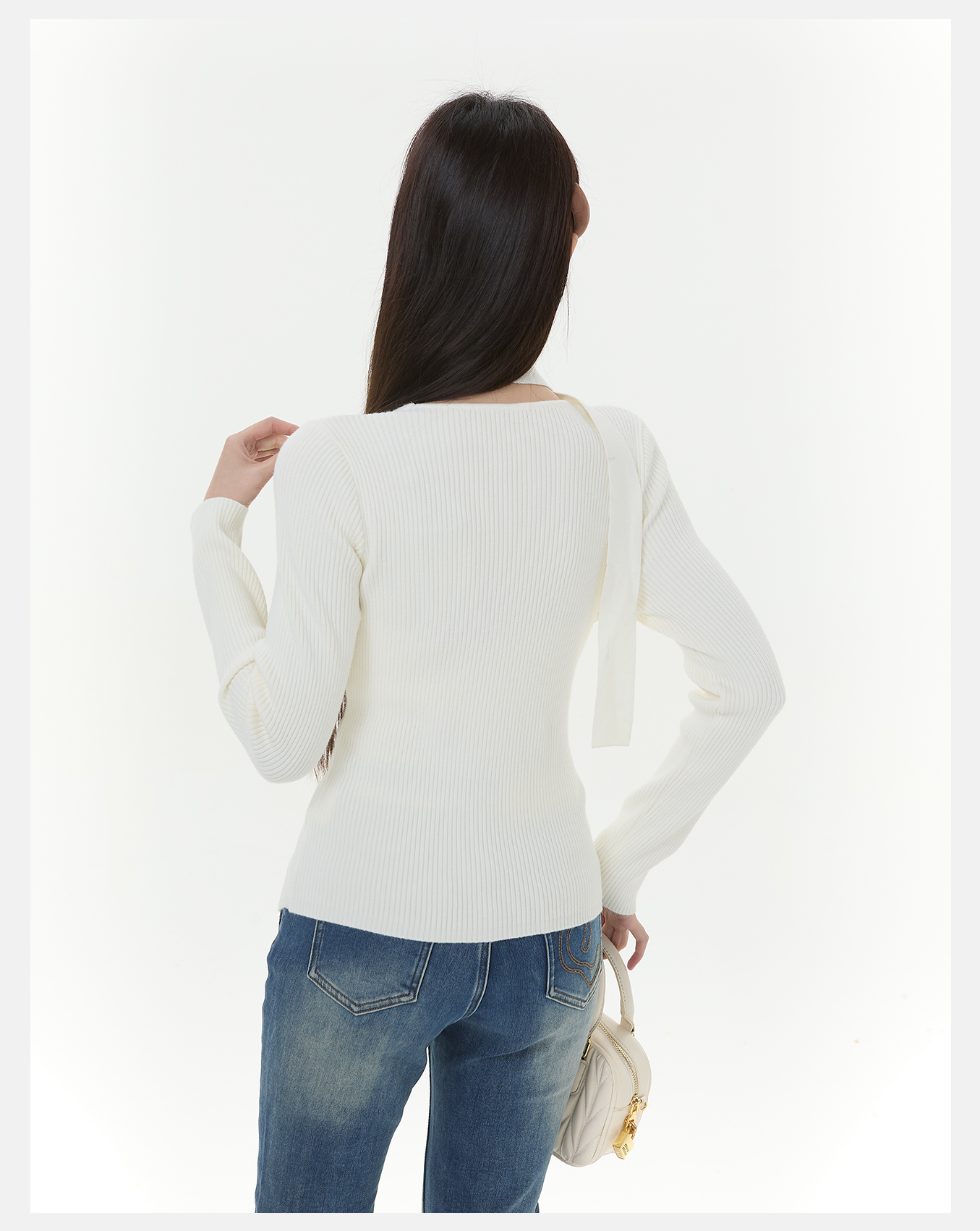 P&X设计师女装2025冬季长袖方领修身针织短款毛衣825418198 杏色