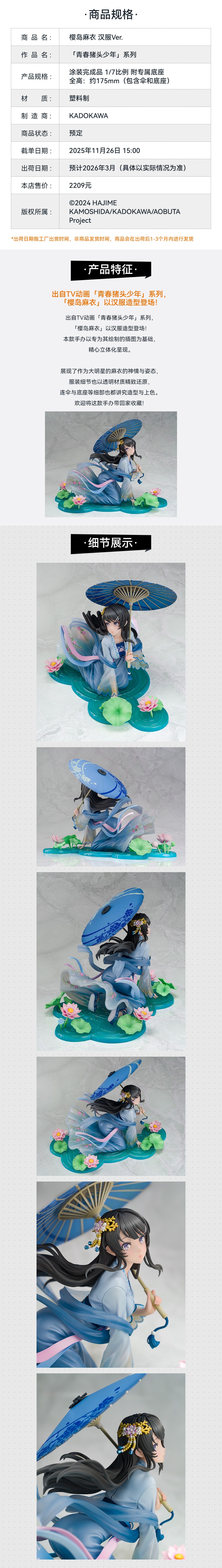 【GSC现货】1/7标准比例 樱岛麻衣 汉服Ver. 手办模玩 「青春猪头少年」系列
