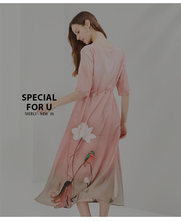 LB8D9斯尔丽瑟俪2021年夏季上新改良版中式定位花长裙女士连衣裙