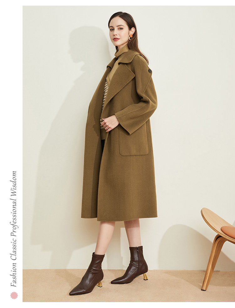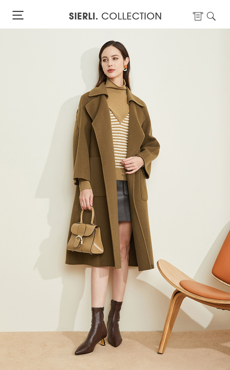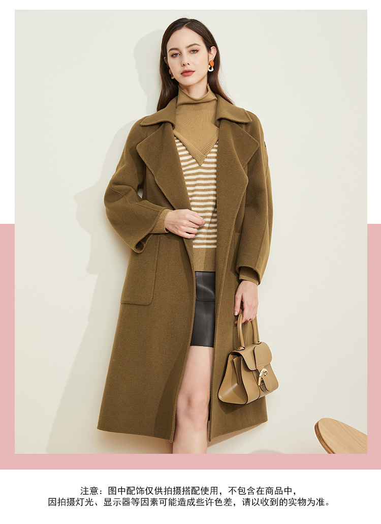 LH9F9斯尔丽瑟俪秋冬优雅气质大翻领双面呢大衣长款女2021新款