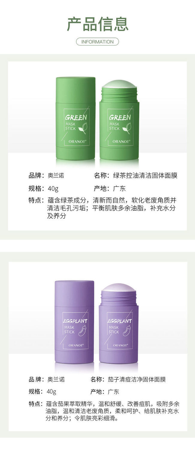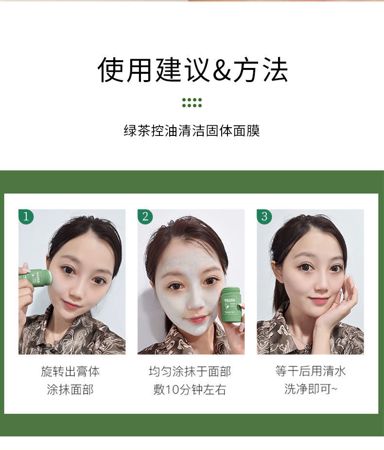 【ㄧ懒人固体面膜收缩毛孔保湿】抖音爆款绿茶茄子控油固体去黑头粉刺学生女 清洁面膜收缩毛孔保湿涂抹式泥膜