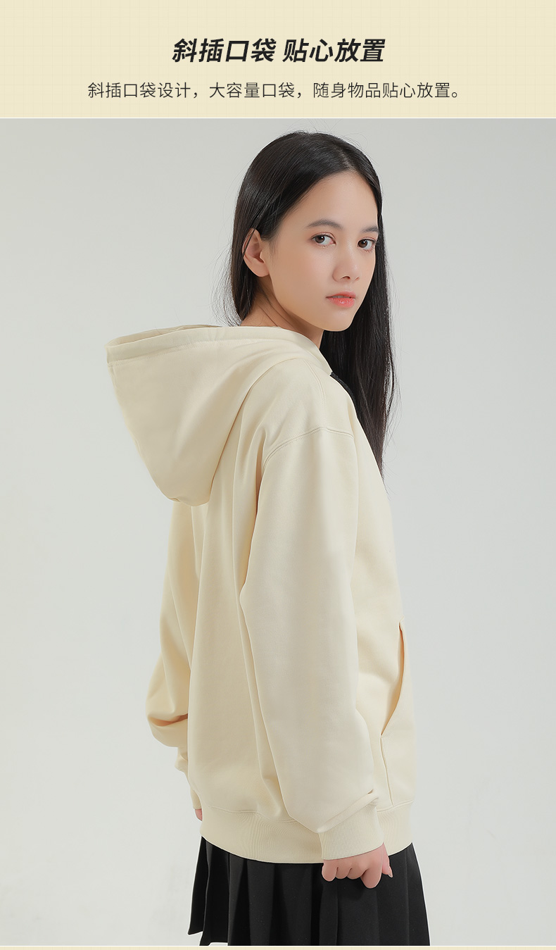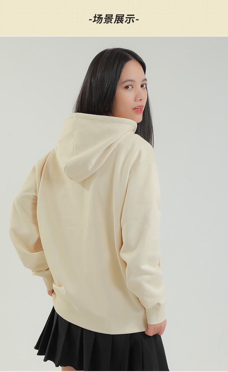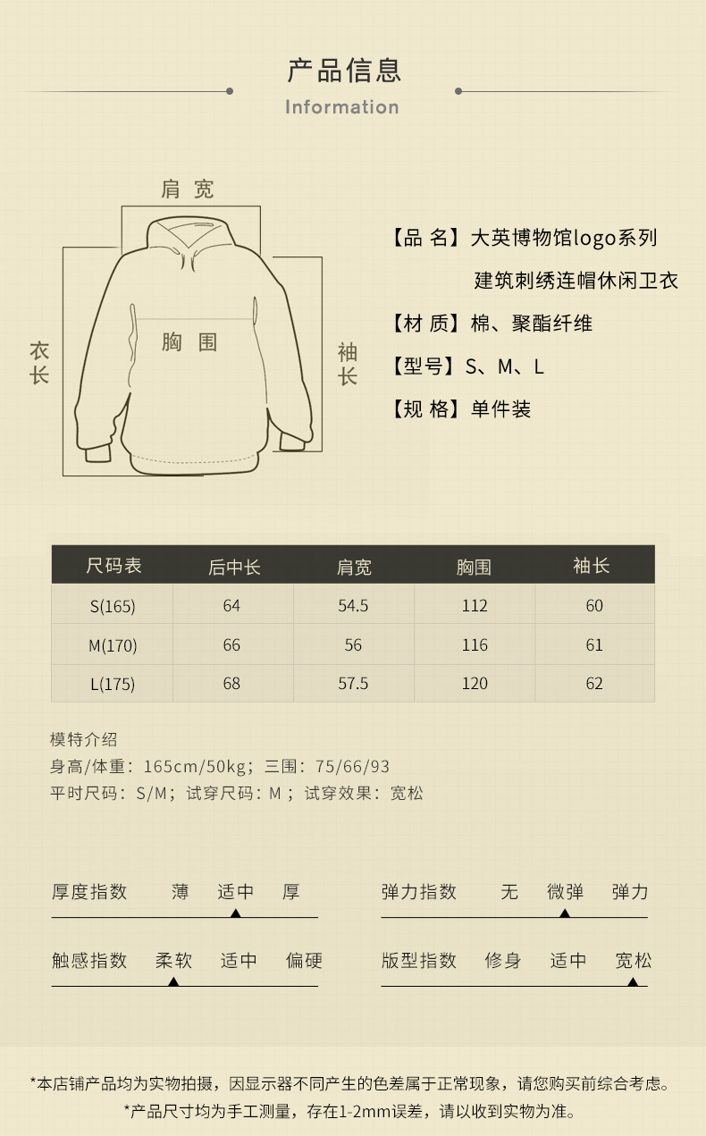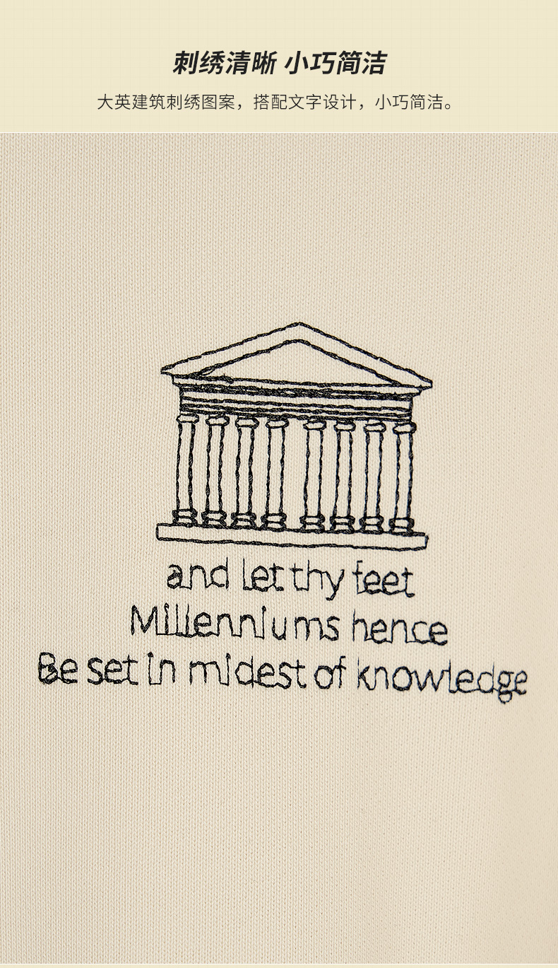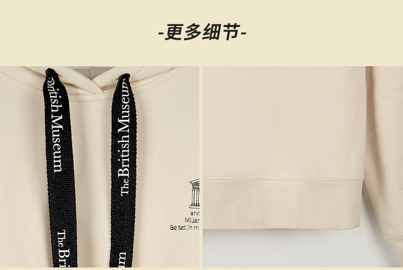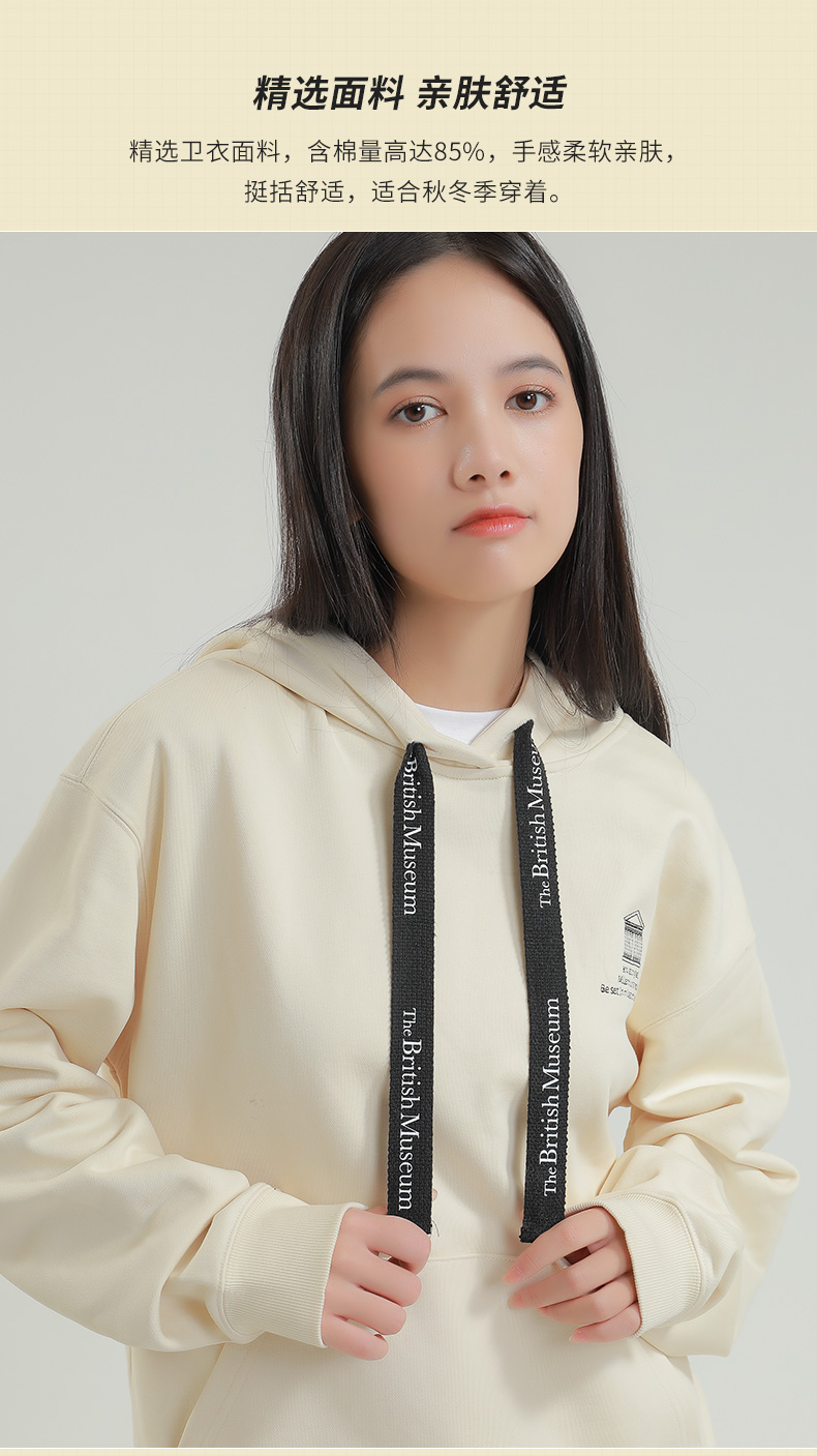 大英博物馆logo系列建筑刺绣男女同款米色连帽街头潮流休闲卫衣