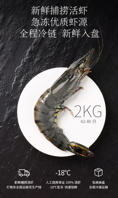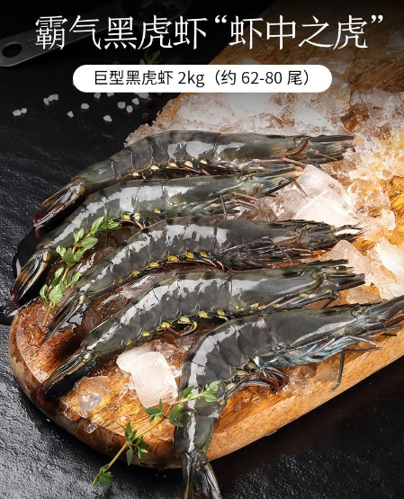 活冻黑虎虾(大号)2kg 62-80只 海鲜水产 过节送礼