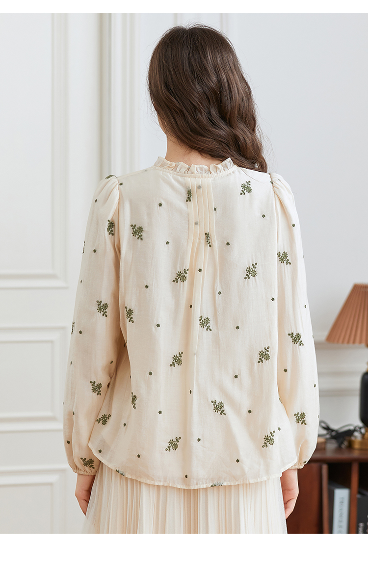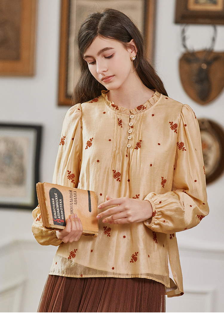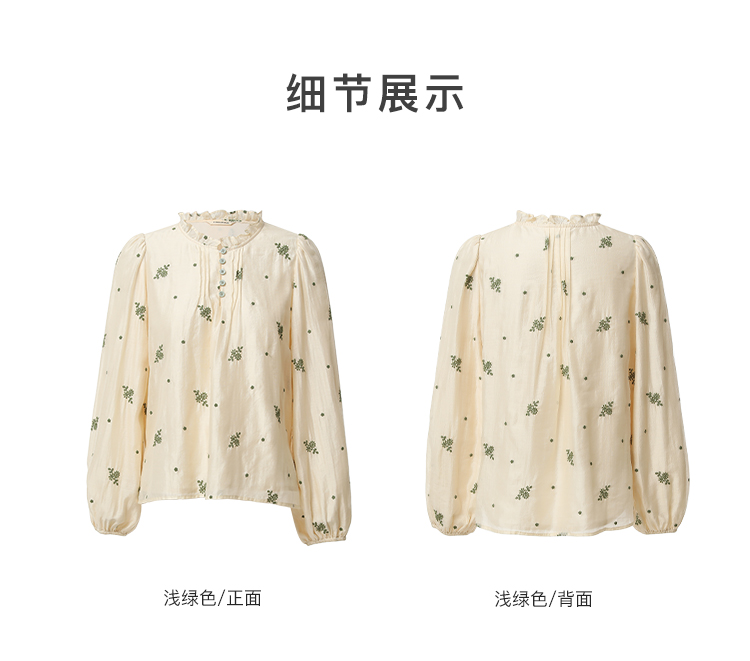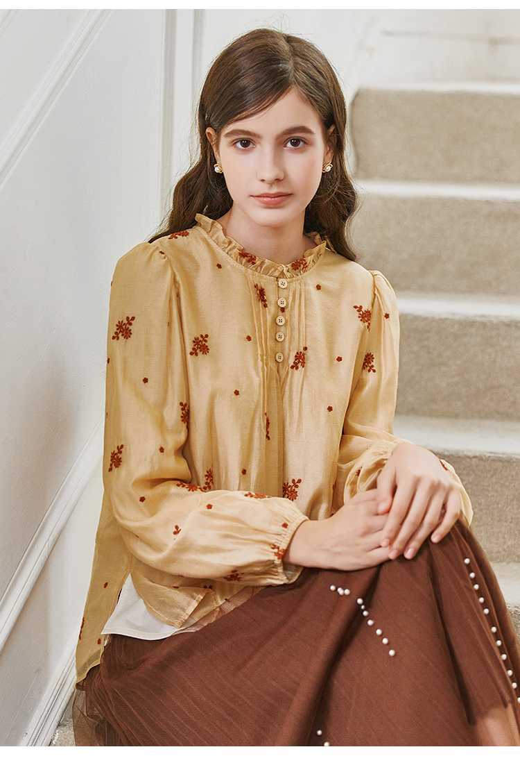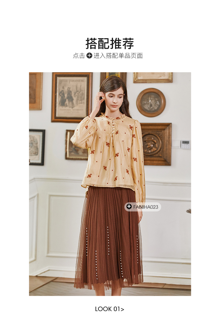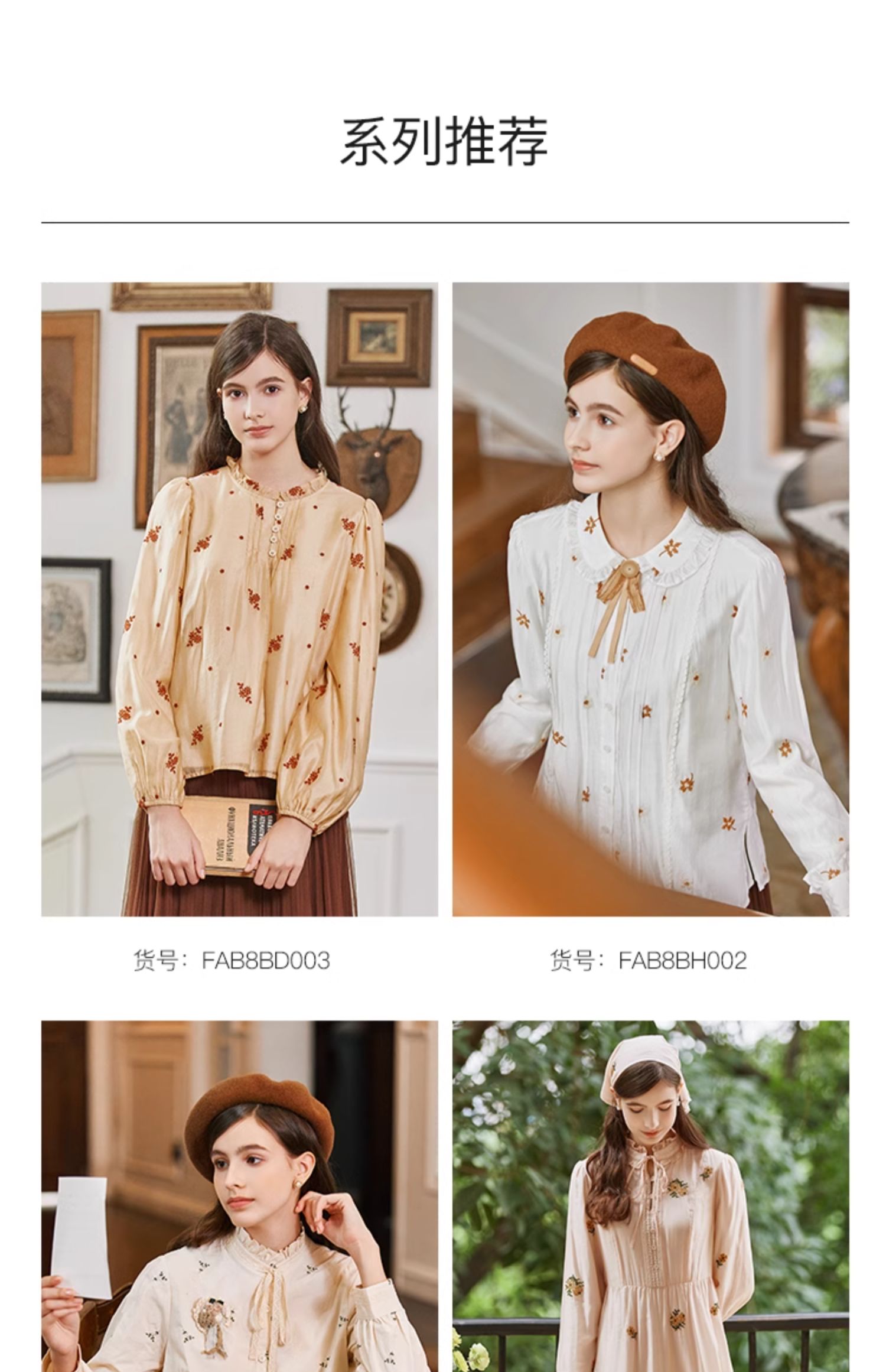 Famecoco范可儿文艺绣花莱赛尔衬衫女秋冬FAB8BD003