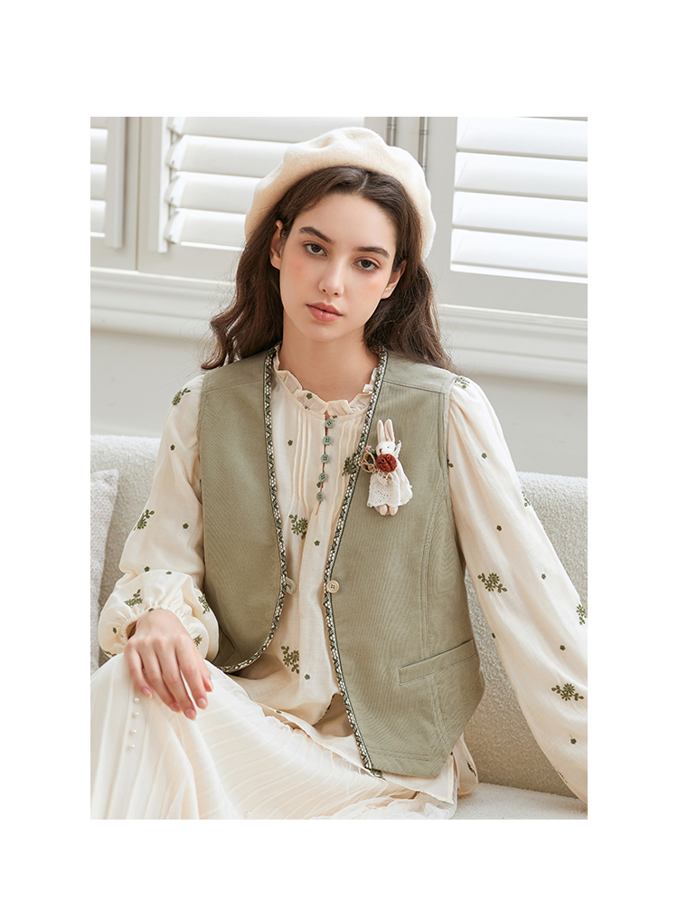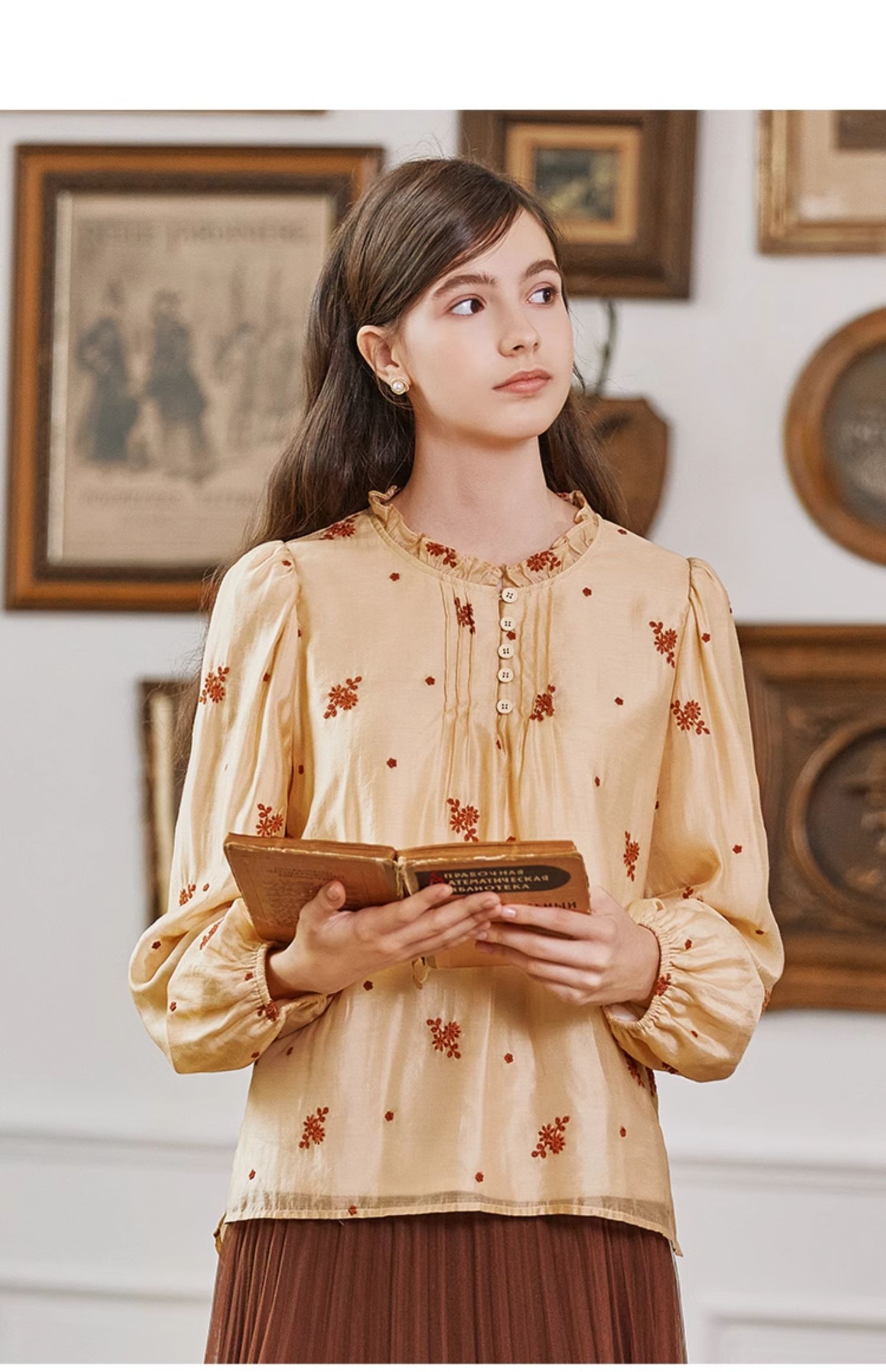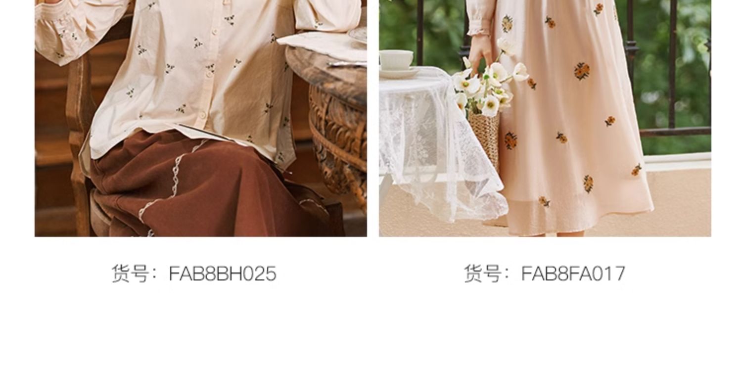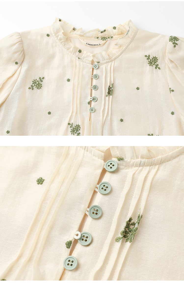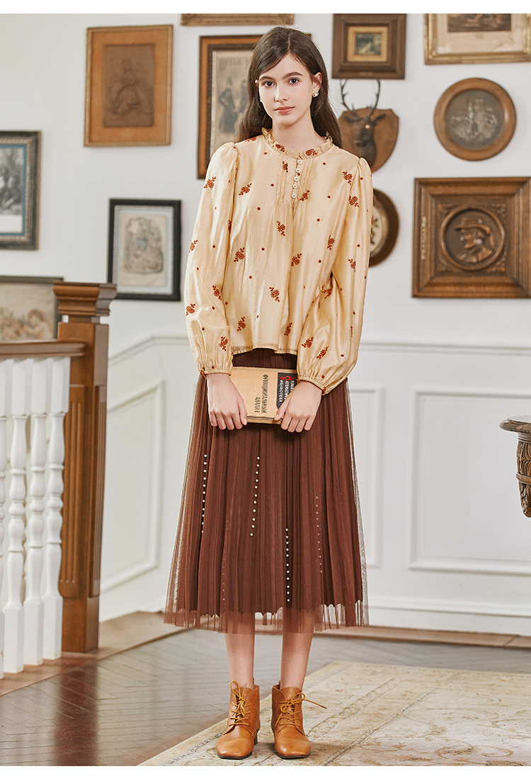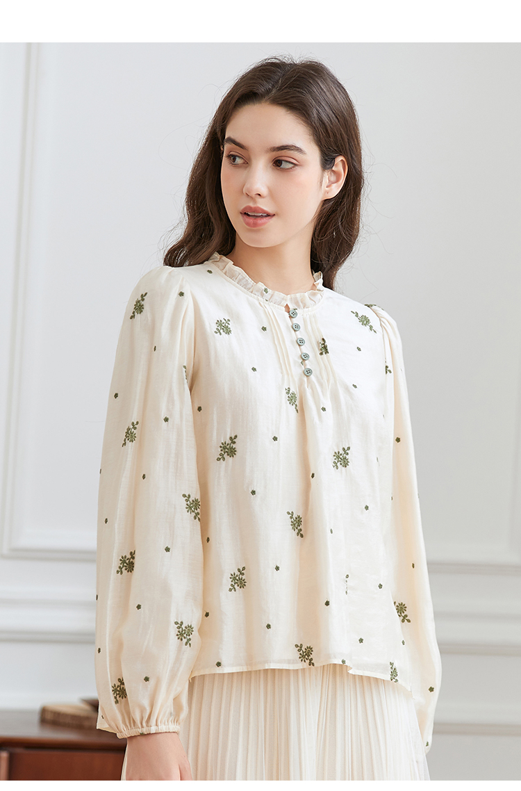 Famecoco范可儿文艺绣花莱赛尔衬衫女秋冬FAB8BD003