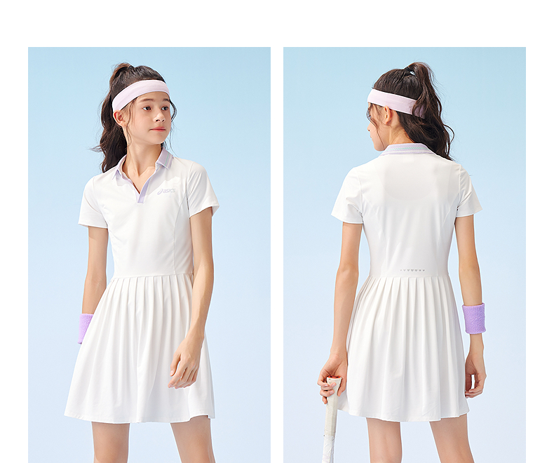 ASICS/亚瑟士儿童25年夏新款女童吸湿速干凉感收腰百褶运动连衣裙