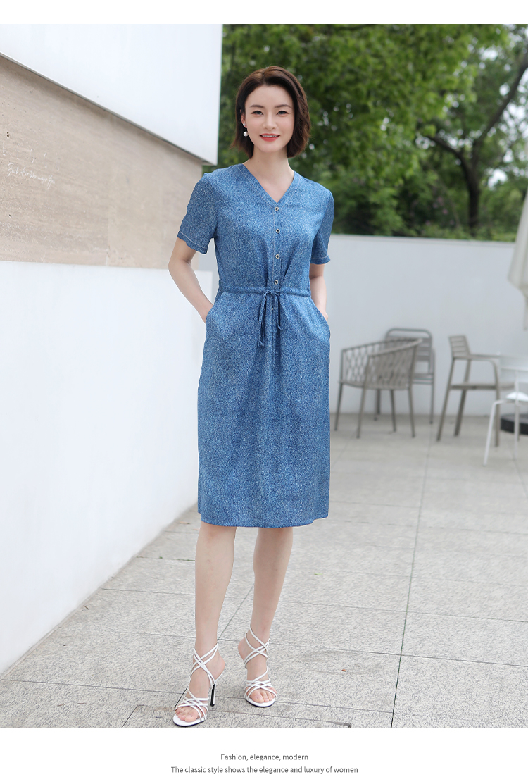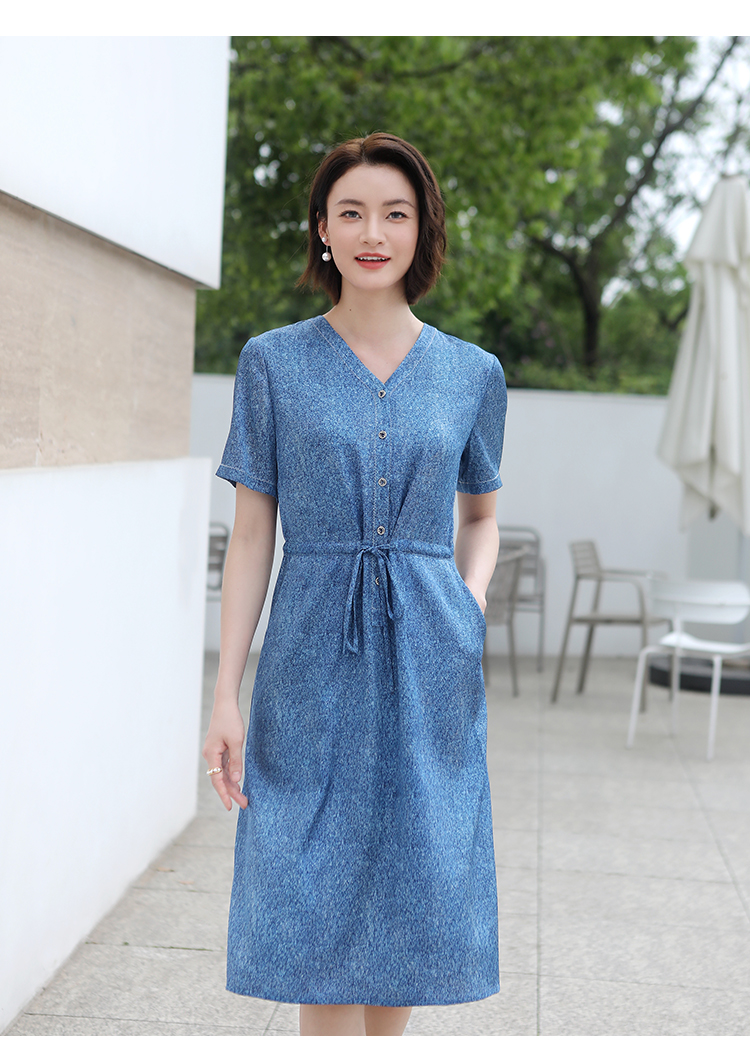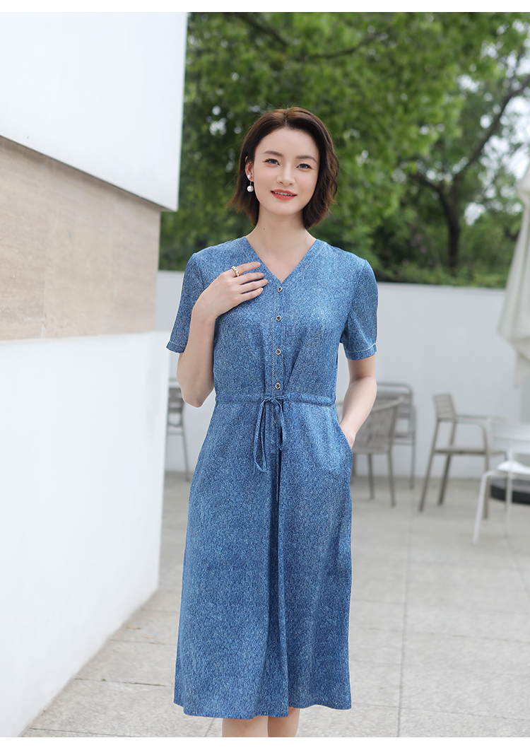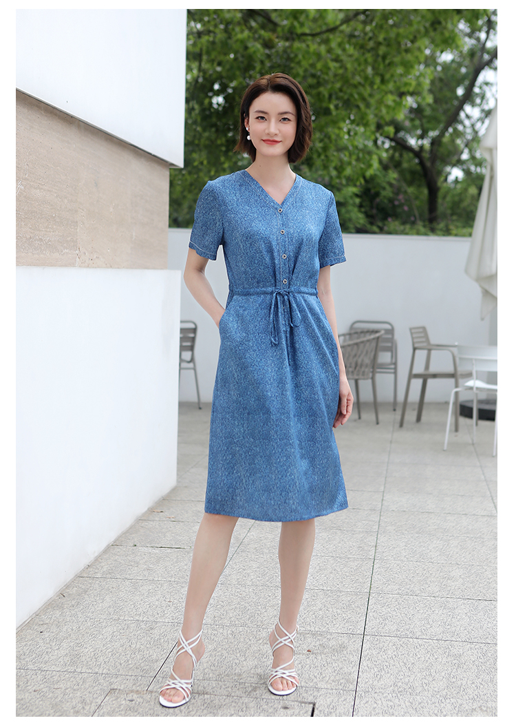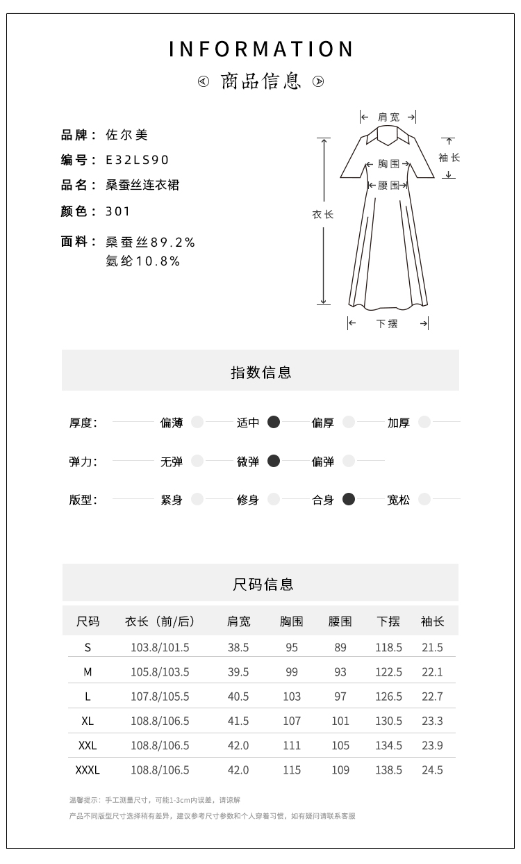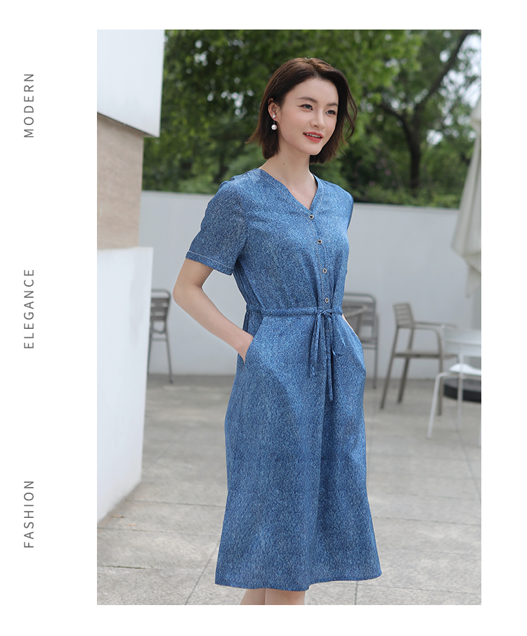 佐尔美夏季新款 时尚牛仔配色桑蚕丝连衣裙女E32LS90