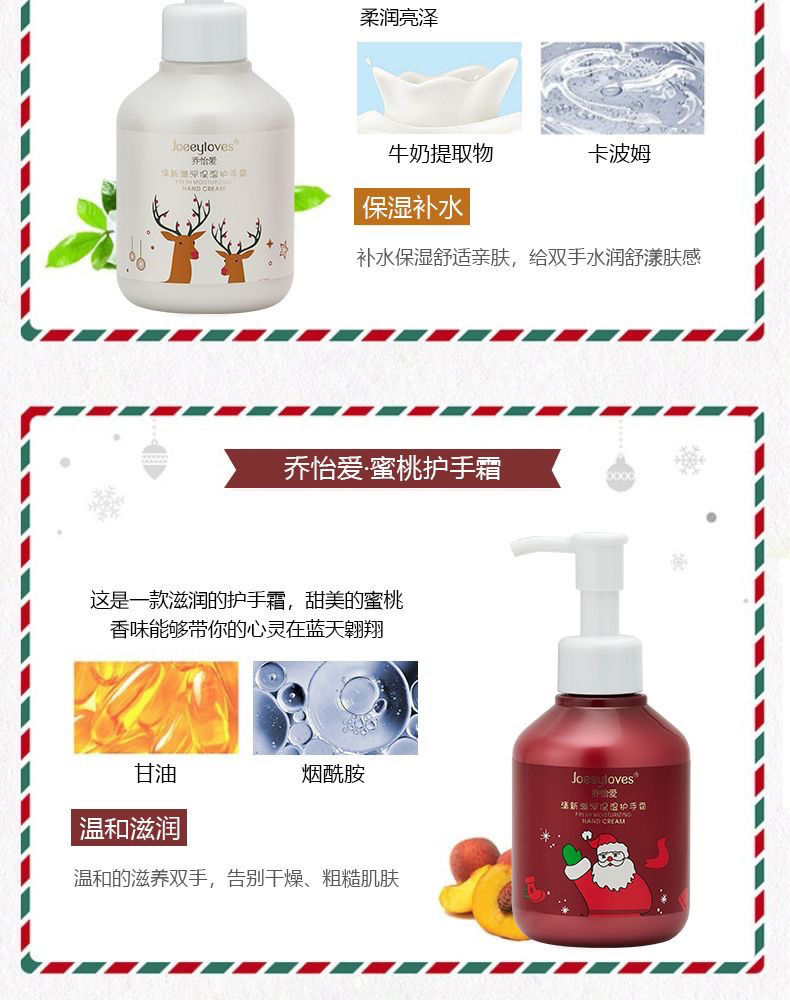 【爆款超低价预售 急单慎拍】乔怡爱圣诞节护手霜烟酰胺秋冬蜜桃牛奶按压保湿滋润补水清香持久
