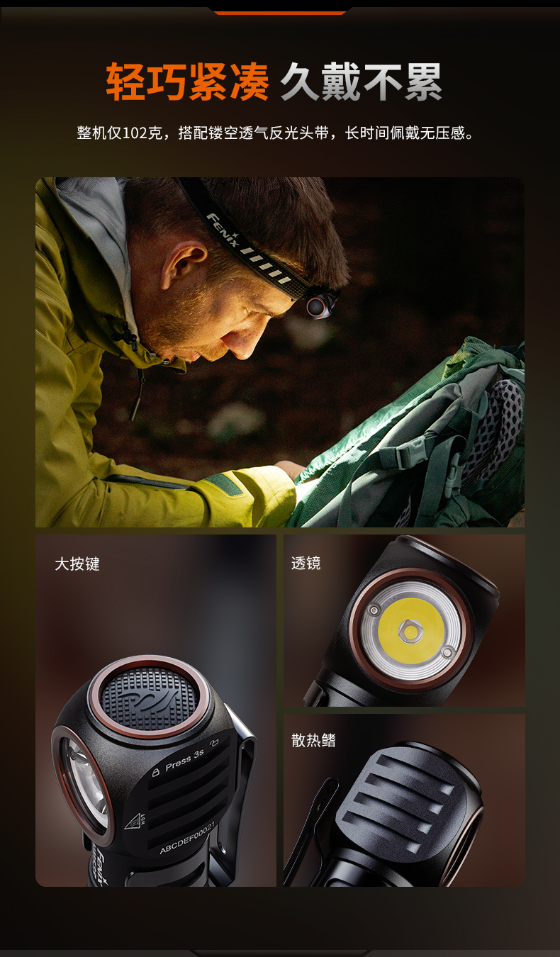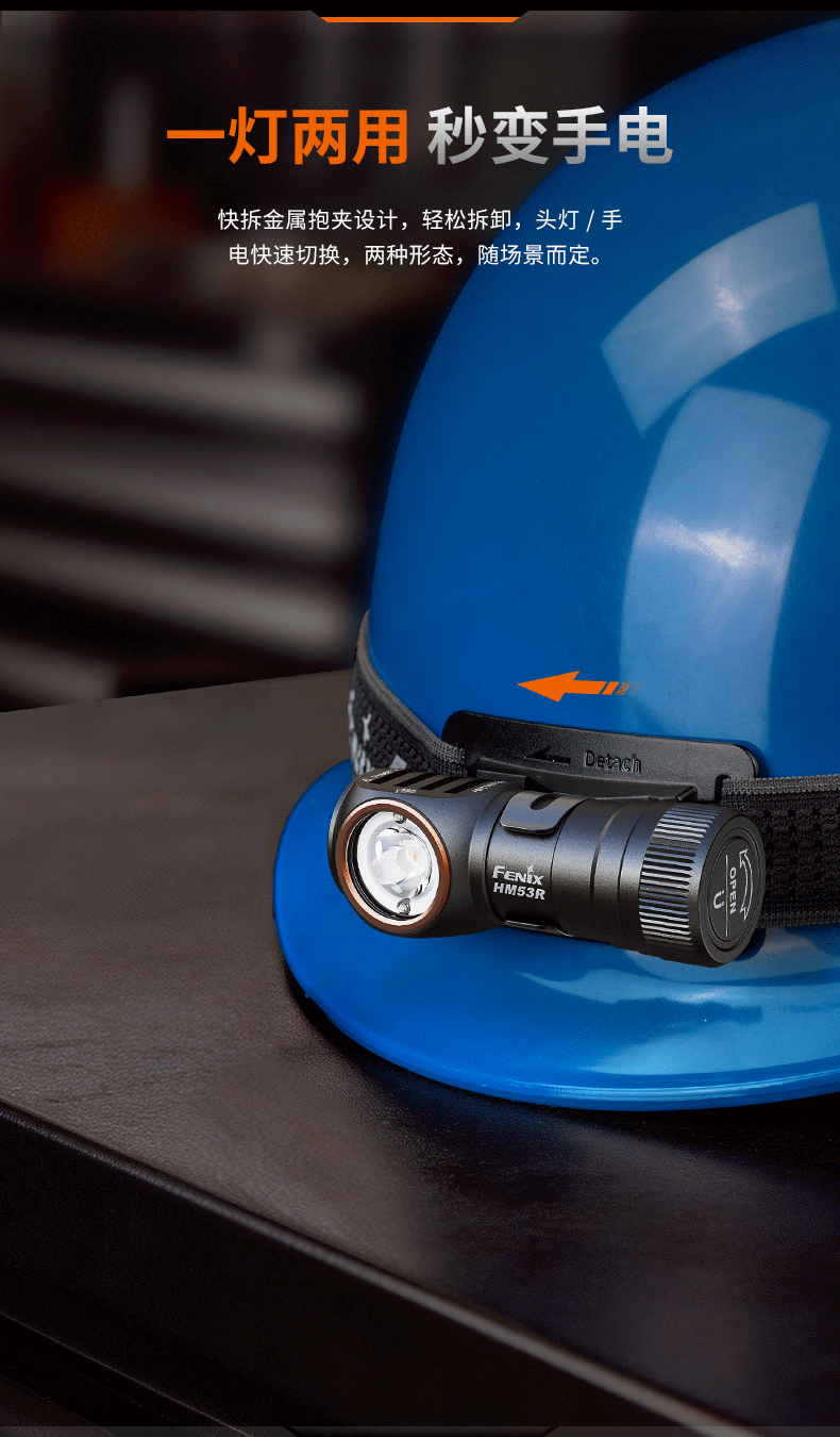 FENIX菲尼克斯HM53R头戴式强光充电聚光灯长续航超轻户外钓鱼头灯
